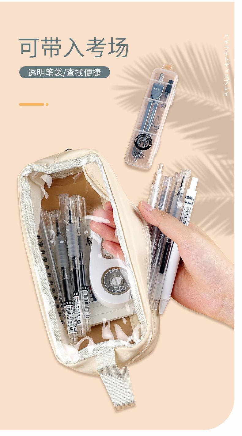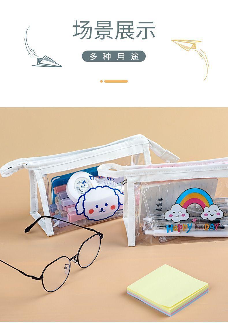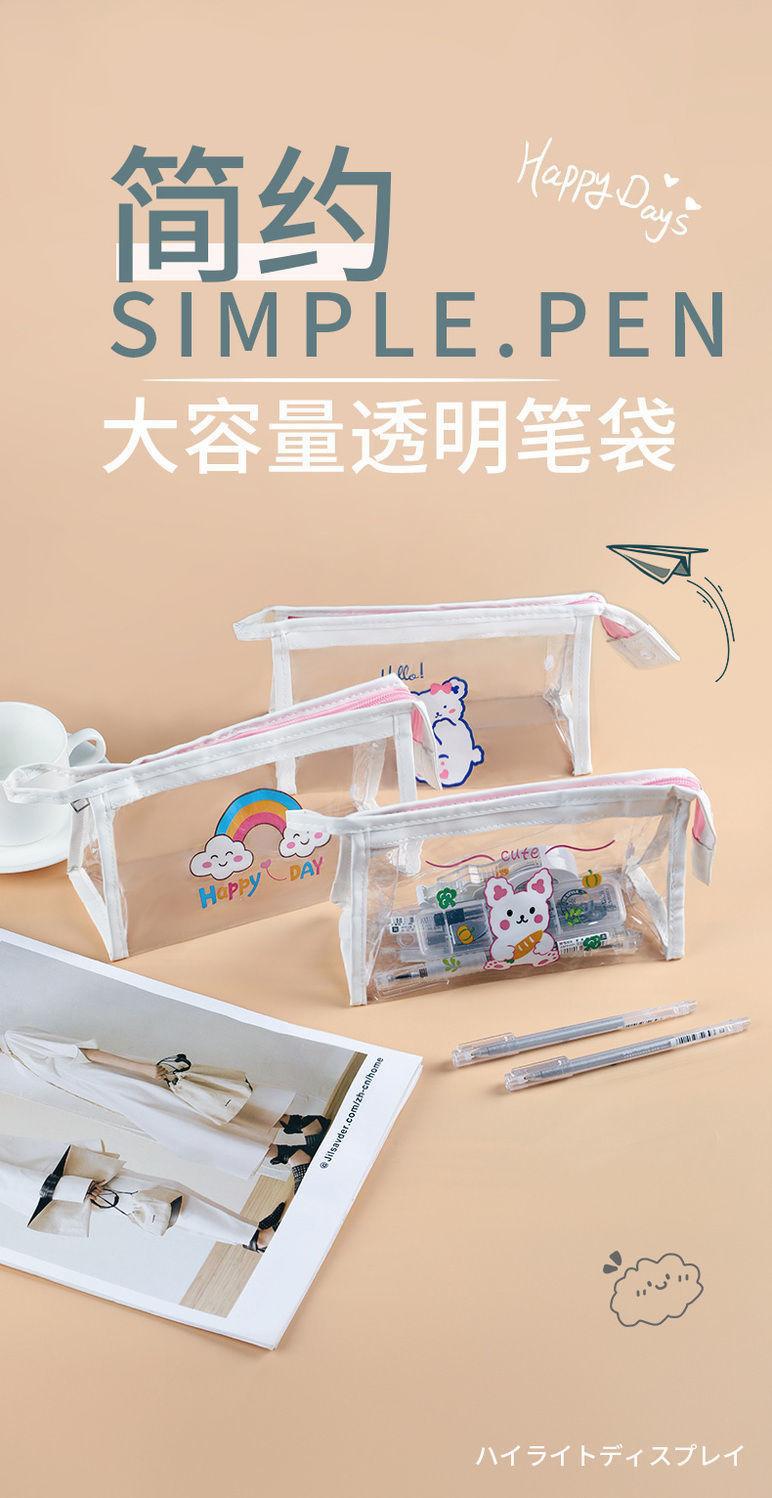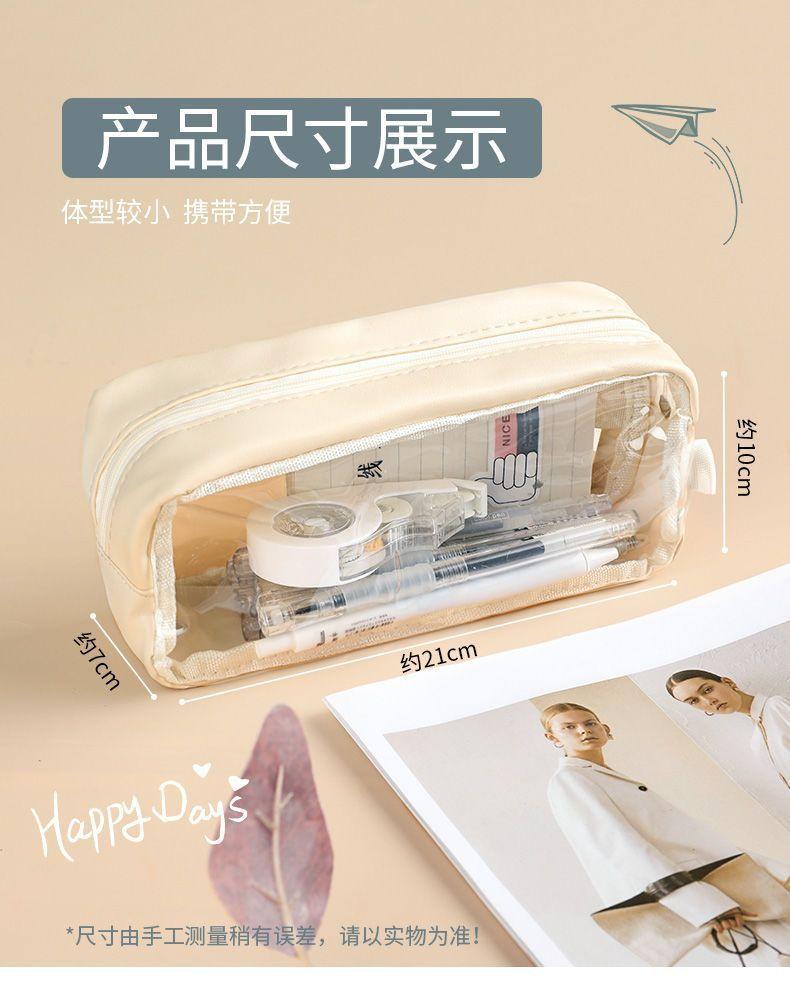 일본 Ins 간단한 투명 방수 PVC 소녀 하트 연필 가방 귀여운 학생 대용량 화장품 보관 가방