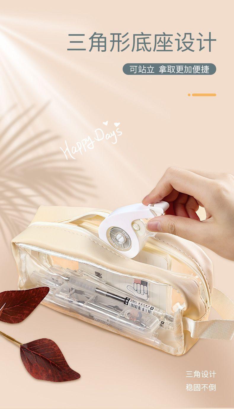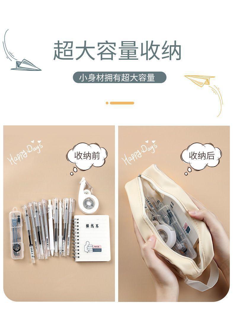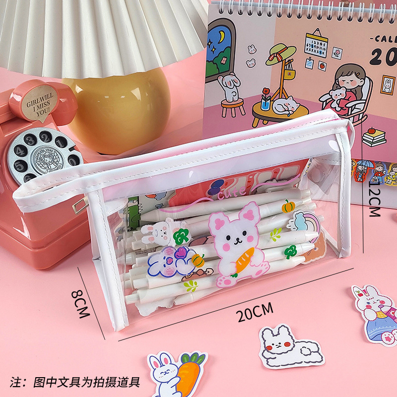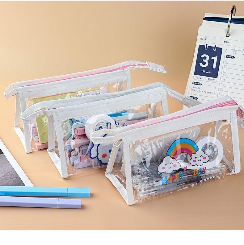 일본 Ins 간단한 투명 방수 PVC 소녀 하트 연필 가방 귀여운 학생 대용량 화장품 보관 가방
