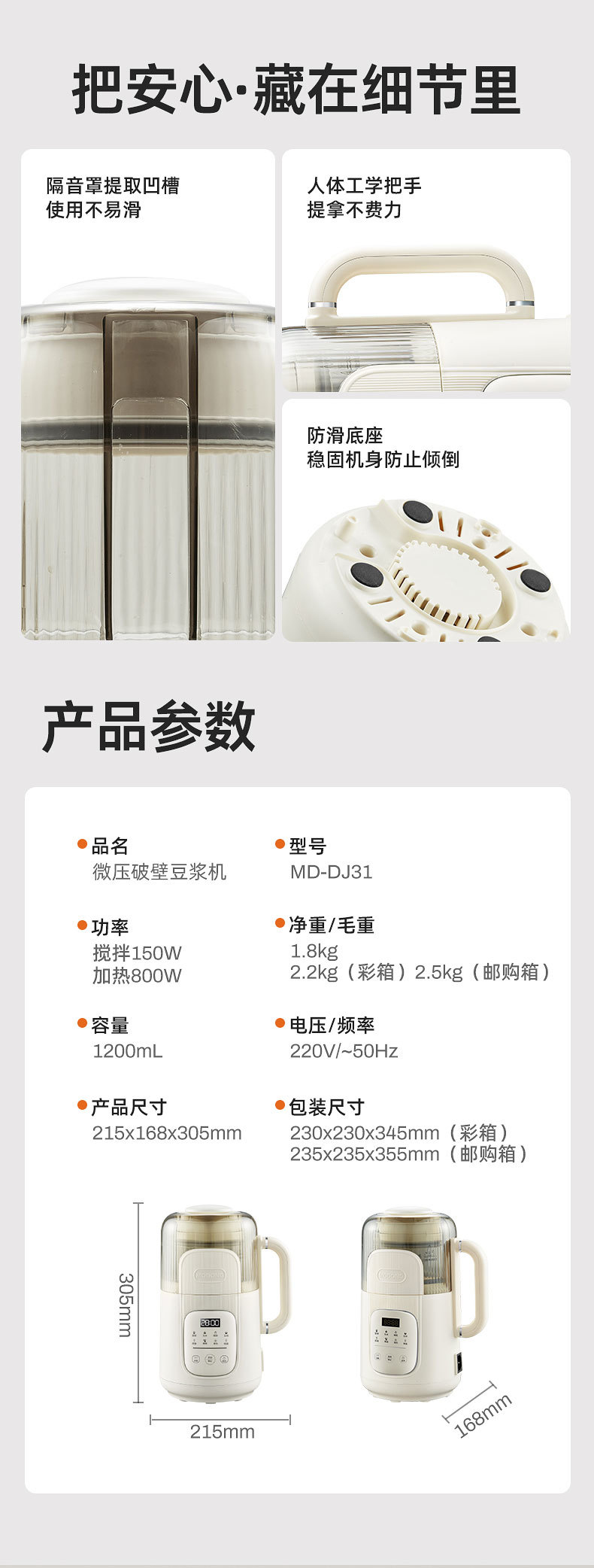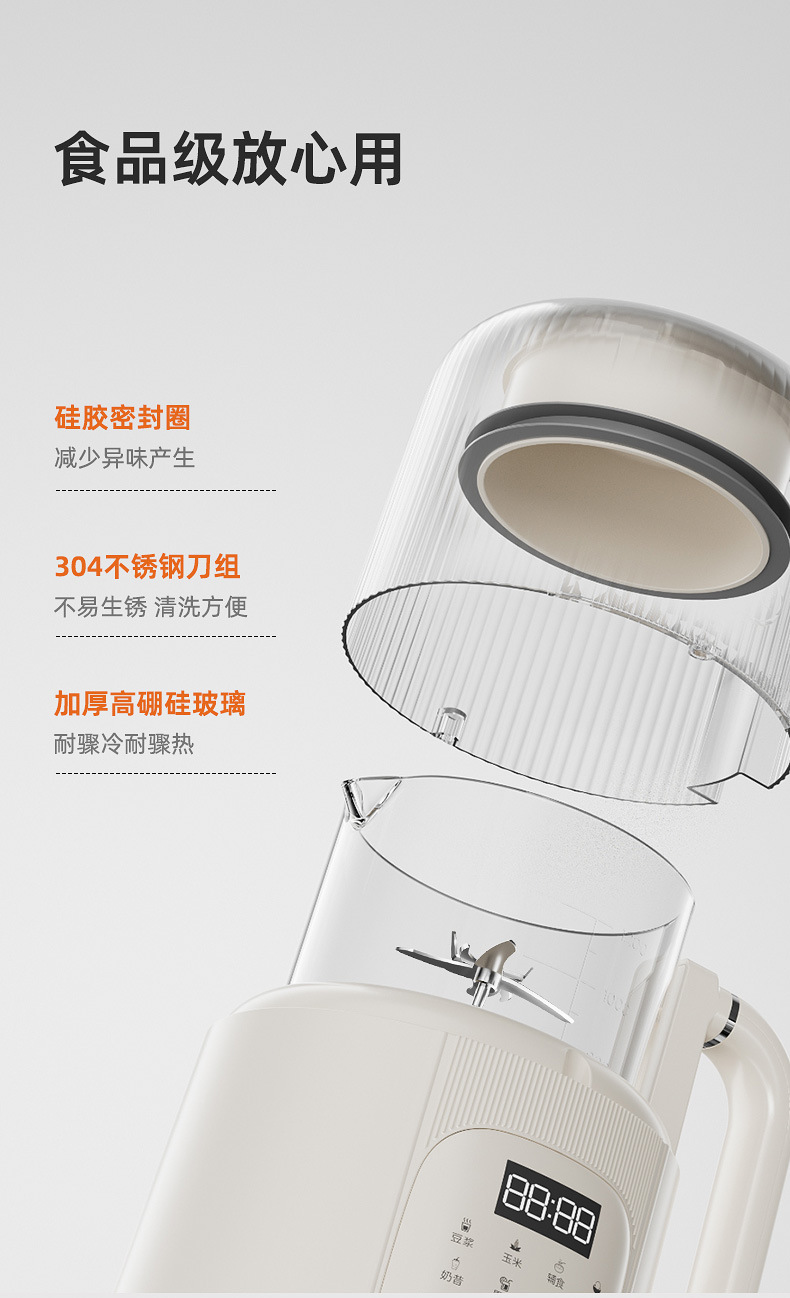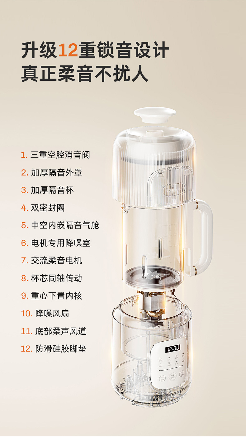 【轻音降噪】低至40db,上盖带外罩隔音,有效隔除工作破壁时的声音;