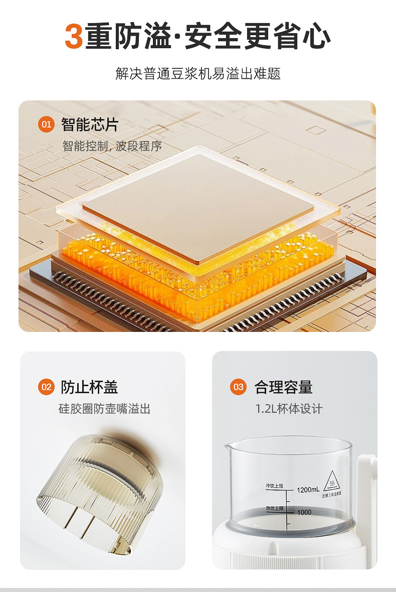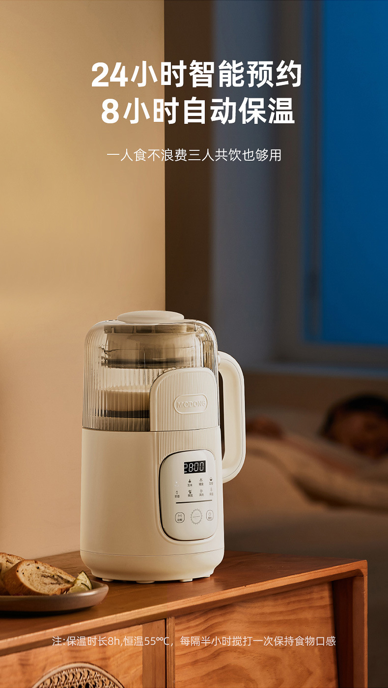 【24H预约】不用早起,煮完自动保温8H60℃,晚起豆浆都是暖暖的。