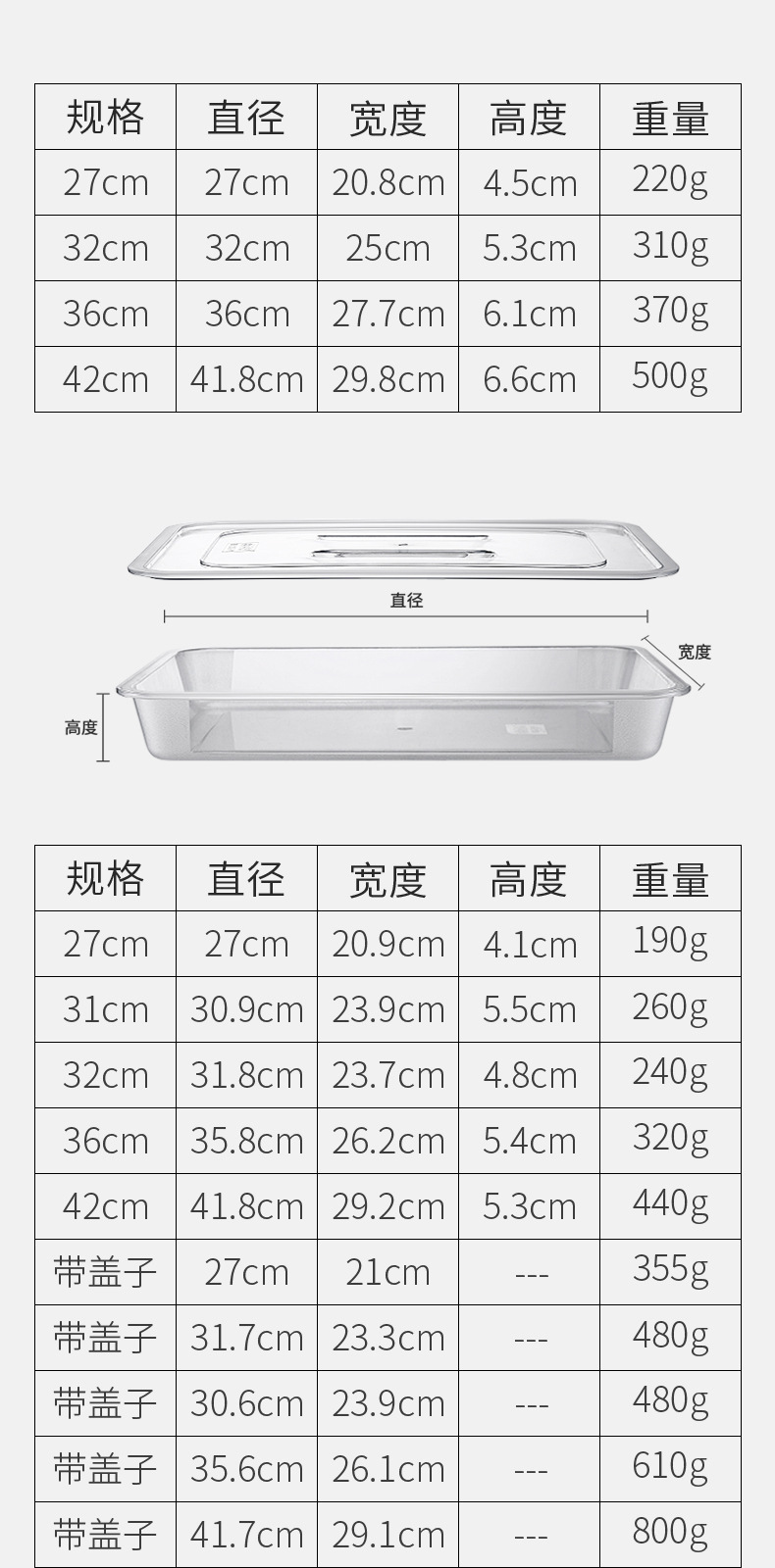 • (스톨 설치에 권장) 식품 등급 소재 42*30*5.5CM (플랫 커버 포함)