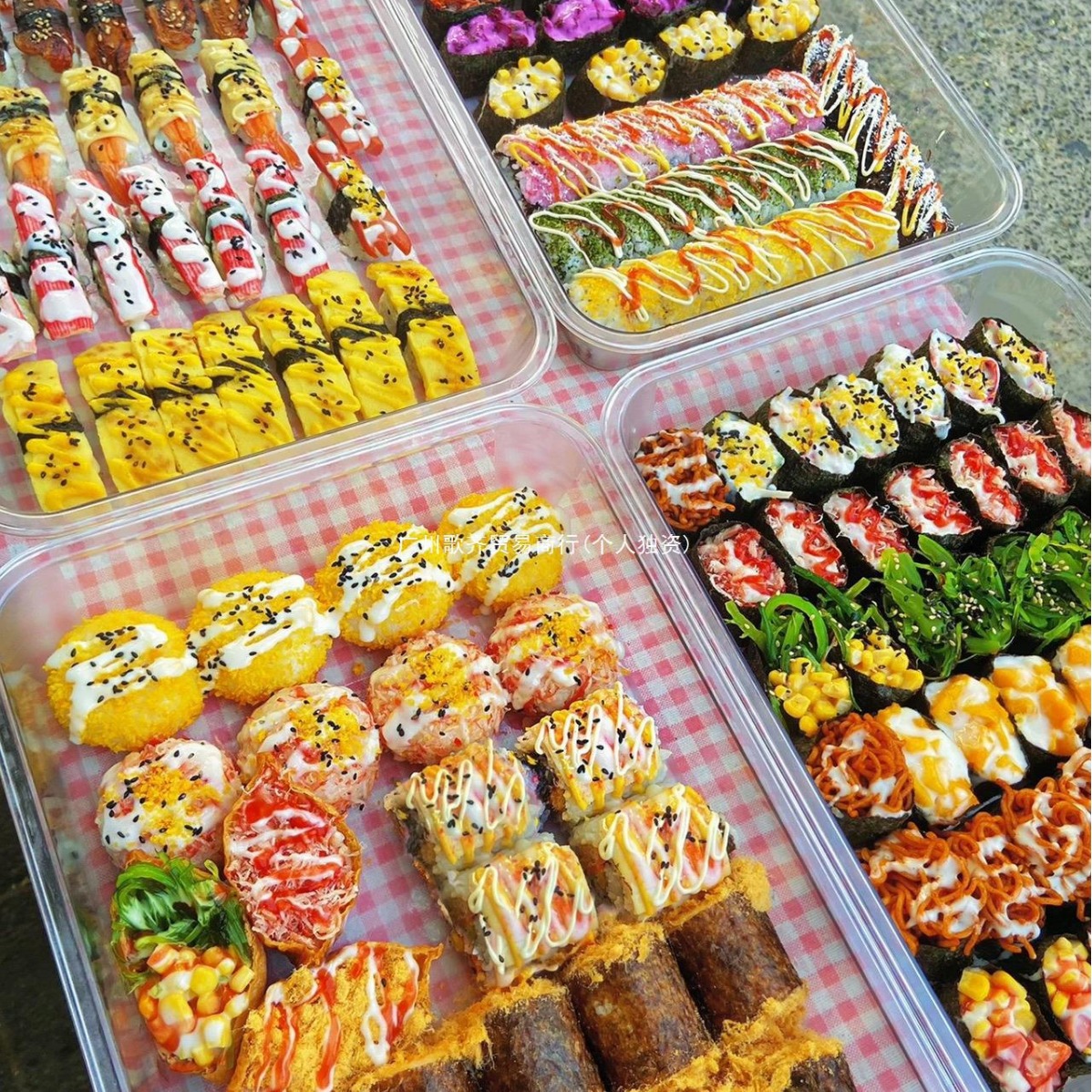 뚜껑이있는 스시 스톨 트레이 원 스시 옵션 플레이트 직사각형 상업용 디스플레이 플레이트 디스플레이 박스스토어 가기