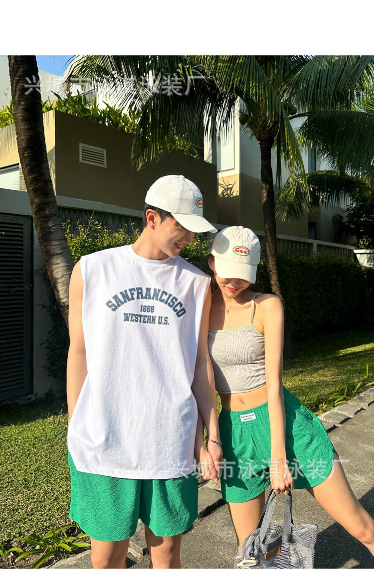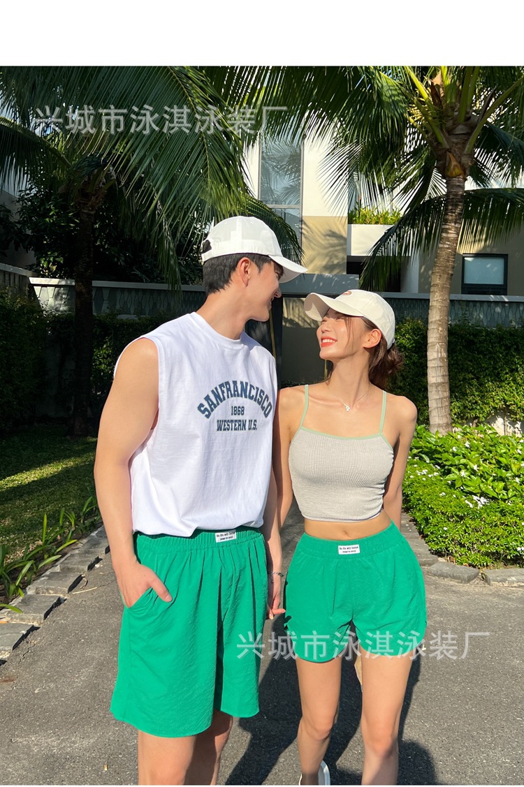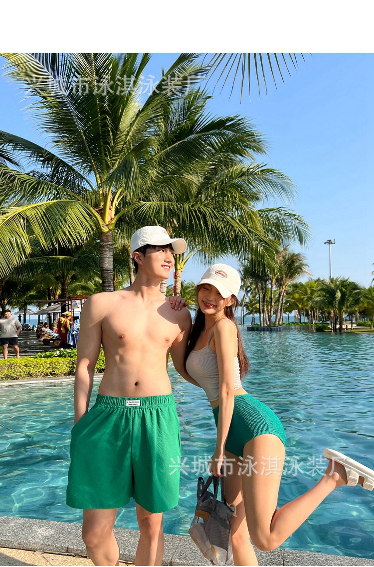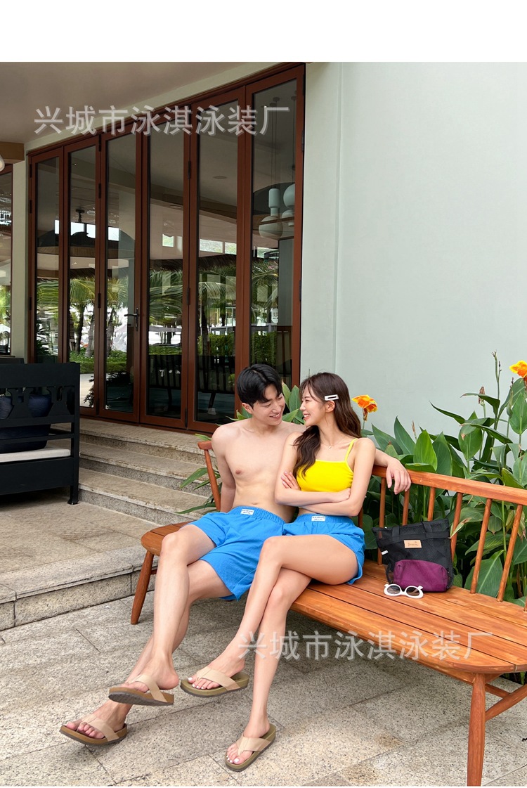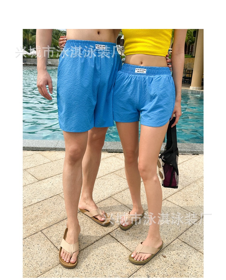 국경 간 한국 인 커플 레저 휴일 웨이브 천 간단한 분할 수영복 여성 와이드 남성용 파인 비치 바지스토어 가기