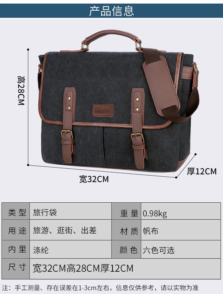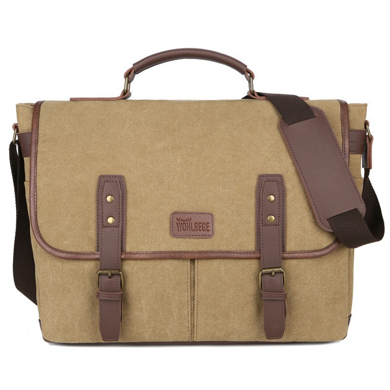 새로운 국경 하이 엔드 센스 노트북 가방 어깨 크로스 바디 유럽과 미국의 트렌드 15.6 인치 남성 캔버스 서류 가방스토어 가기