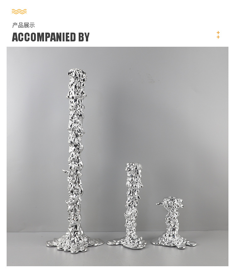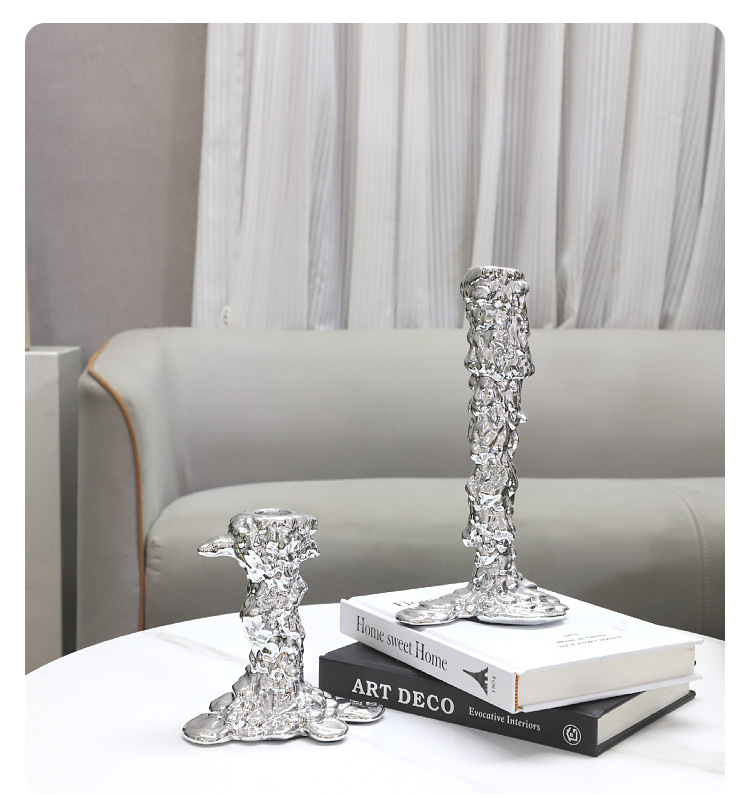 현대 미니멀리스트 수지 도금 실버 분위기 녹는 캔들 스틱 거실 레스토랑 호텔 모델 룸 홈 장식