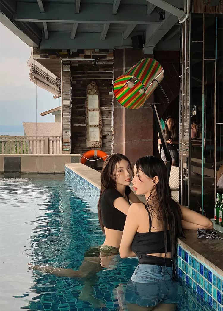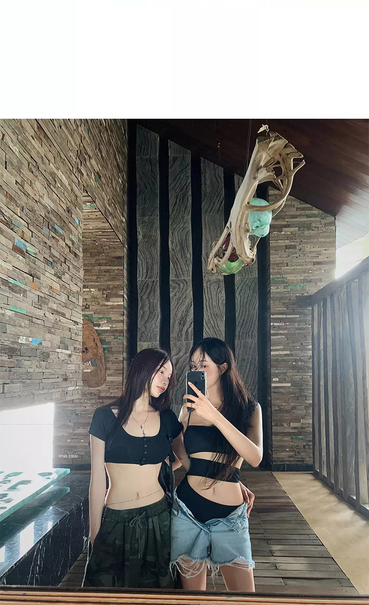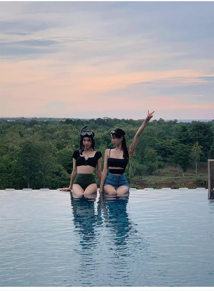 한국 그물 빨간색 작은 가슴 삼각형 원피스 비키니 섹시한 슬림 블랙 공장 도매 온천 수영복 여성스토어 가기
