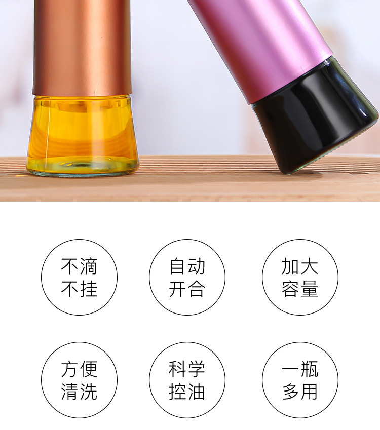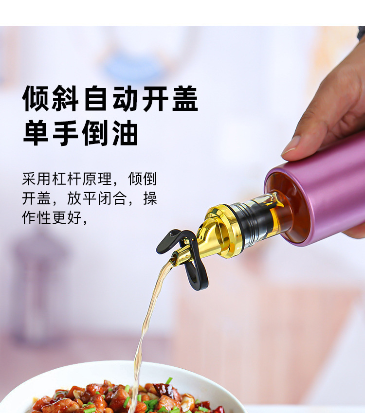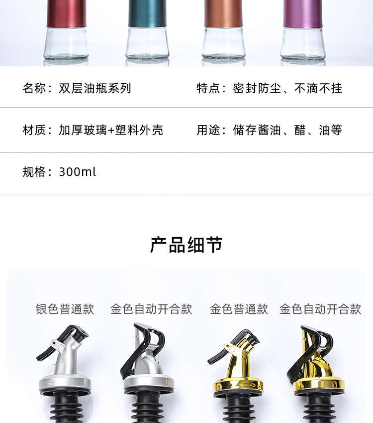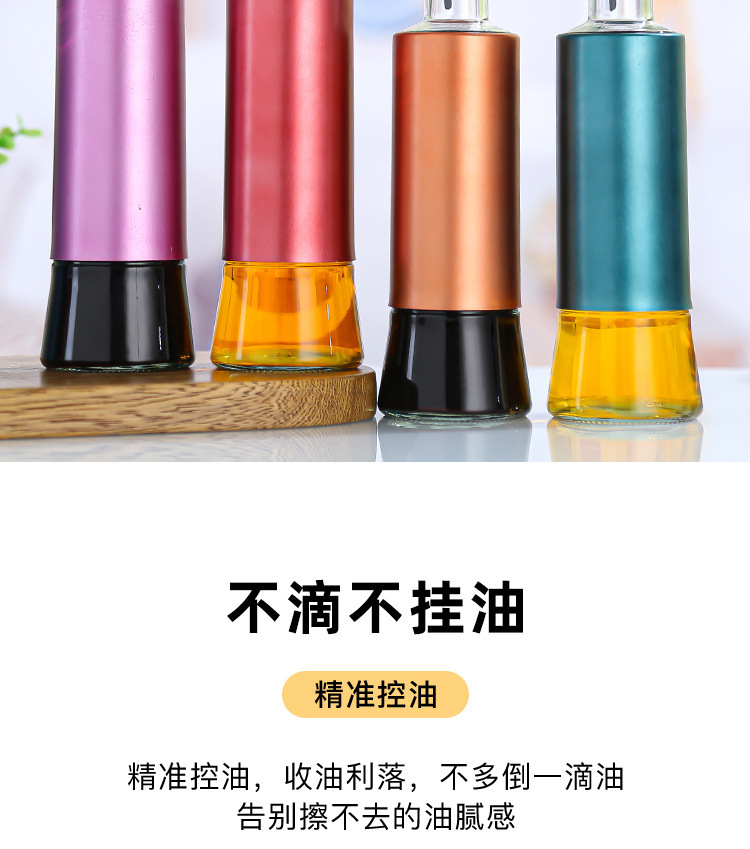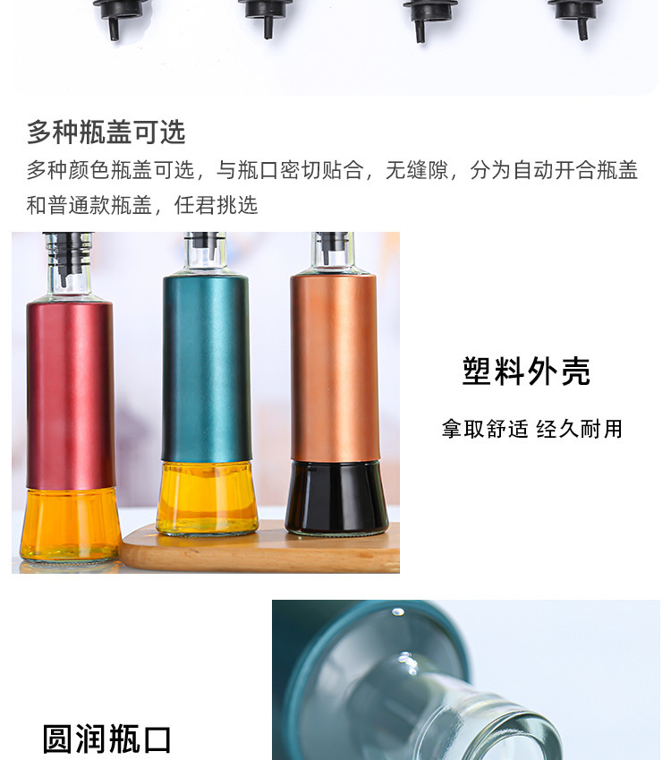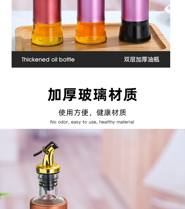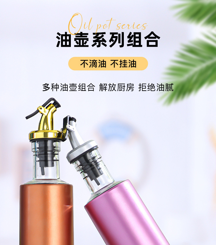 새로운 도매 가죽 봉인 누출 방지 오일 주전자 병 컬러 유리 조미료 병 프레스 스위치 오일 및 식초 조미료 병