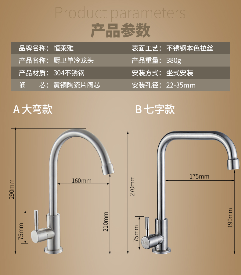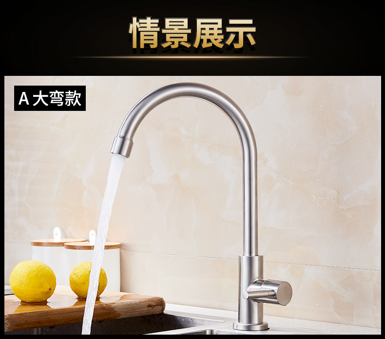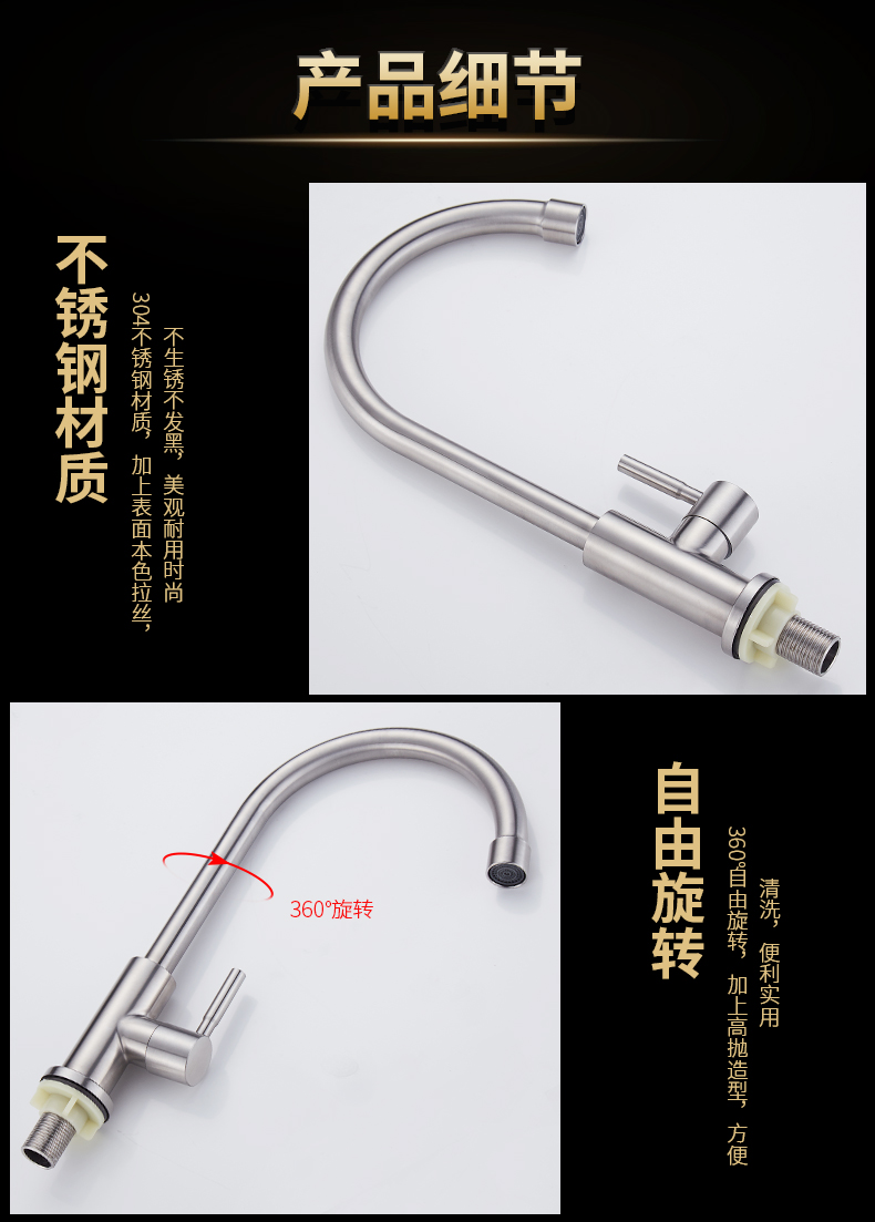 304 스테인레스 스틸 주방 수도꼭지 단일 냉각 수도꼭지 회전 가능한 세탁 수영장 야채 분지 싱크대 가정용스토어 가기