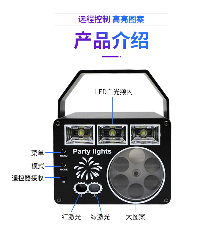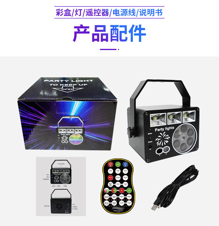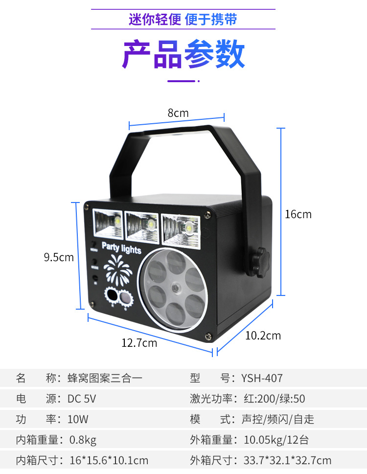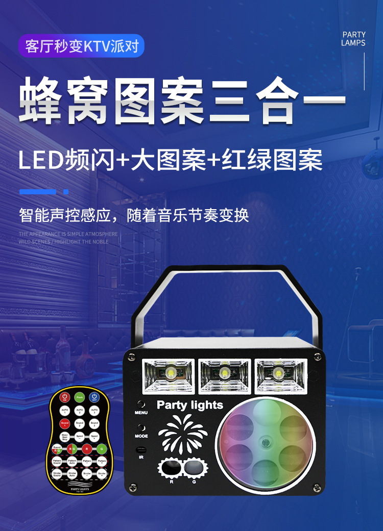 2025 벌집형 3-in-1 미니 레이저 조명 무대 조명 화려한 패턴 컬러풀 조명 KTV 분위기 조명 스트로브 조명