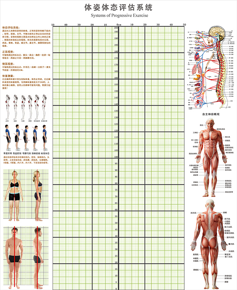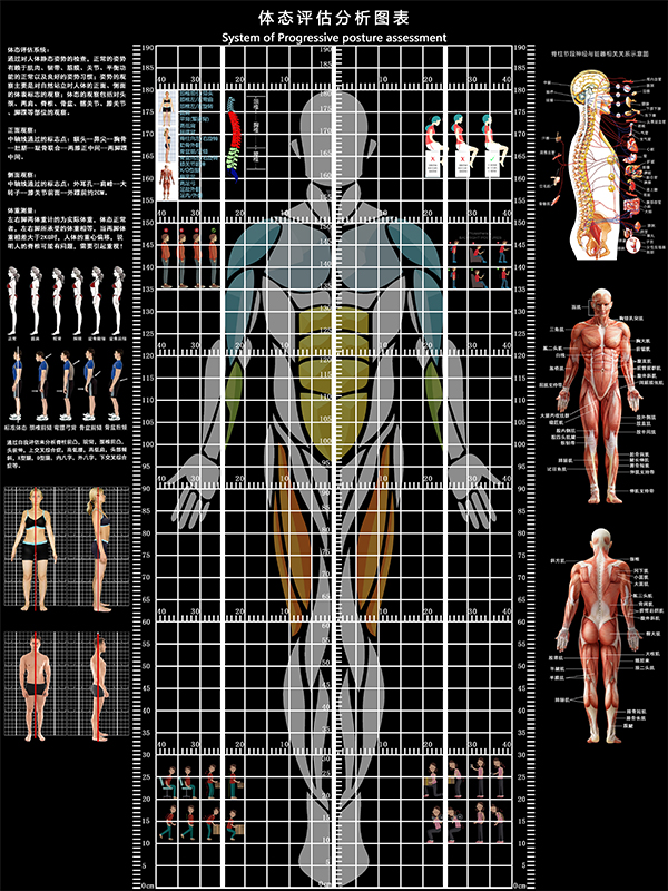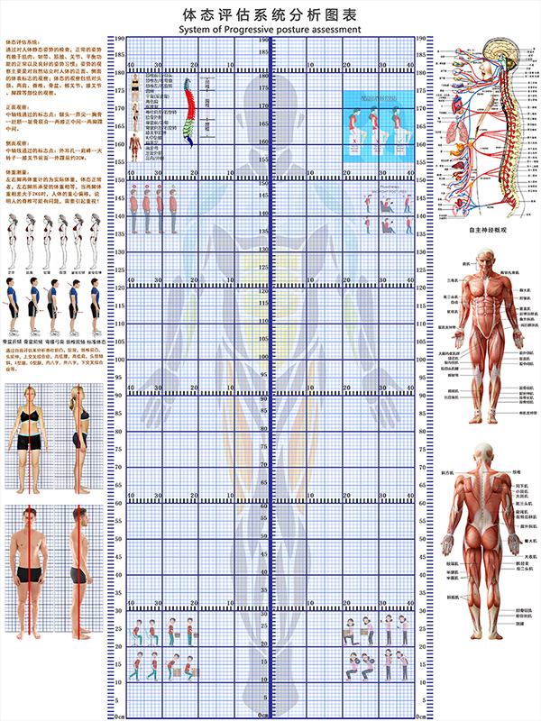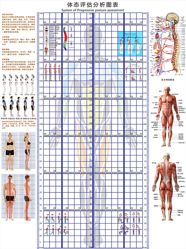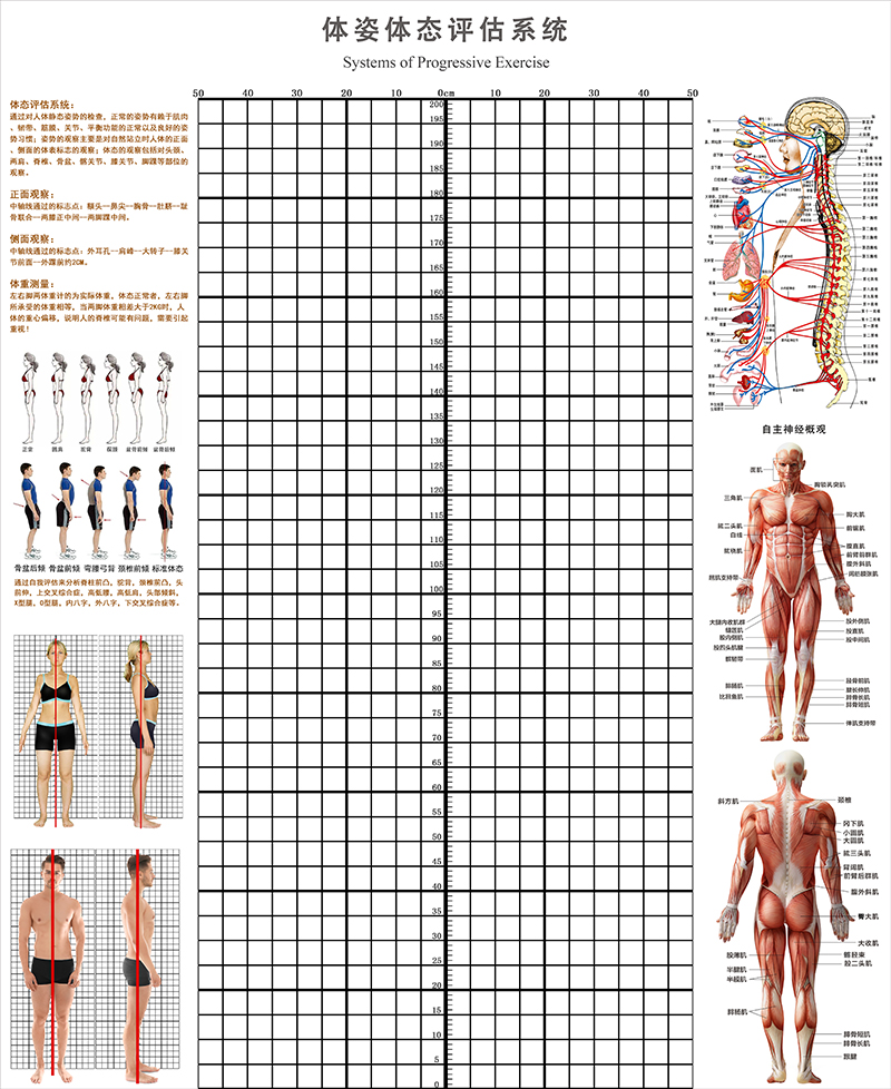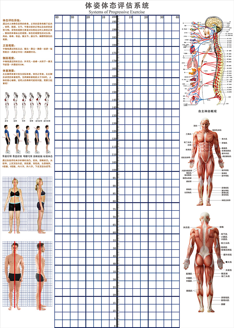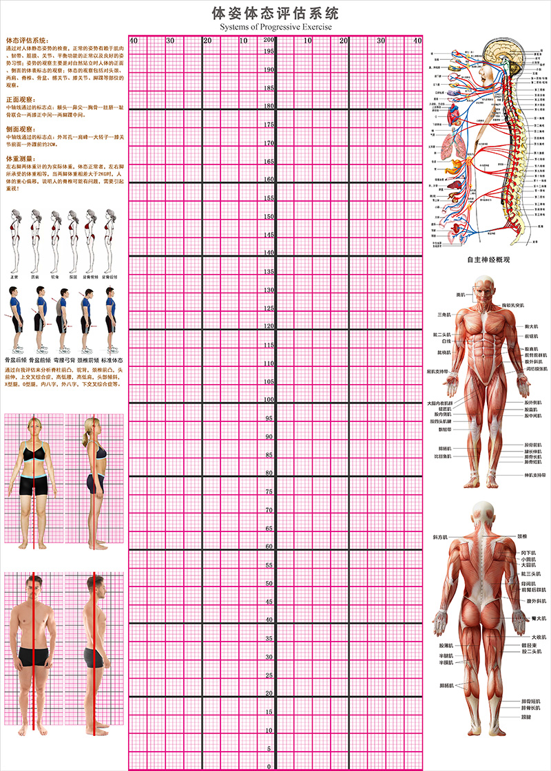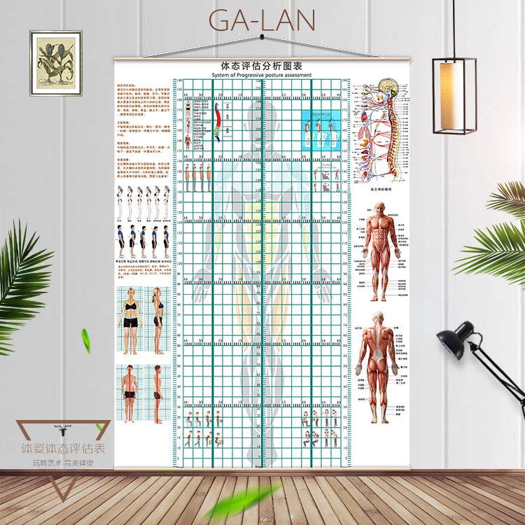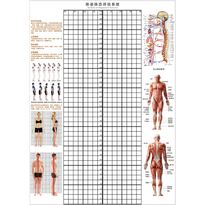 신체 자세 평가 양식 벽지 장착 신체 측정 체육관 요가 스튜디오 개인 교육 신체 자세 보정 그리드 비교 차트스토어 가기
