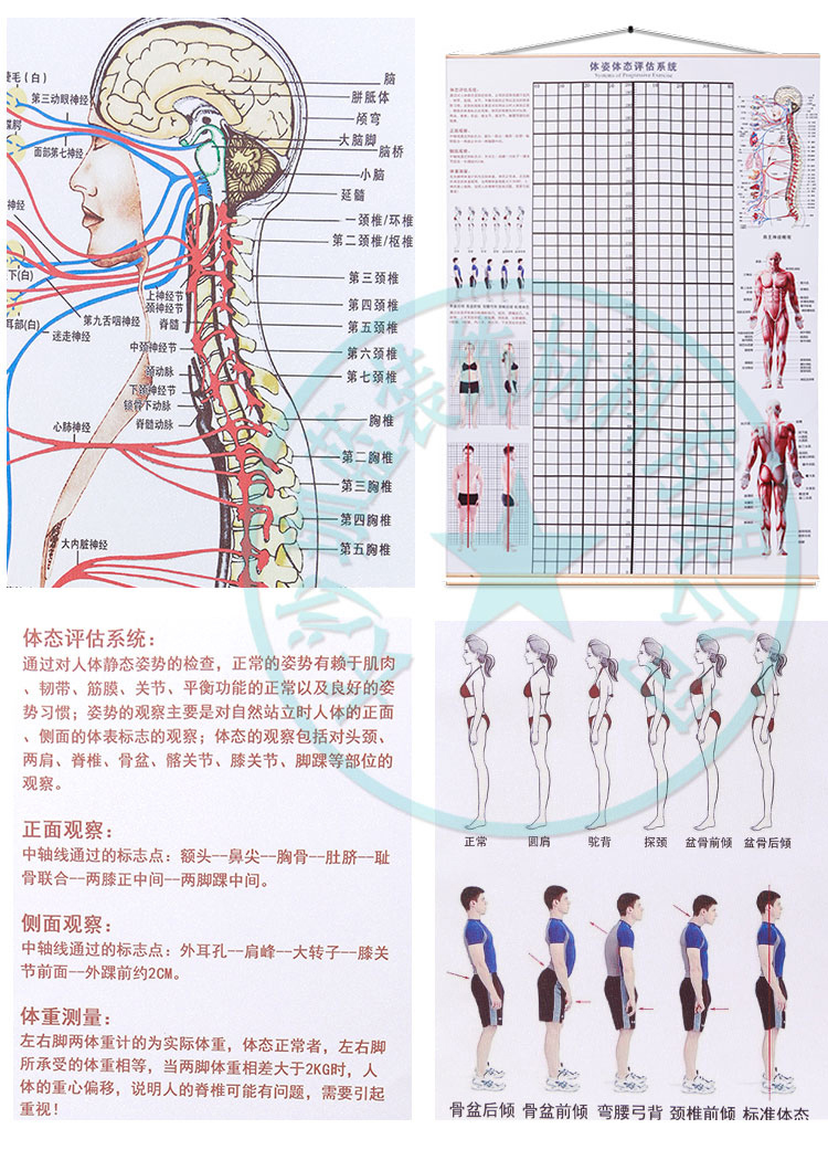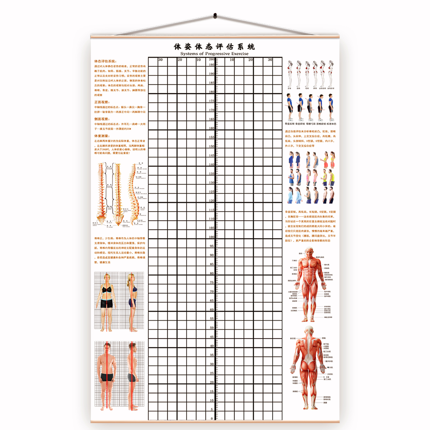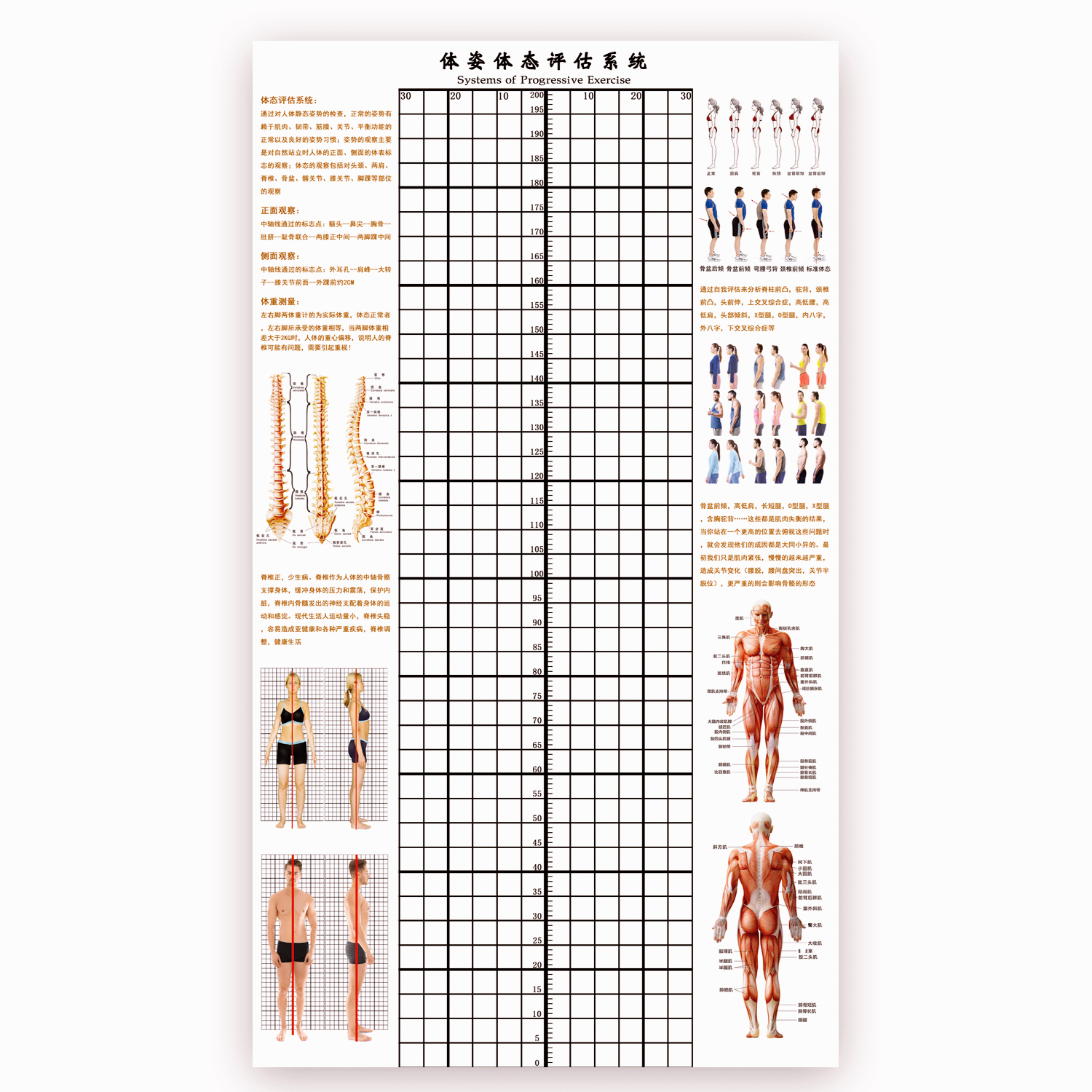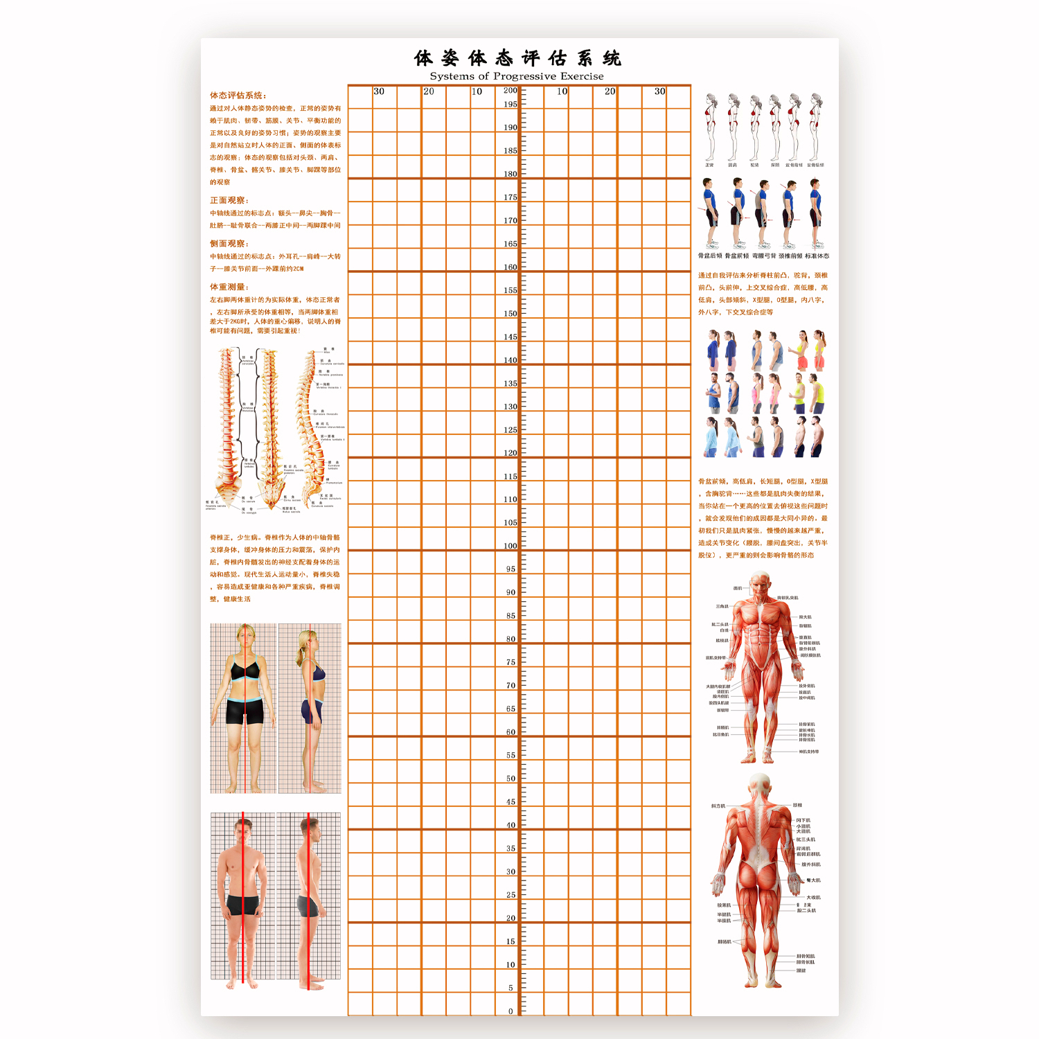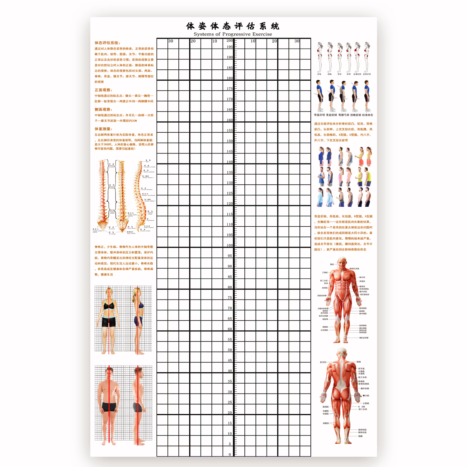 신체 자세 평가 양식 벽지 장착 신체 측정 체육관 요가 스튜디오 개인 교육 신체 자세 보정 그리드 비교 차트스토어 가기