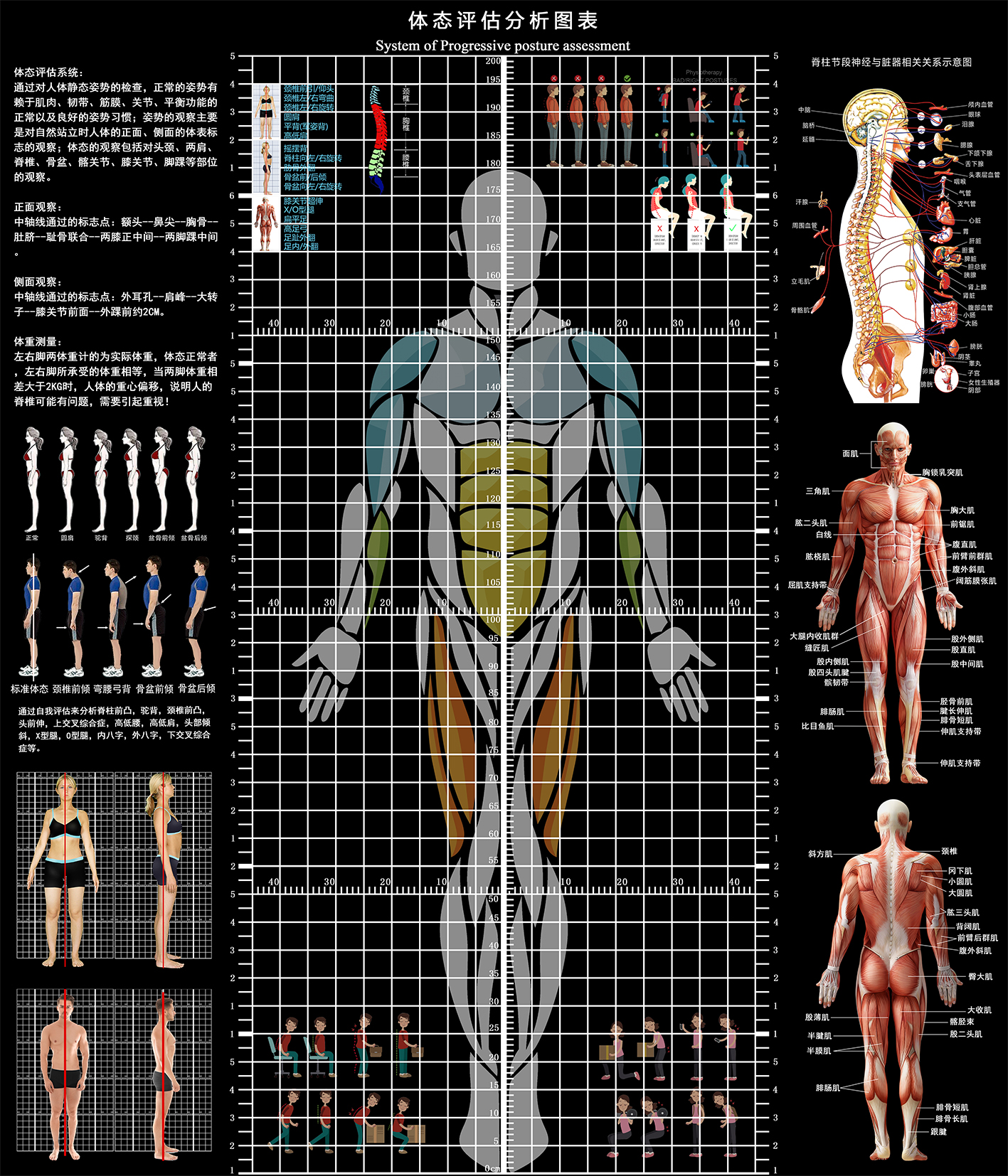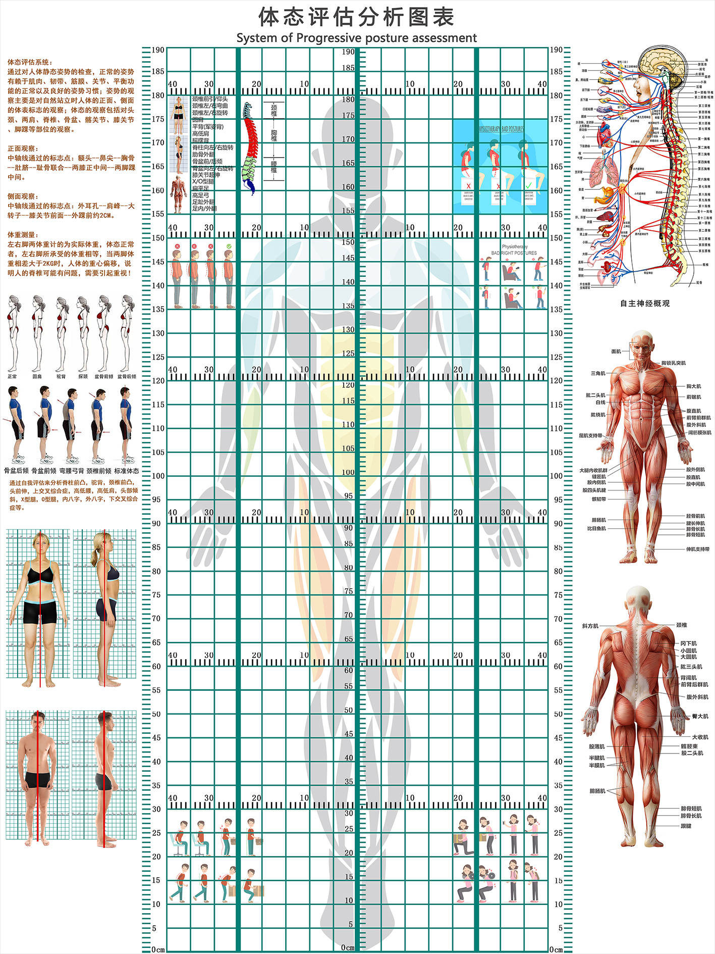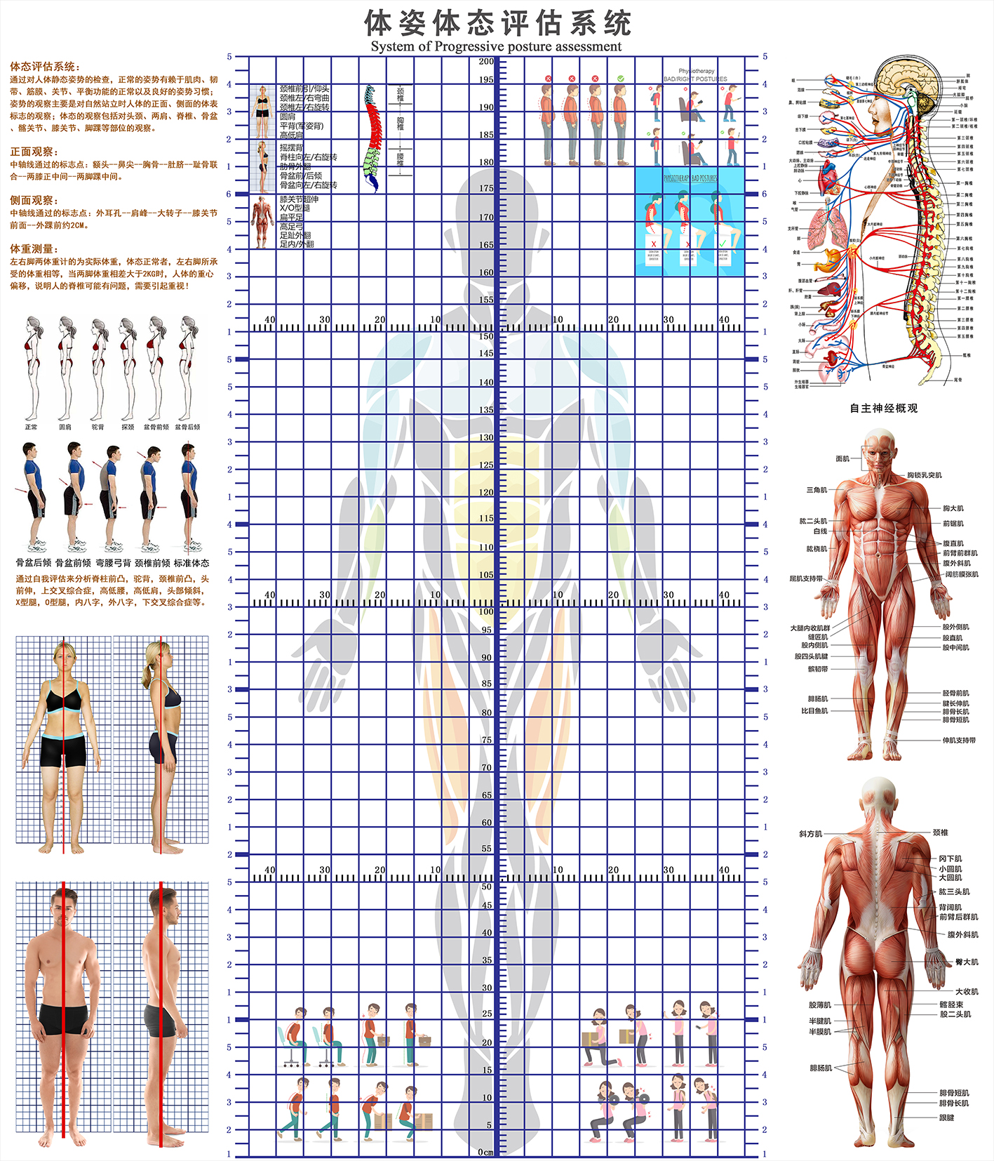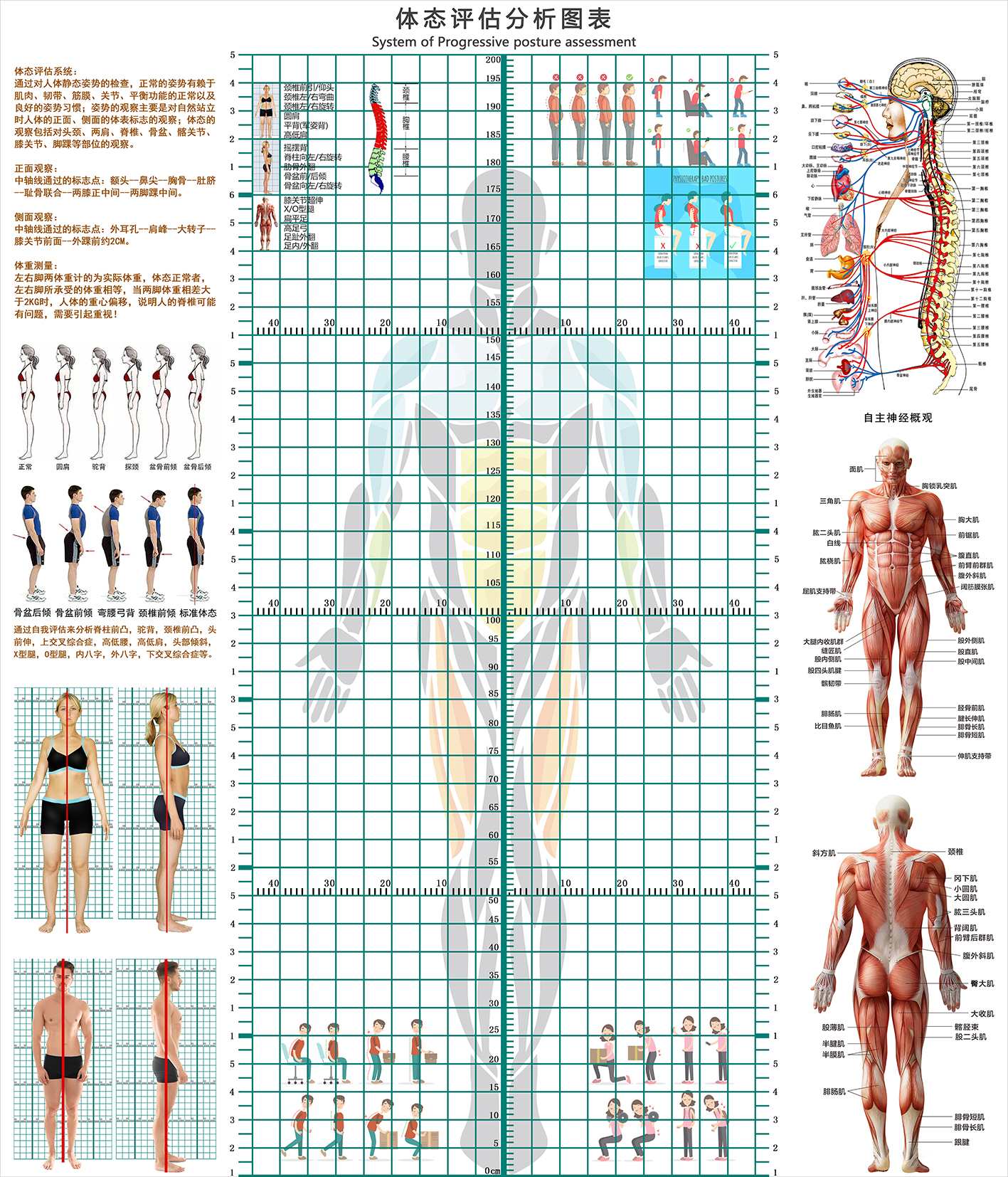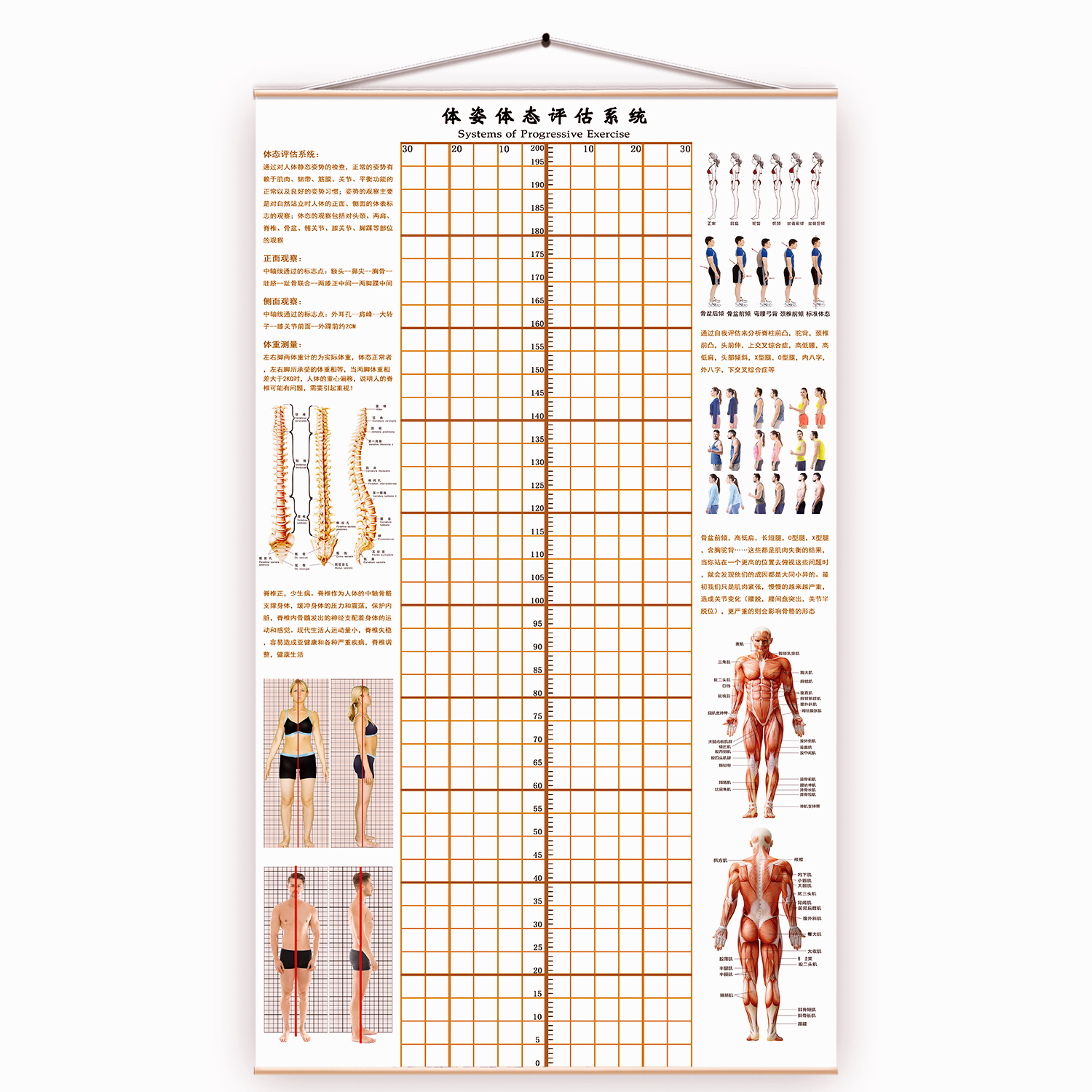 신체 자세 평가 양식 벽지 장착 신체 측정 체육관 요가 스튜디오 개인 교육 신체 자세 보정 그리드 비교 차트스토어 가기
