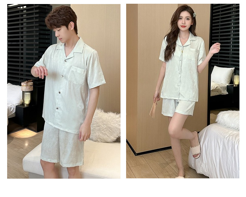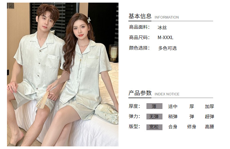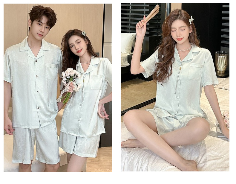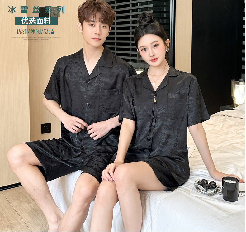 커플 잠옷 2025 봄 여름 남성 신상 아이스 실크 반팔 반바지 세트 얇은 여성 홈웨어 도매스토어 가기