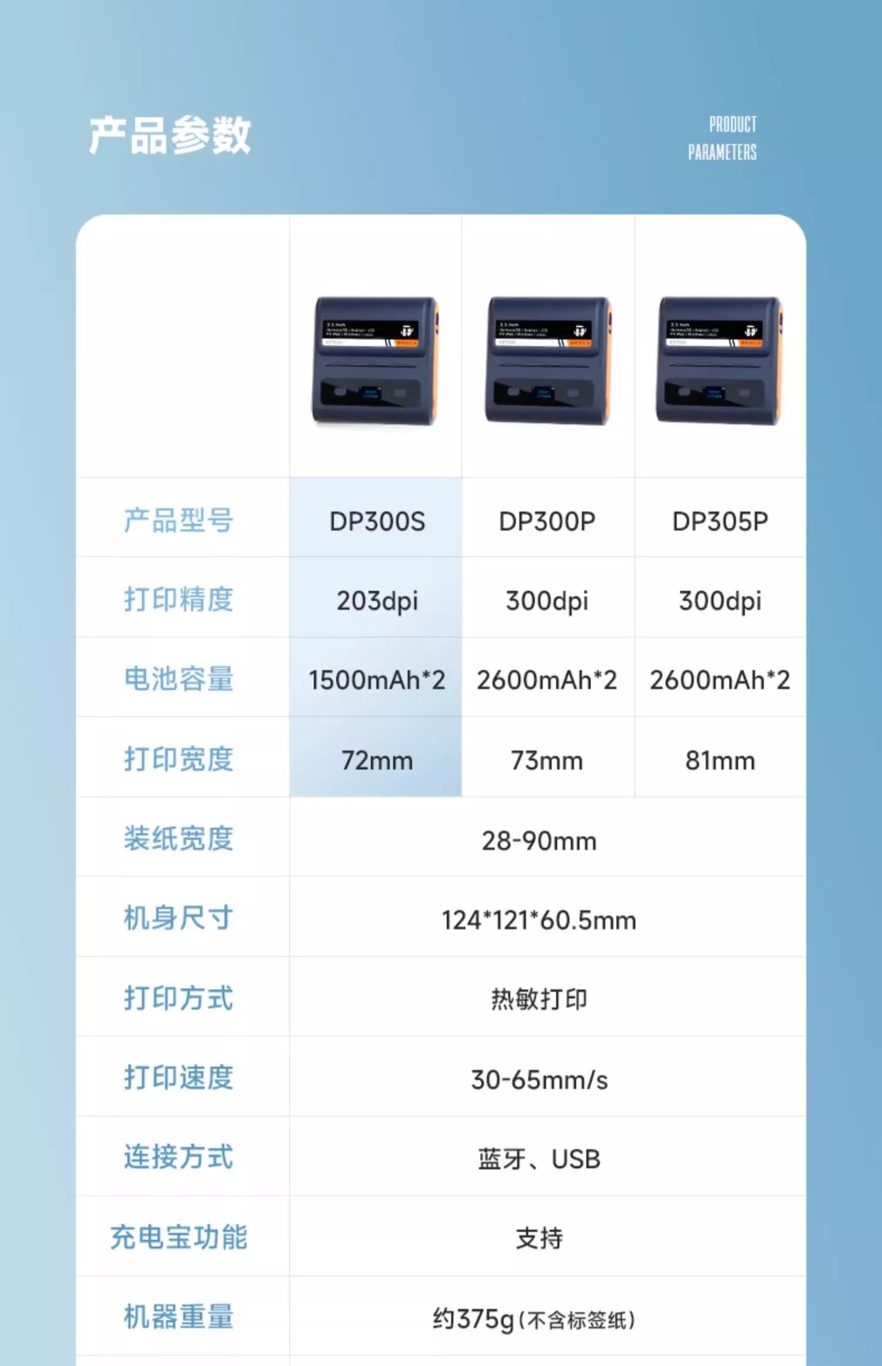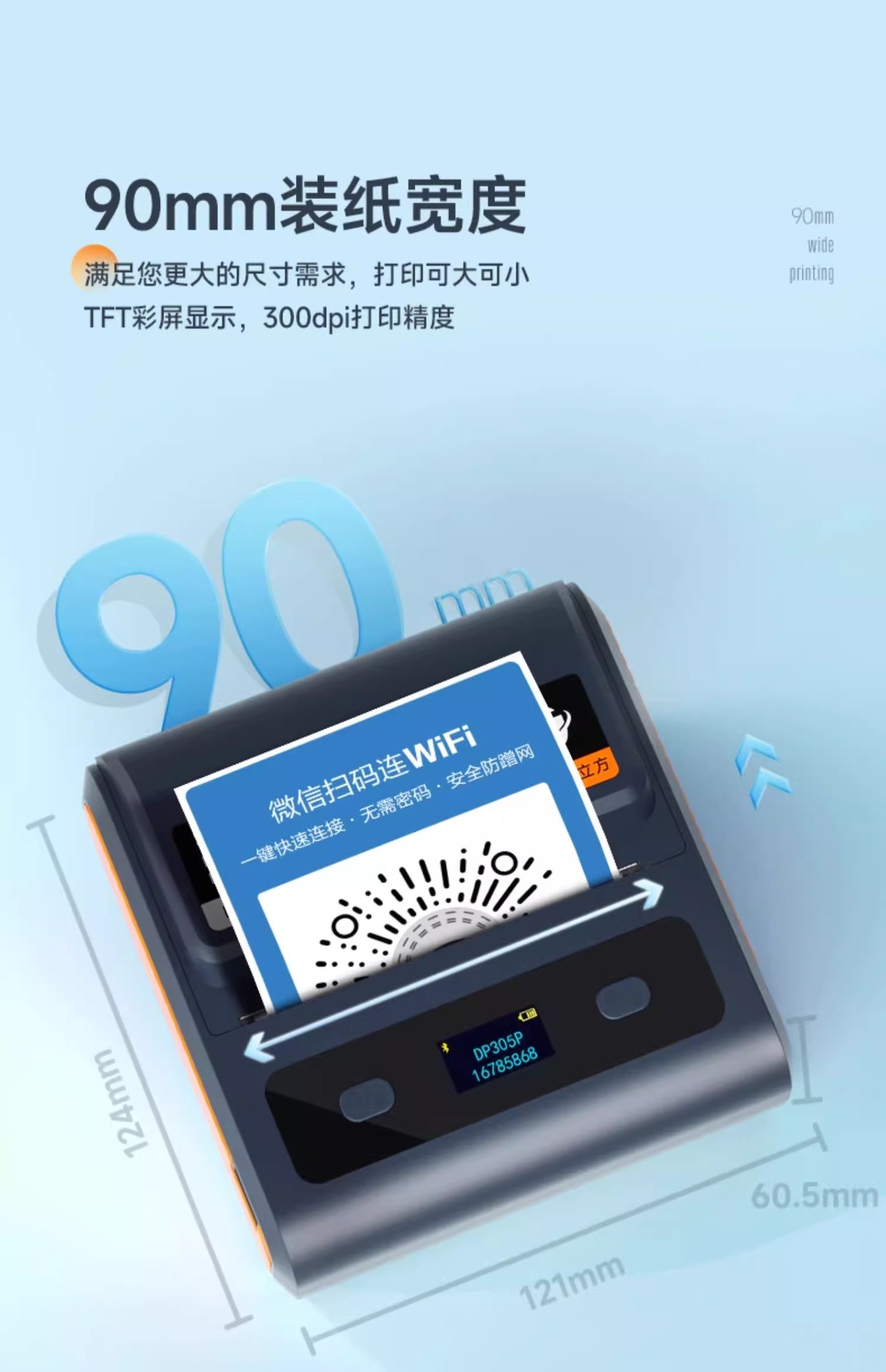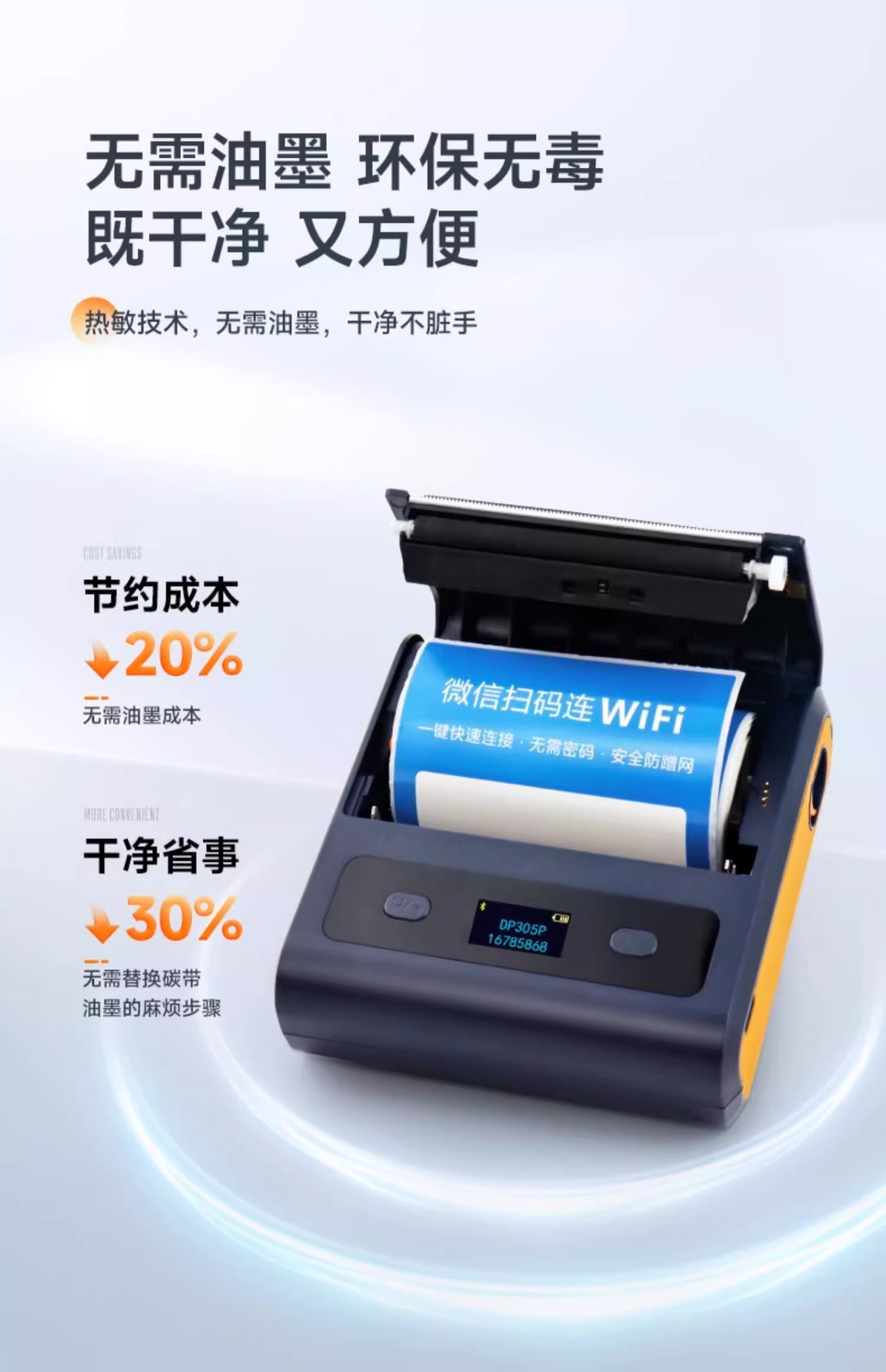 De Tong DP300S 2 차원 코드 프린터 WiFi 코드 컬렉션 코드 라벨 프린터 블루투스 휴대용 마이크로스토어 가기