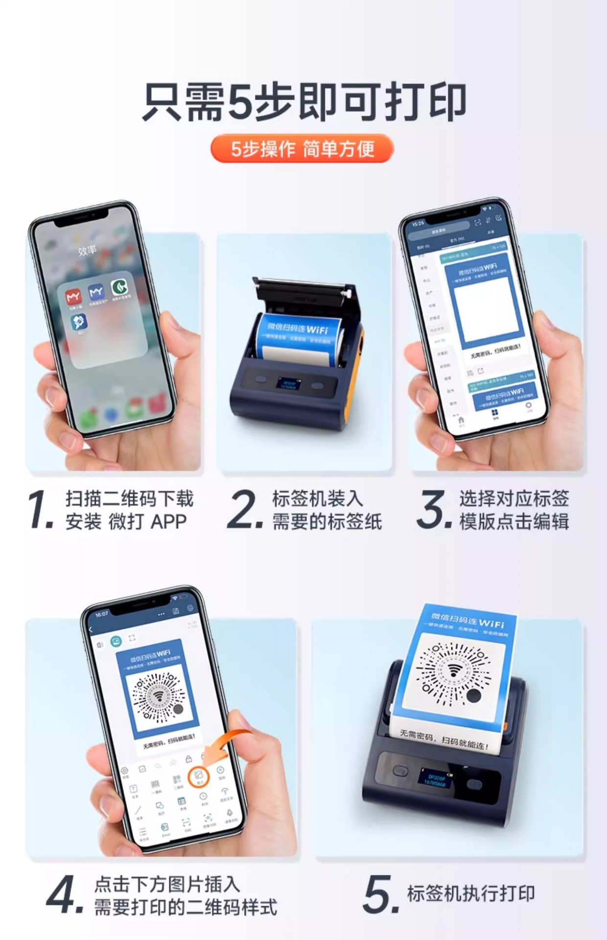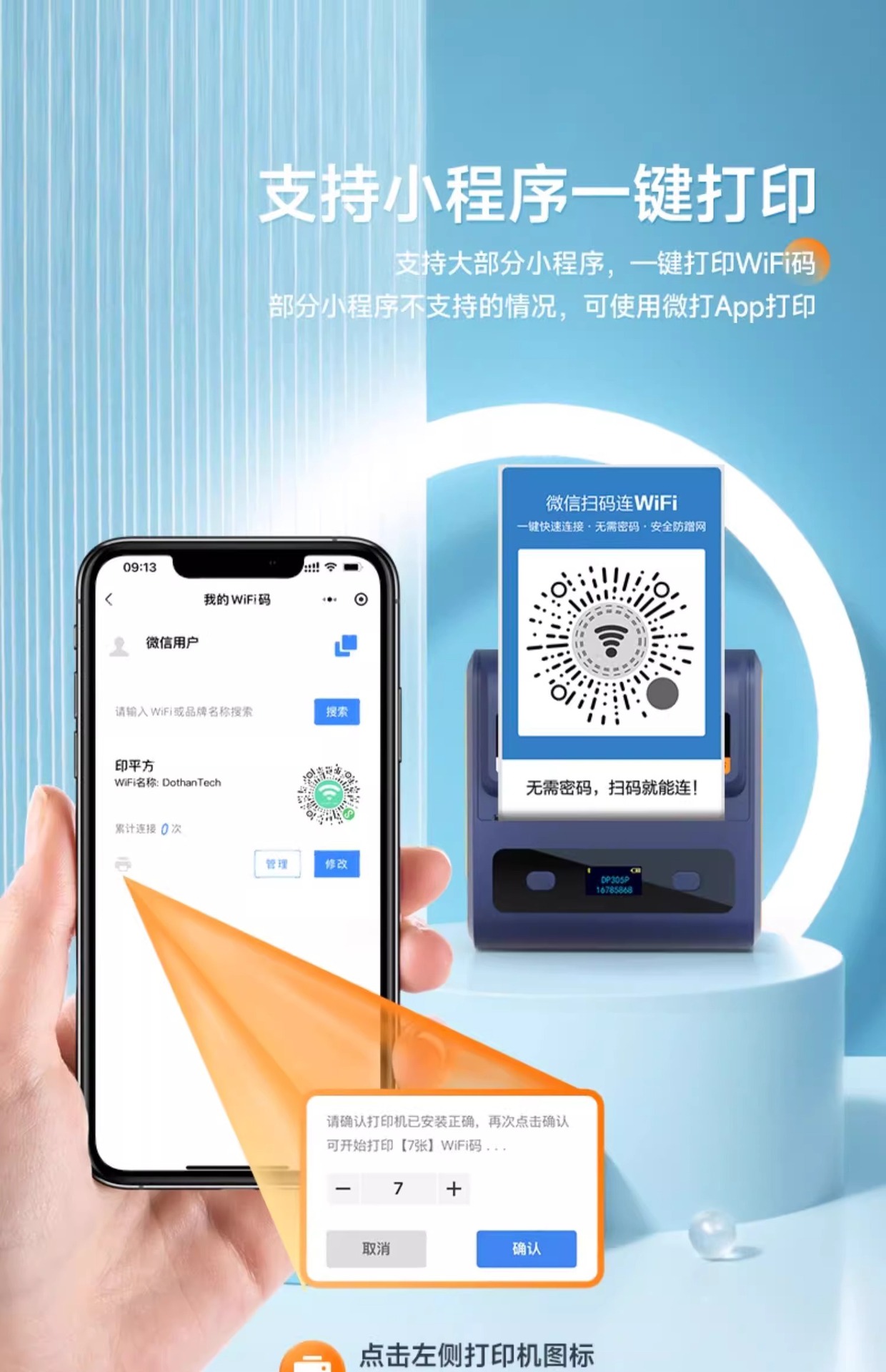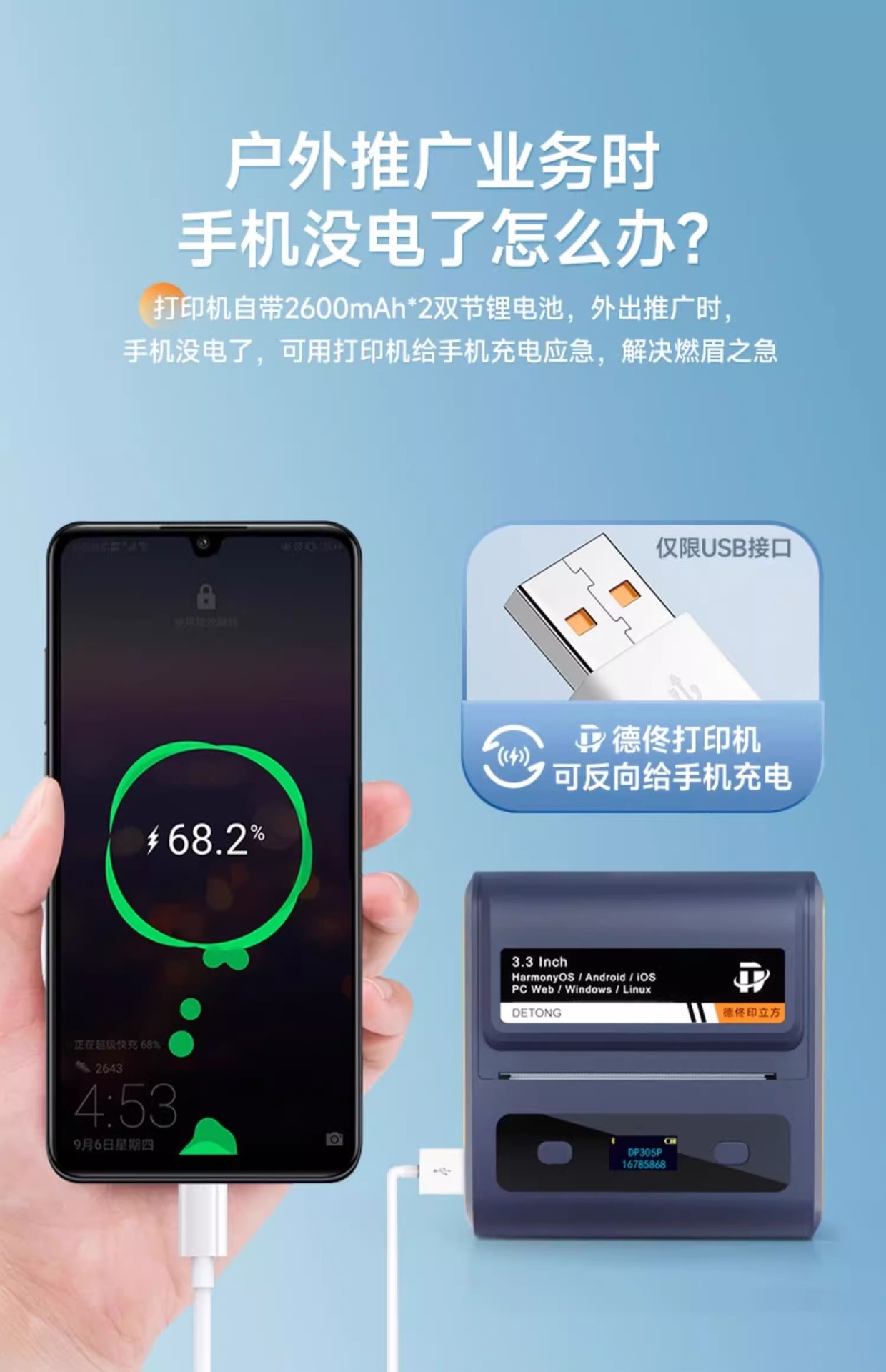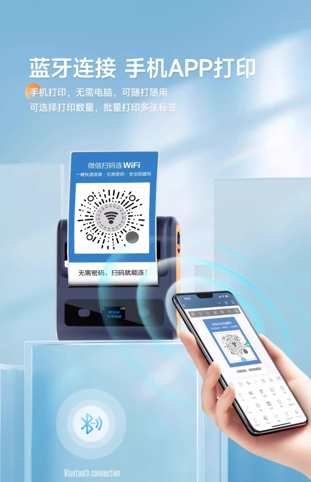 De Tong DP300S 2 차원 코드 프린터 WiFi 코드 컬렉션 코드 라벨 프린터 블루투스 휴대용 마이크로스토어 가기