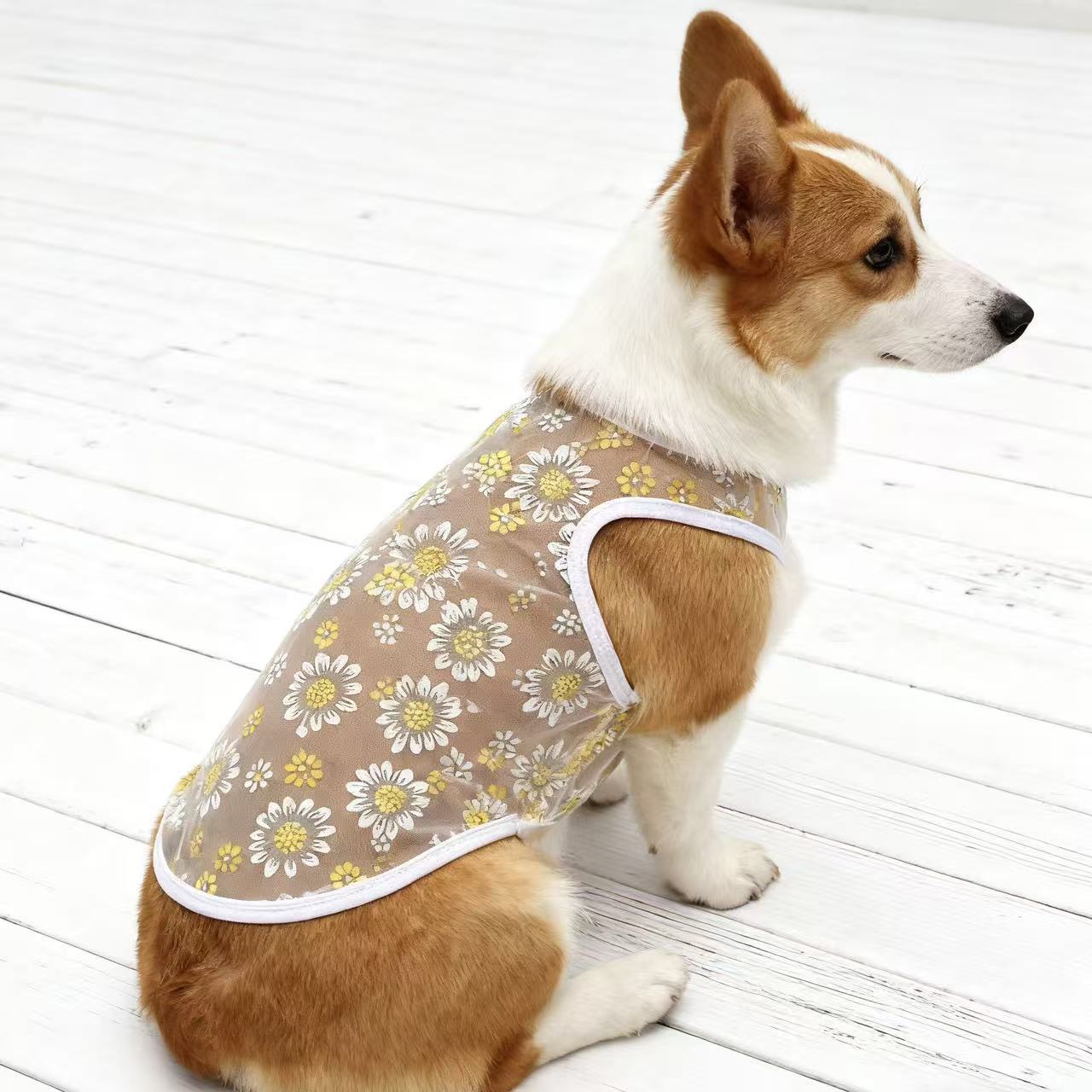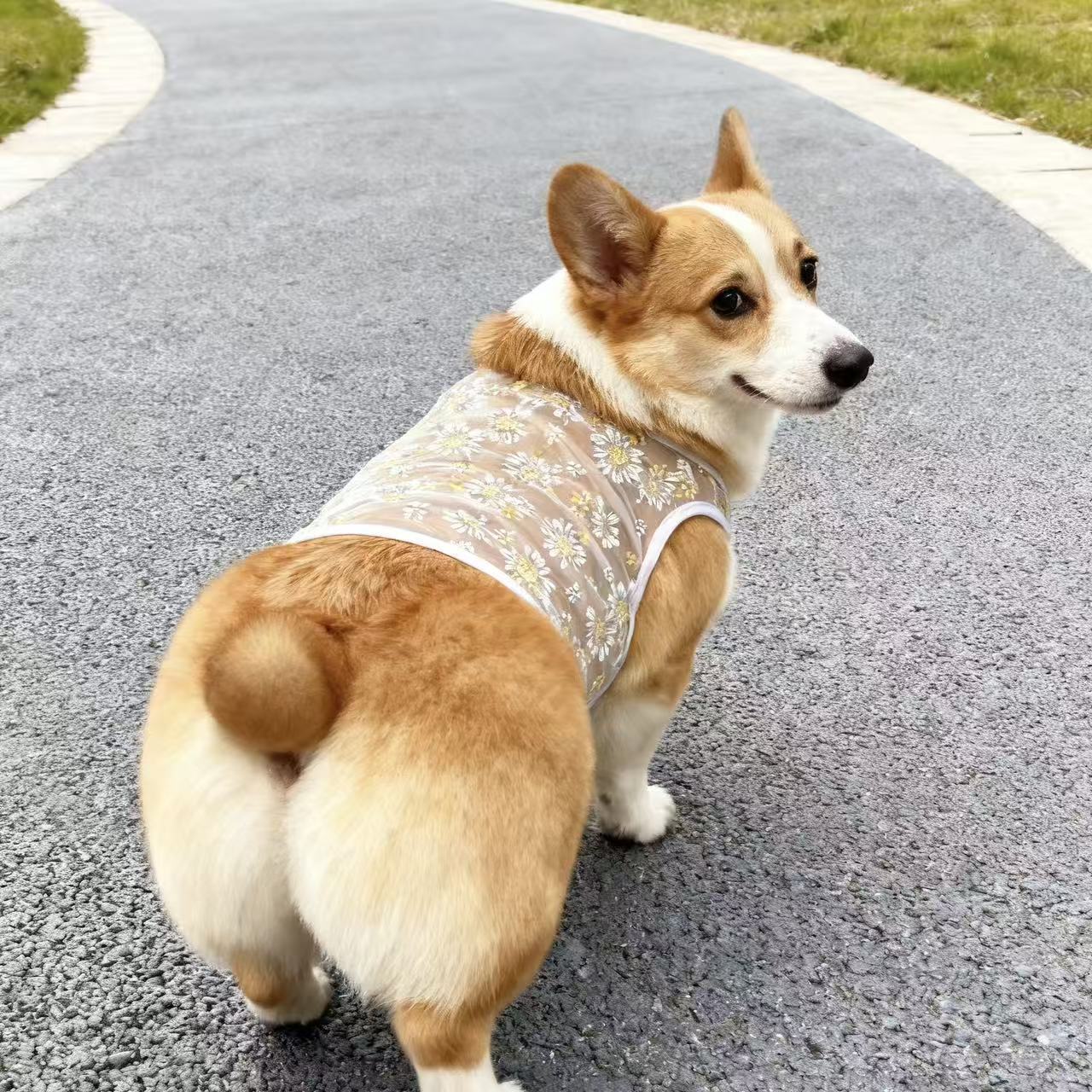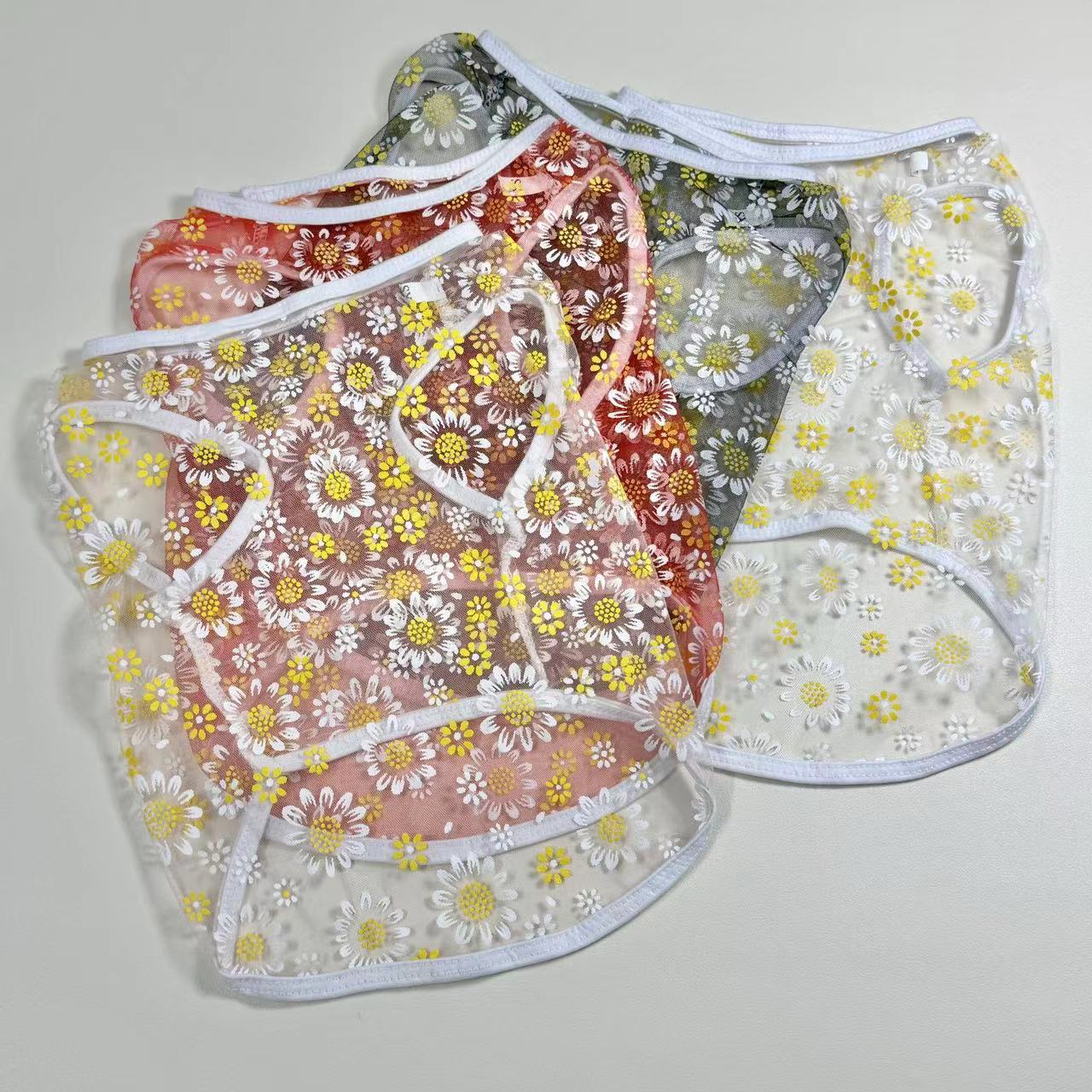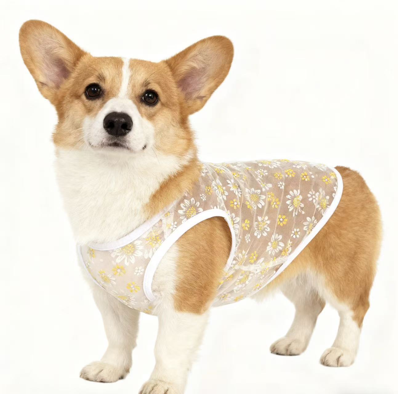 厂家出产小雏菊网纱狗狗背心,材质轻薄,穿上无负担,夏季网眼舒适透气,防晒、防掉毛,夏日出行居家必备,现货充足!
