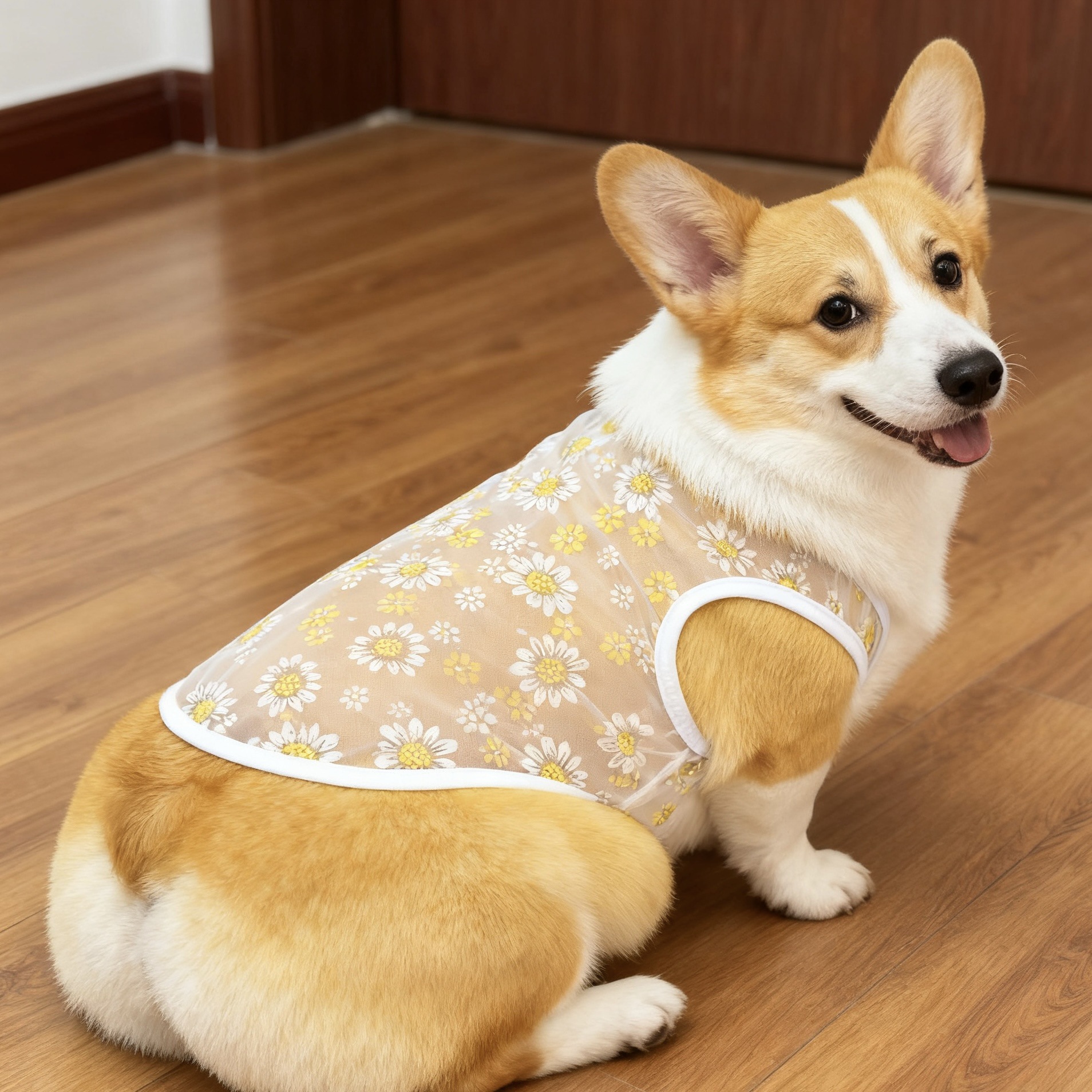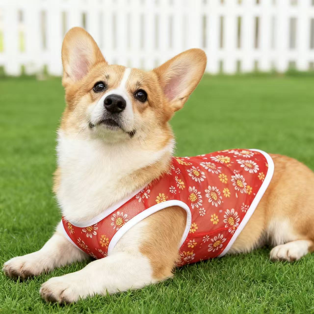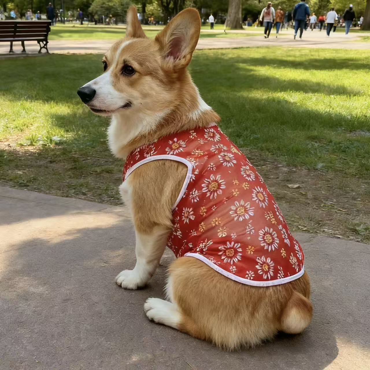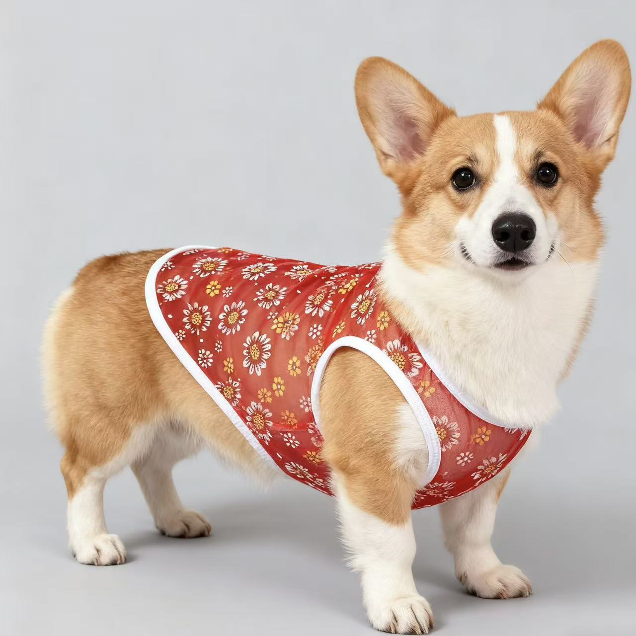 厂家出产小雏菊网纱狗狗背心,材质轻薄,穿上无负担,夏季网眼舒适透气,防晒、防掉毛,夏日出行居家必备,现货充足!