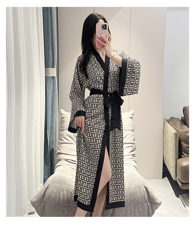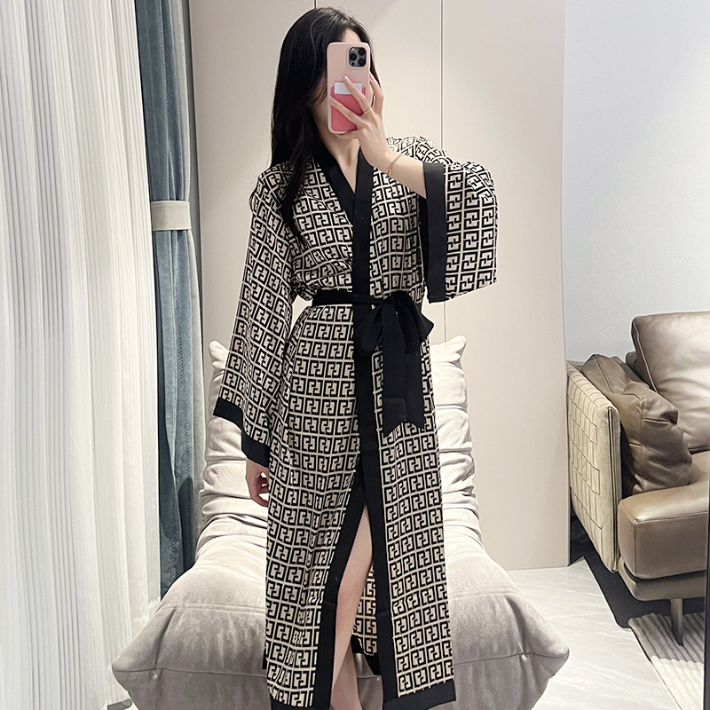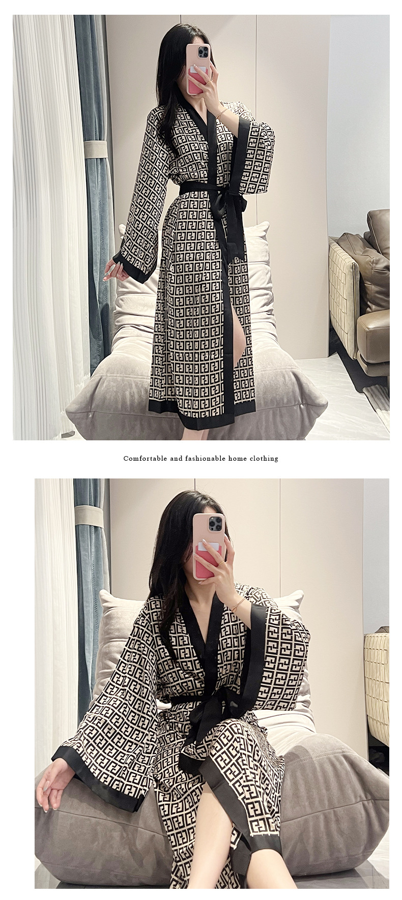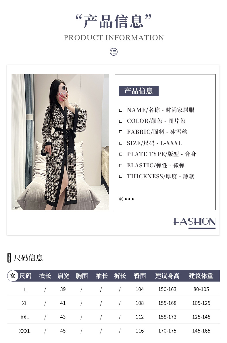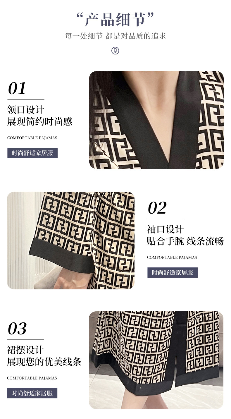 나이트가운 여성의 봄과 여름 새로운 아이스 실크 긴팔 느슨한 레이스 업 긴 잠옷 하이 엔드 인쇄 홈 의류스토어 가기