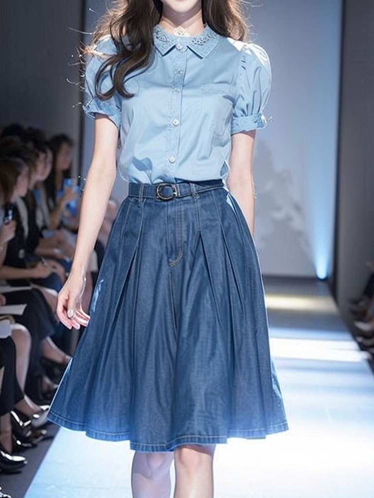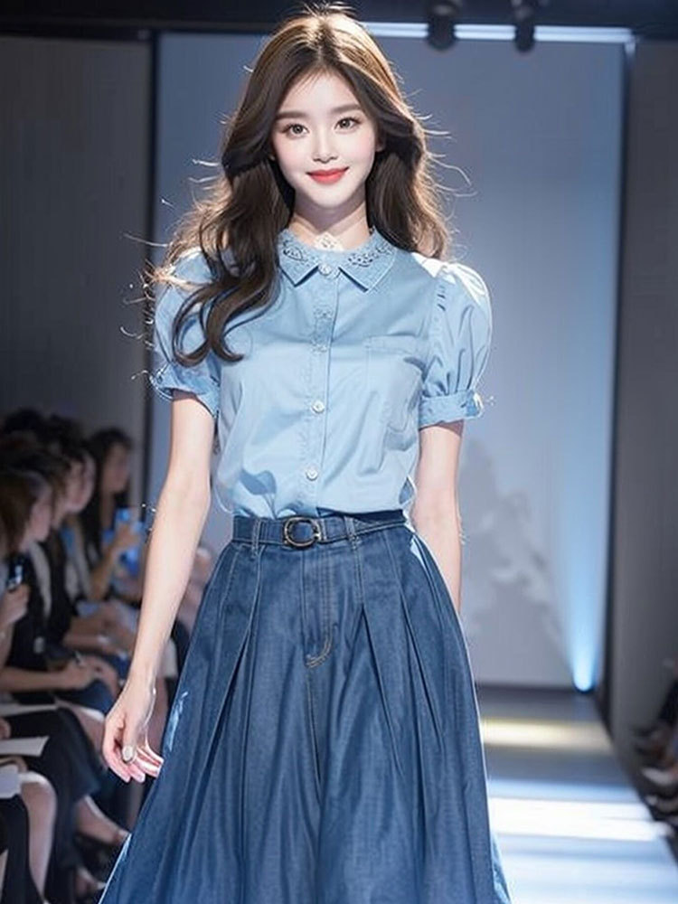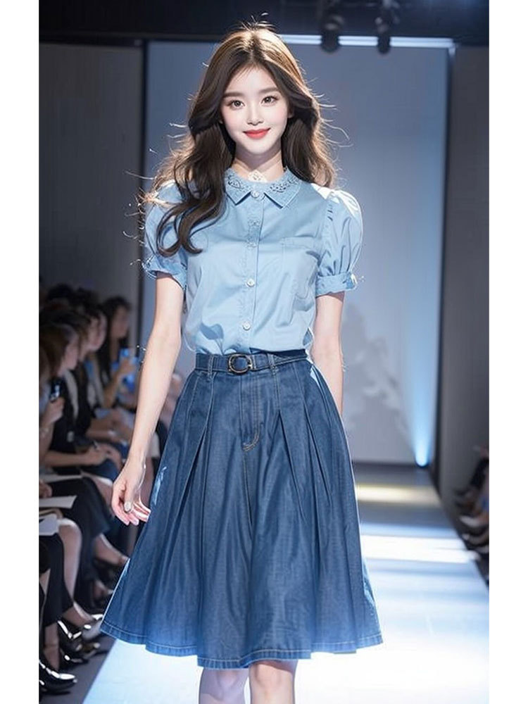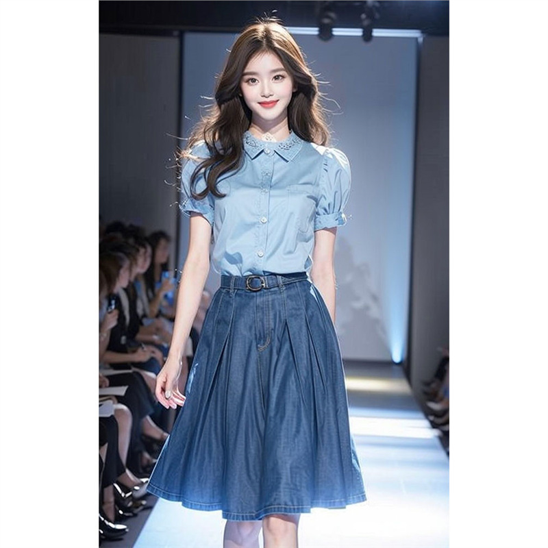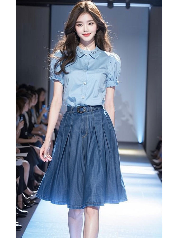 YT333062 한국 스타일의 세트와 여름 원피스-패션 블루 데님 원피스 세트 여성스토어 가기