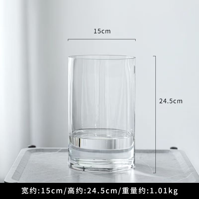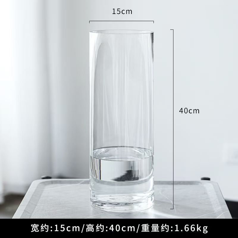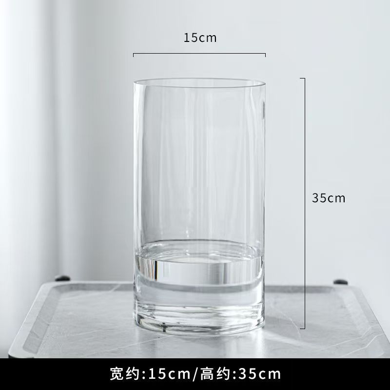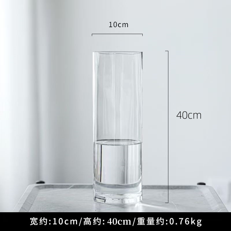 꽃병 꽃꽂이 고급 직선 꽃병 투명 유리 꽃병 풍부한 대나무 꽃병 녹색 딜 원통형 꽃병 동백 용기