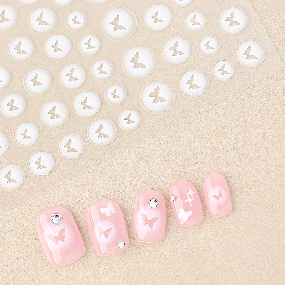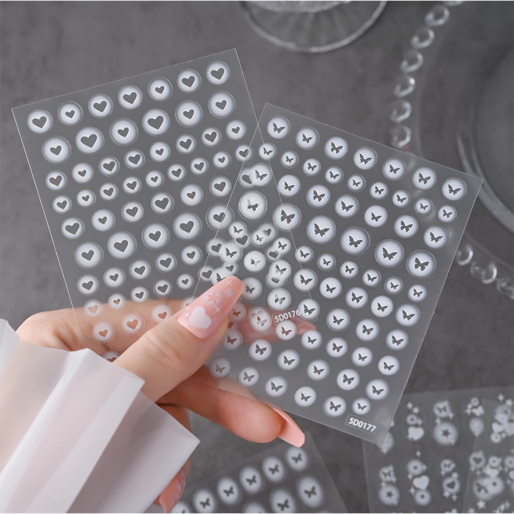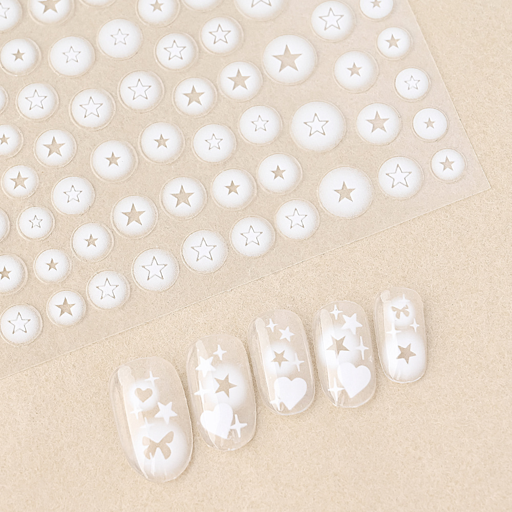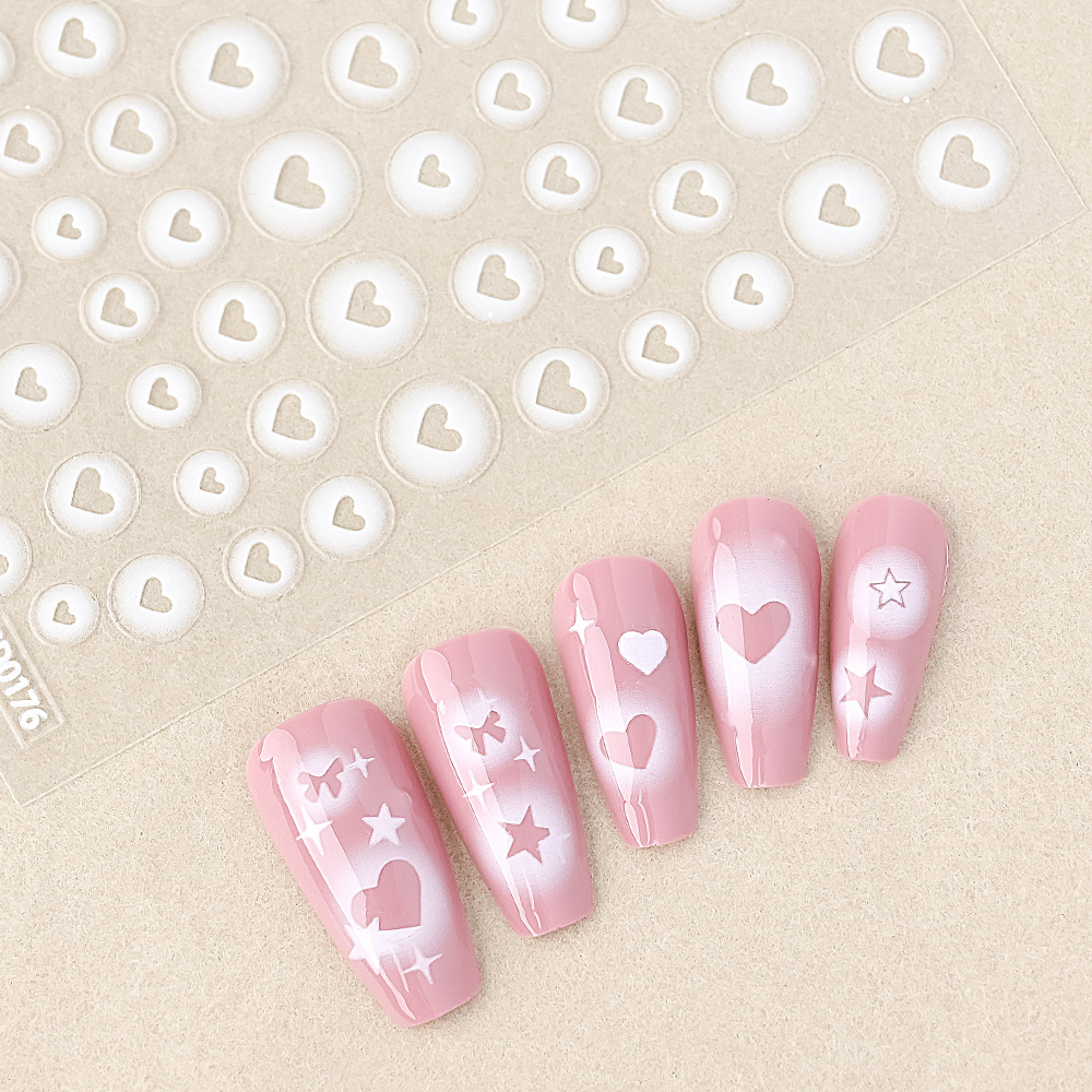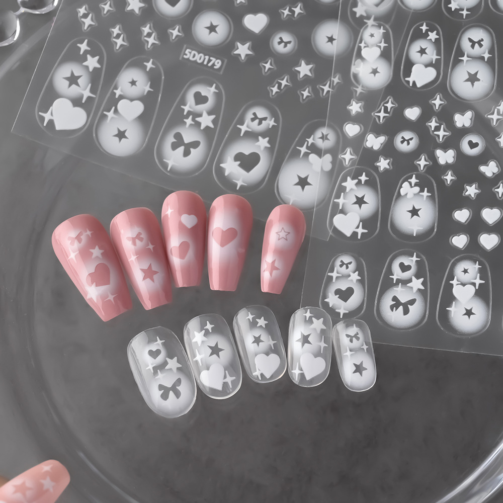 Sizzy 반투명 중공 나비 네일 아트 스티커 러브 스타 화이트 노페인팅 알몸 네일 장식 스티커