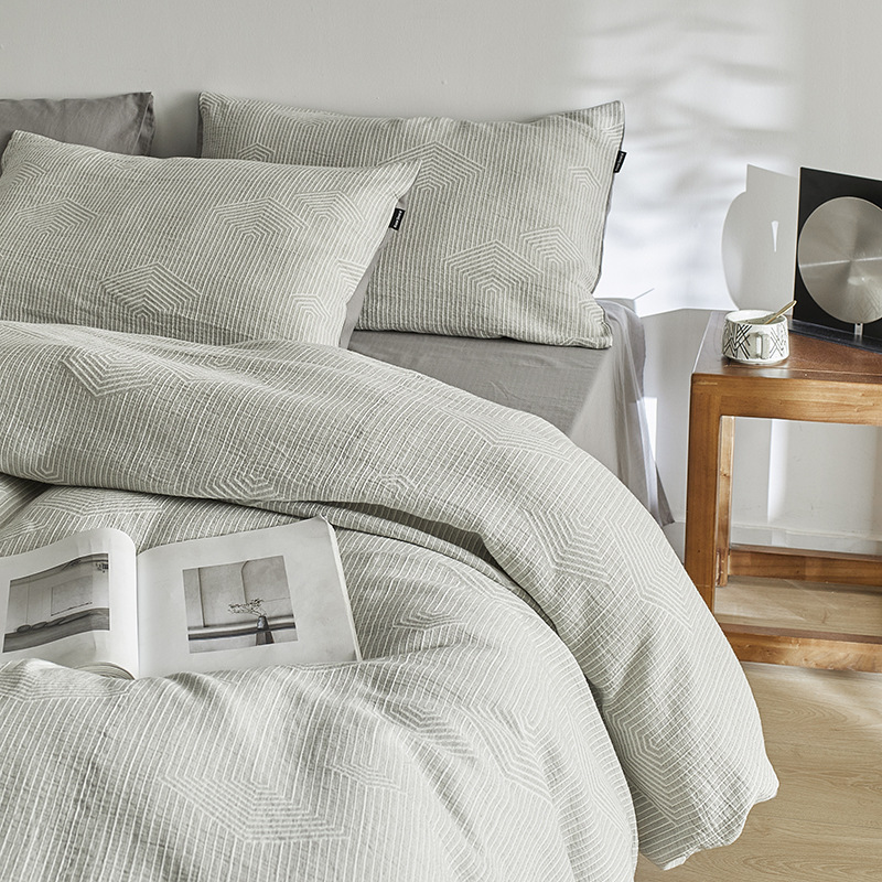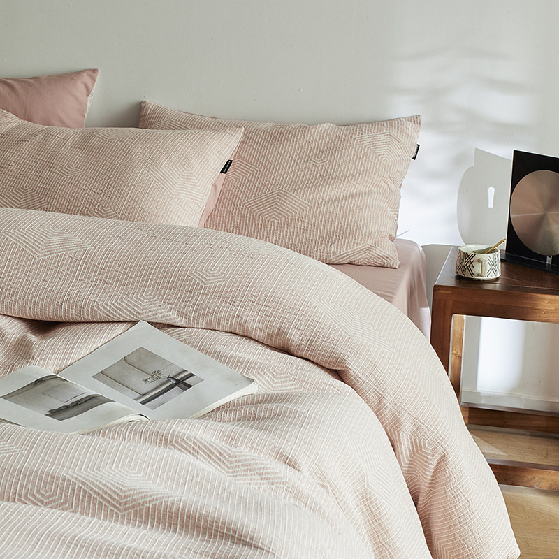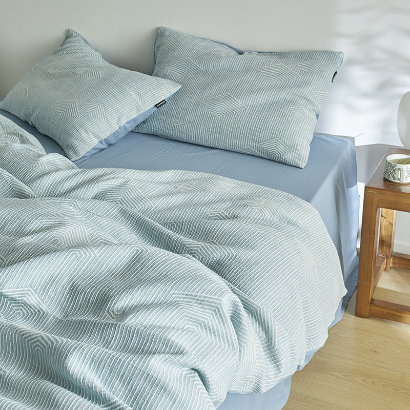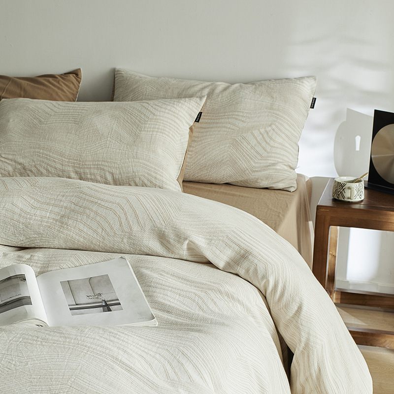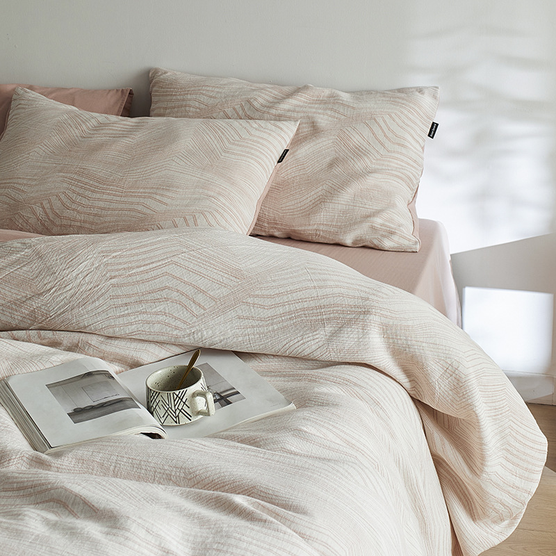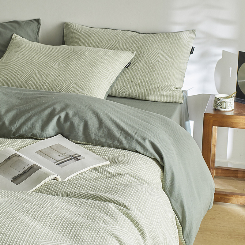 원사 염색 세척 코튼 자카드 침대 시트 4 피스 세트 코튼 코튼 2024 뉴 퀼트 커버 솔리드 컬러 고급 침구스토어 가기