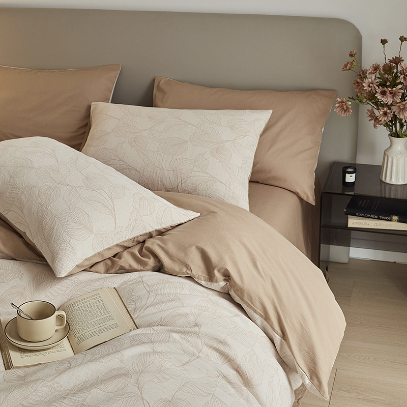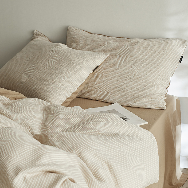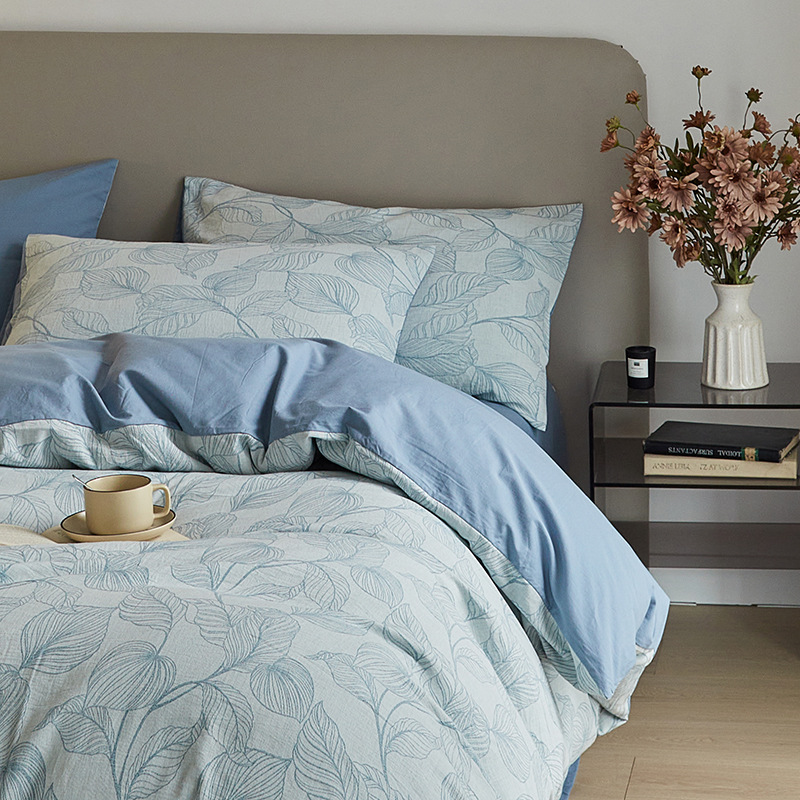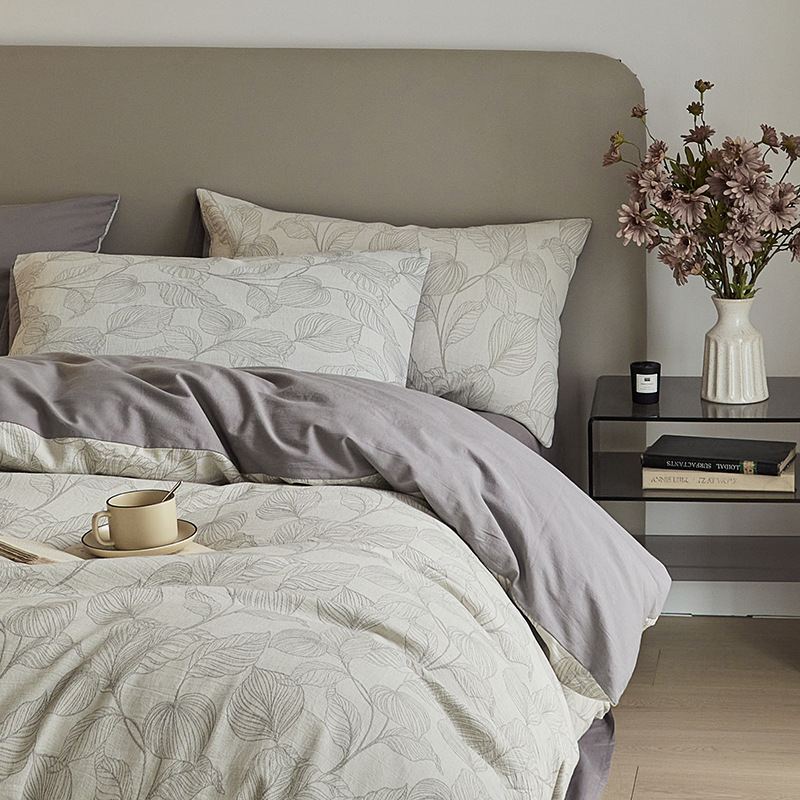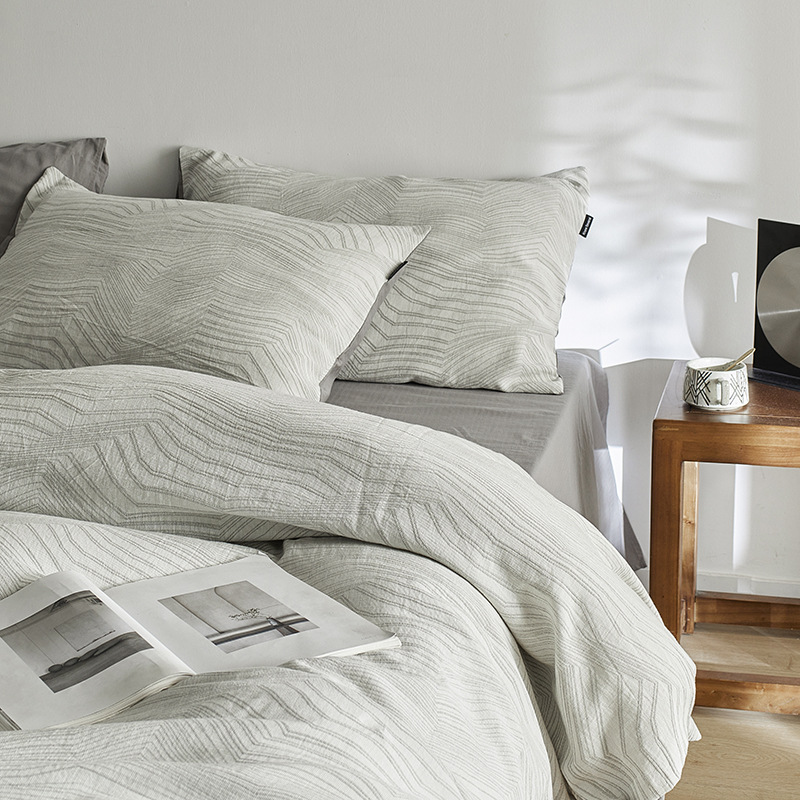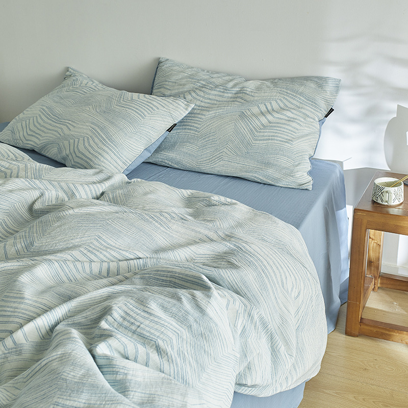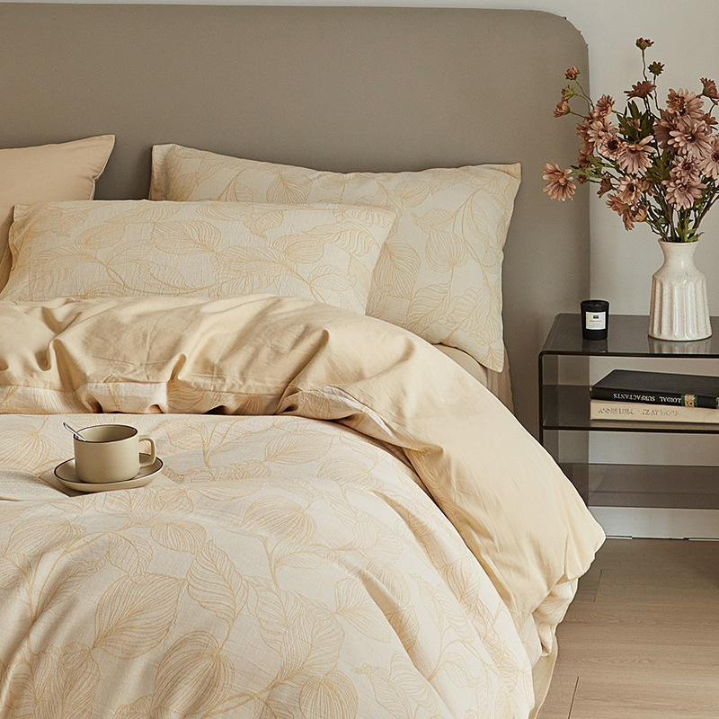원사 염색 세척 코튼 자카드 침대 시트 4 피스 세트 코튼 코튼 2024 뉴 퀼트 커버 솔리드 컬러 고급 침구스토어 가기