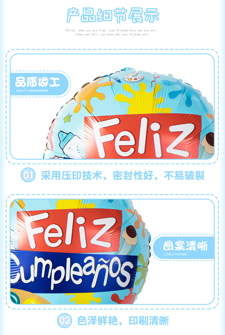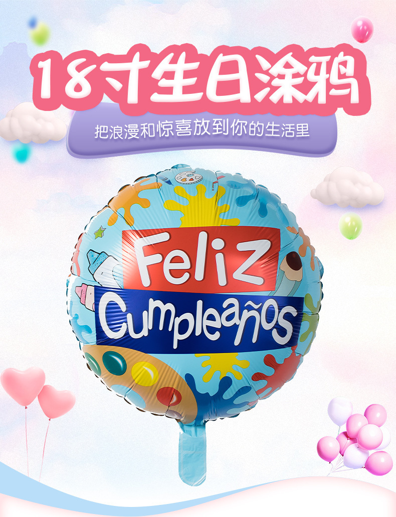 새로운 18 인치 스페인 생일 휴일 파티 축하 장식 풍선 낙서 컬러 Gravure 알루미늄 필름 장면 레이아웃스토어 가기