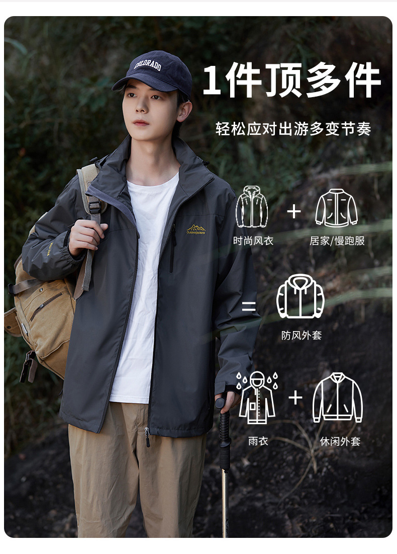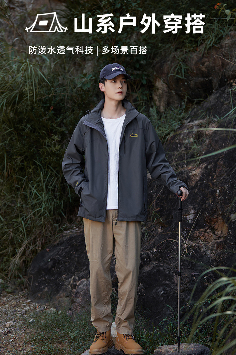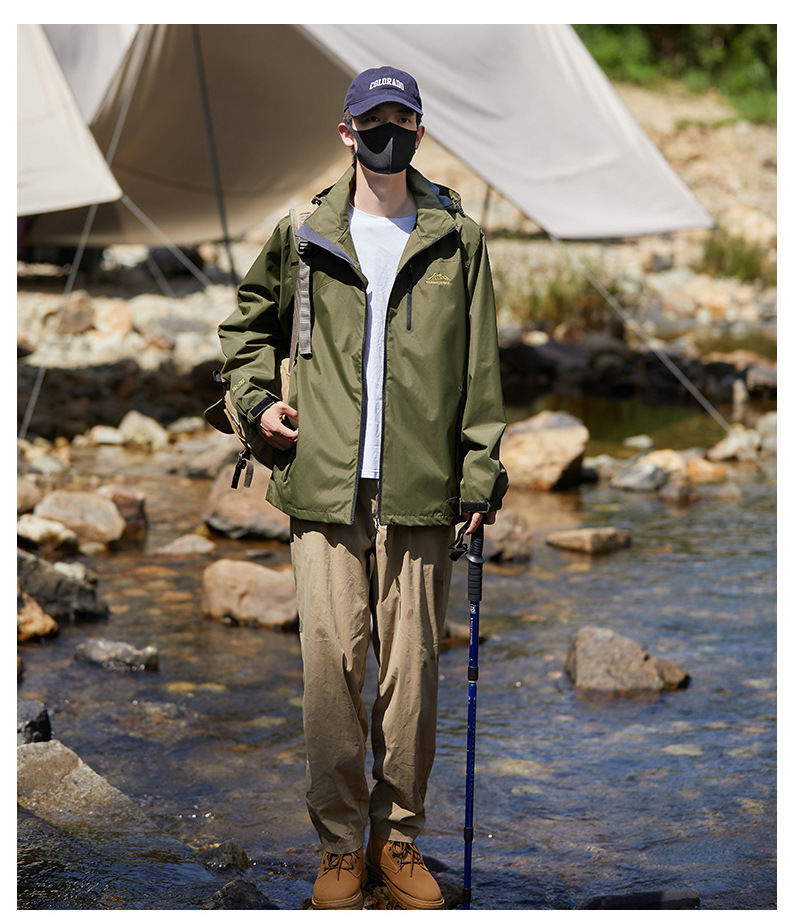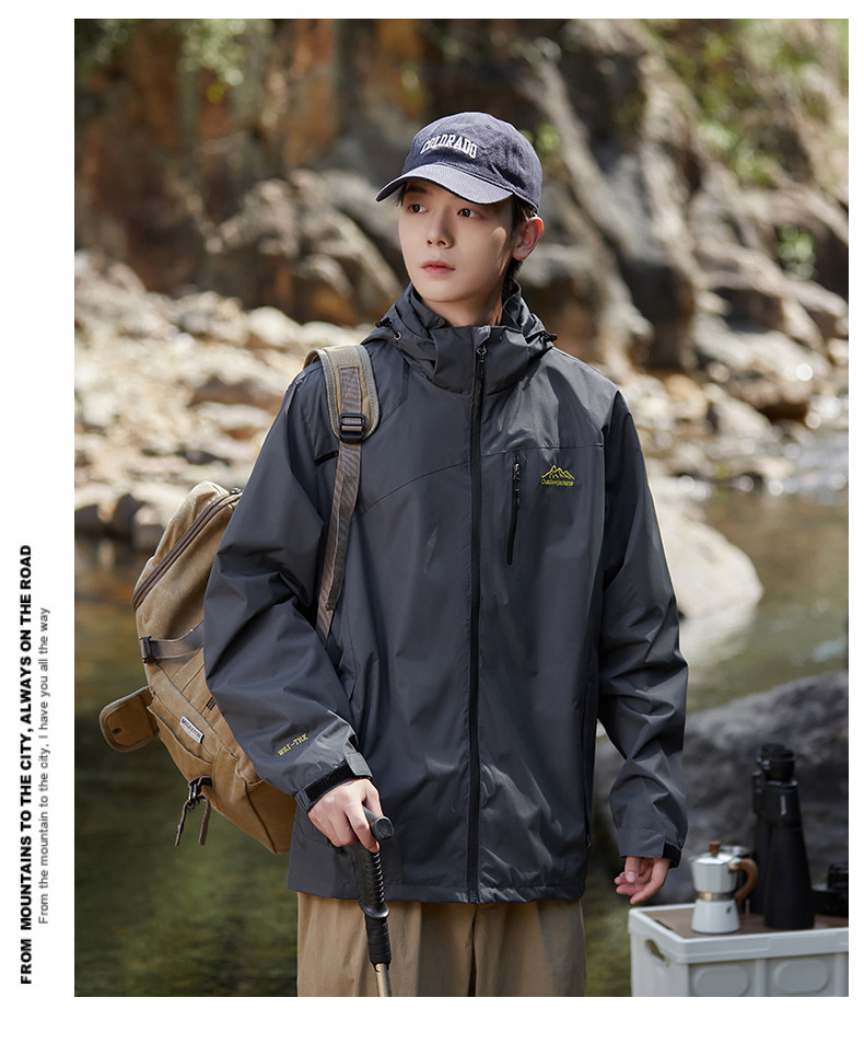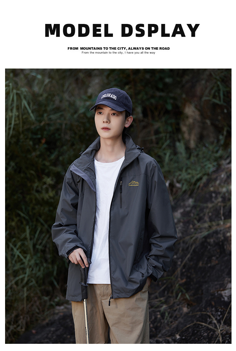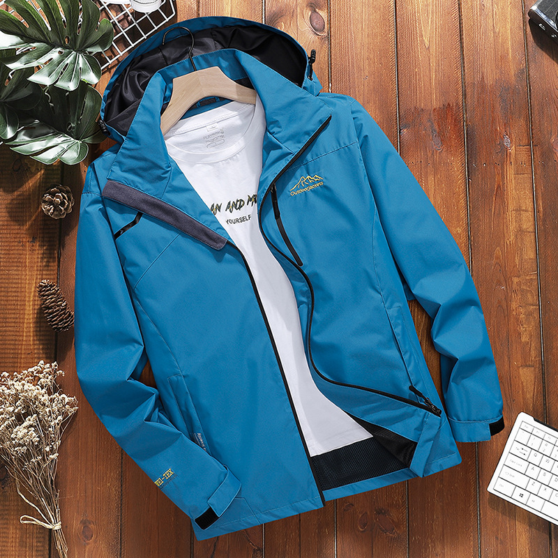 국경을 넘는 새로운 야외 재킷 남자의 봄과 가을 살짝 더하기 자수 후드 방수 방풍 비즈니스 자켓 남성