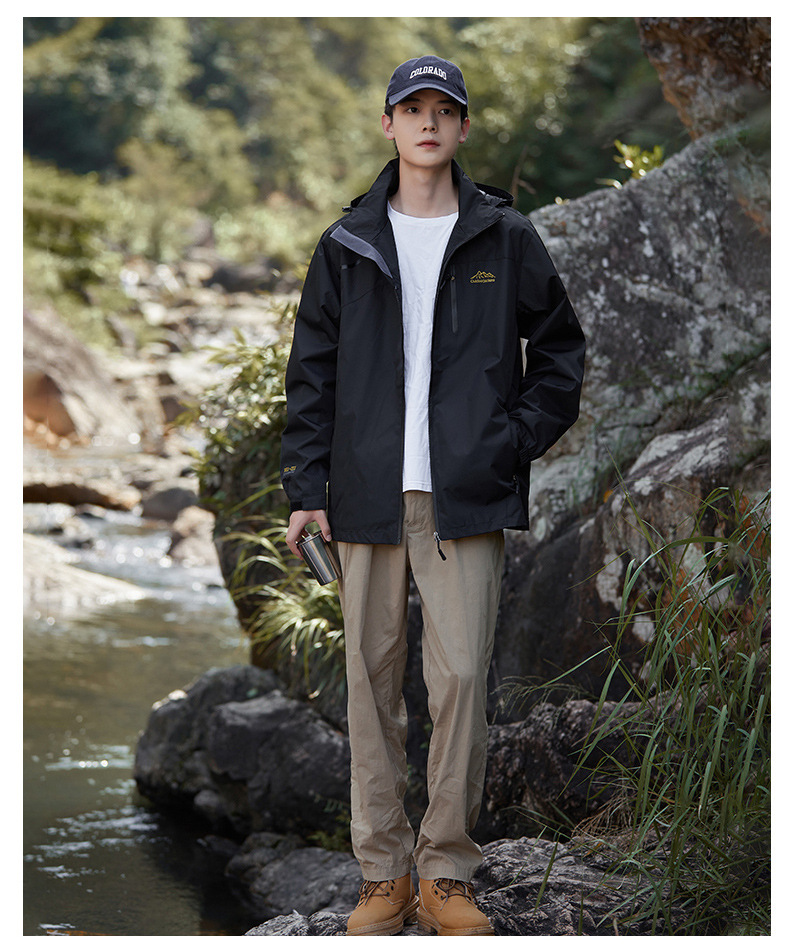 국경을 넘는 새로운 야외 재킷 남자의 봄과 가을 살짝 더하기 자수 후드 방수 방풍 비즈니스 자켓 남성스토어 가기