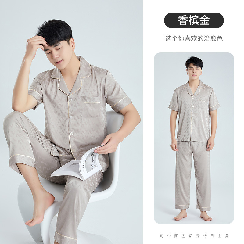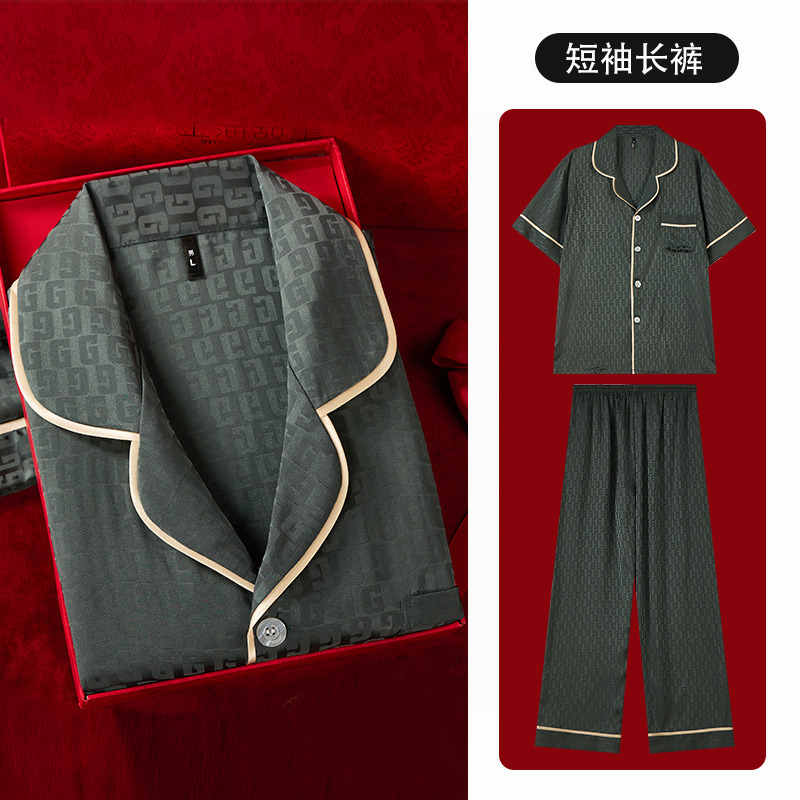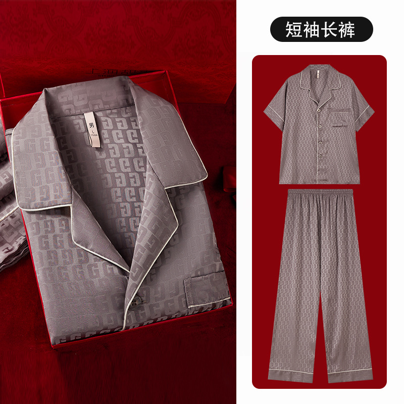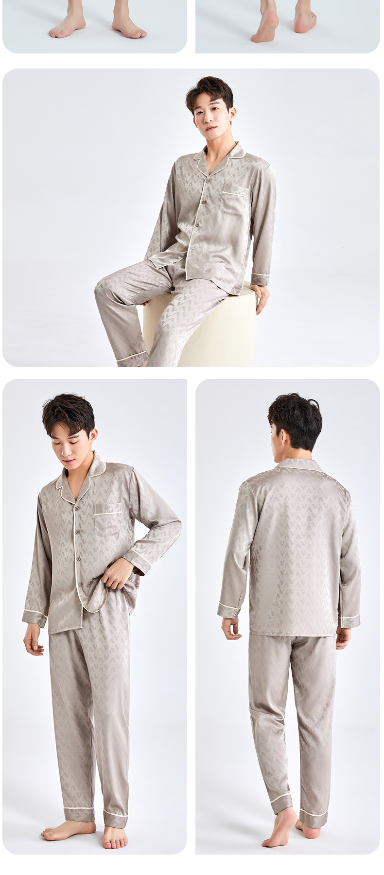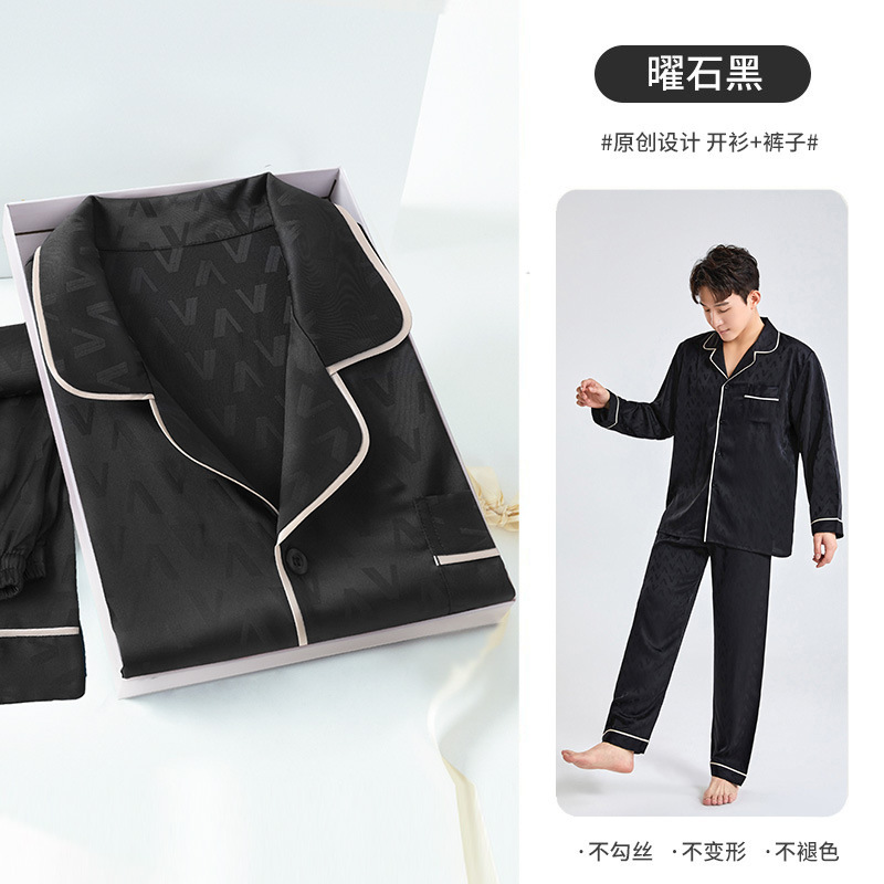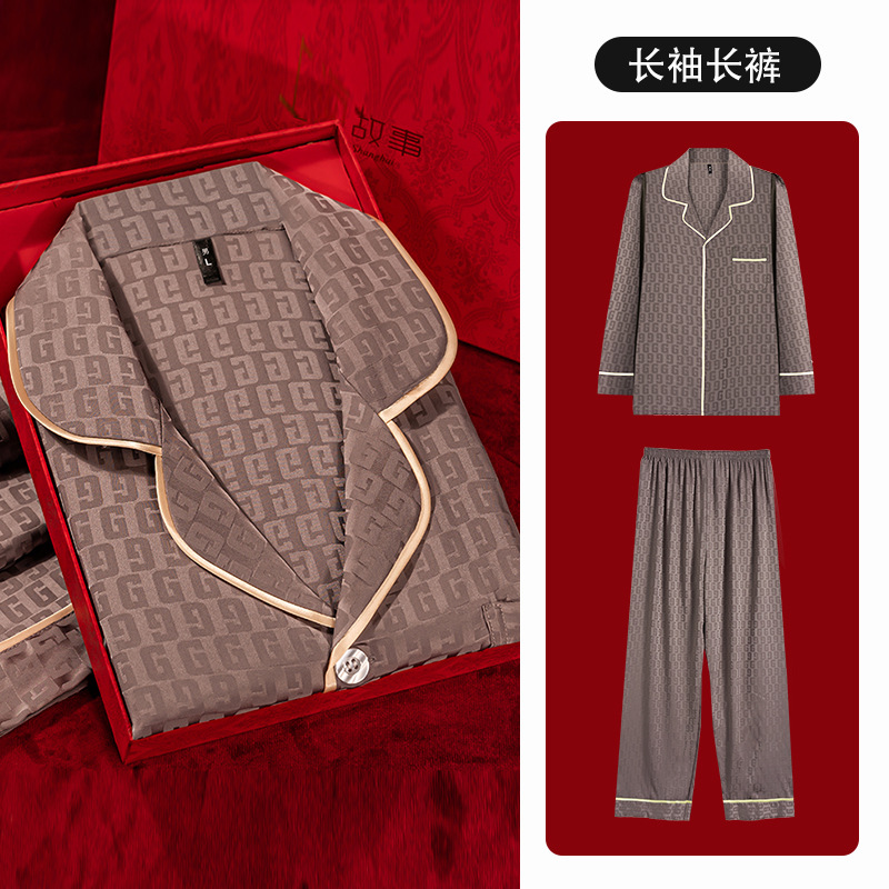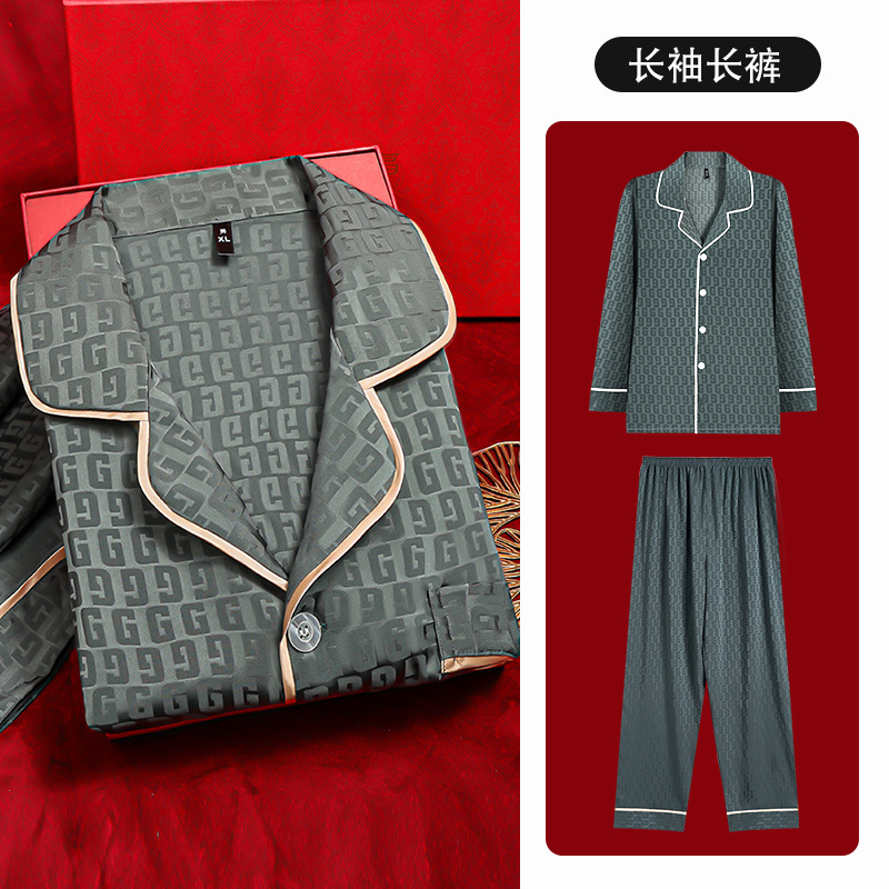 다빈치 코드 남성 잠옷 자카드 디자인 외출복으로도 착용 가능 고급스러운 아이스 실크 대형 홈웨어 선물용 실크 느낌