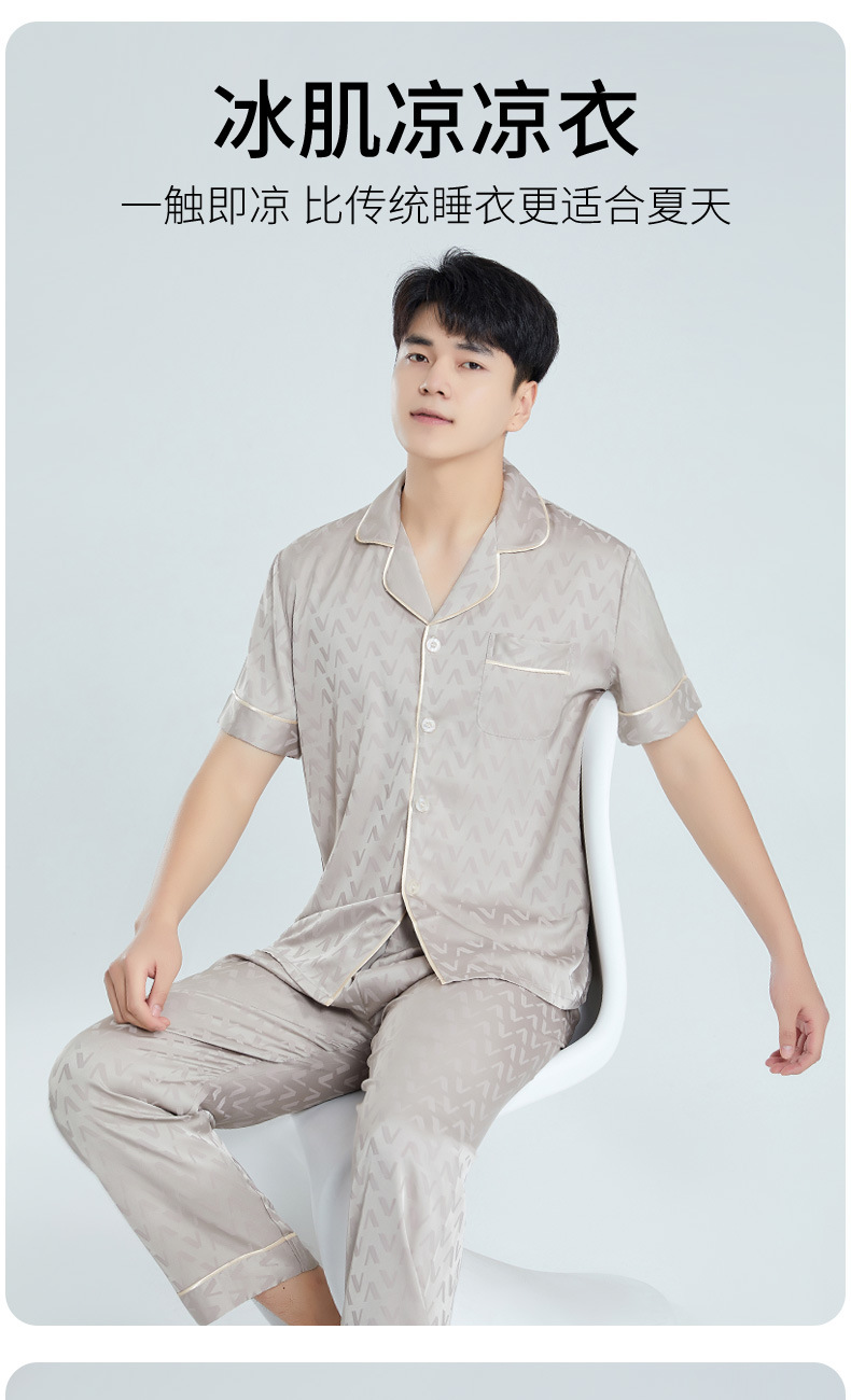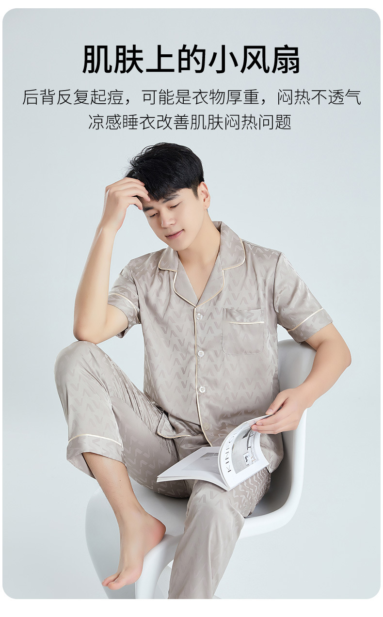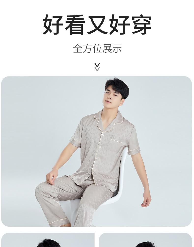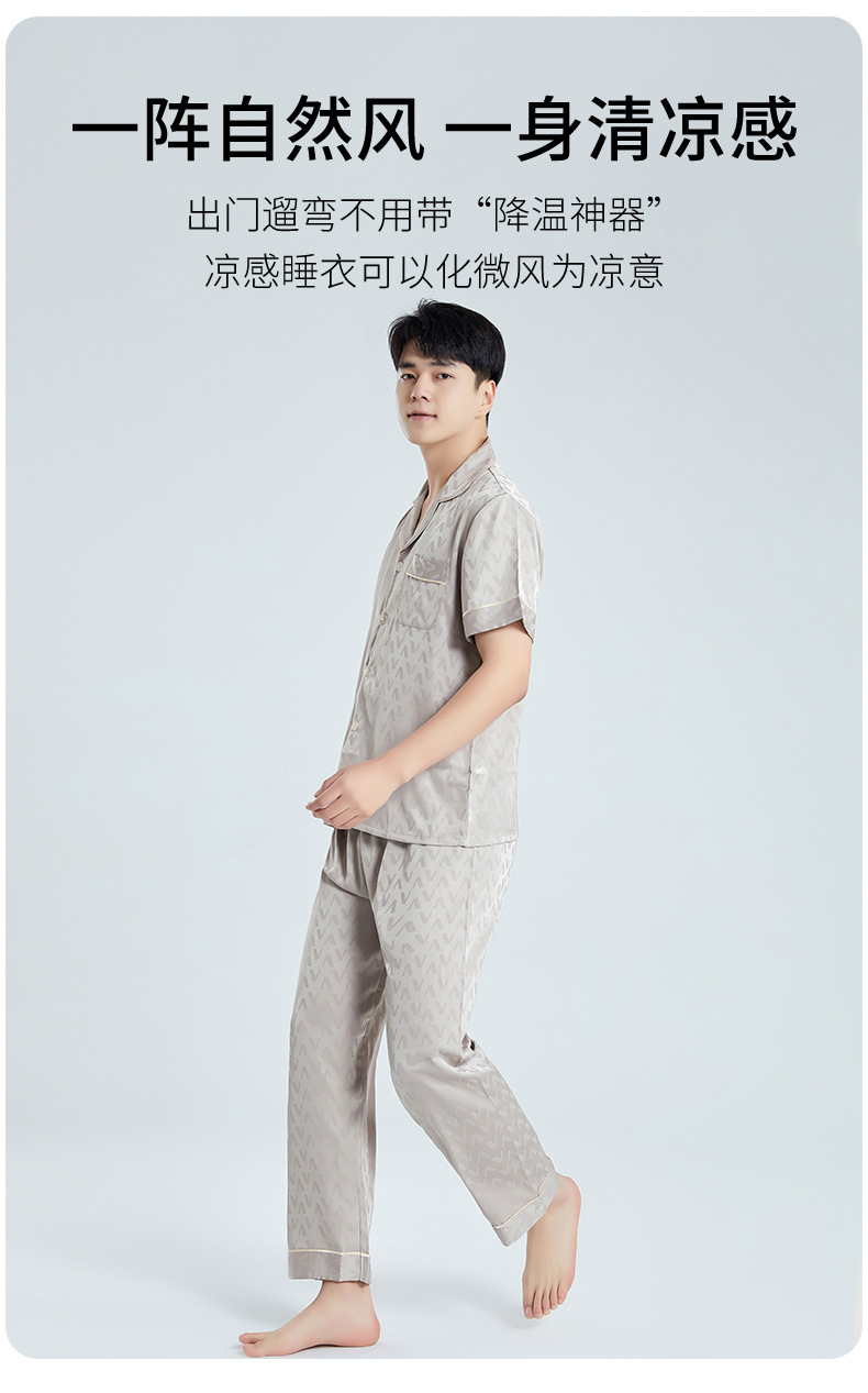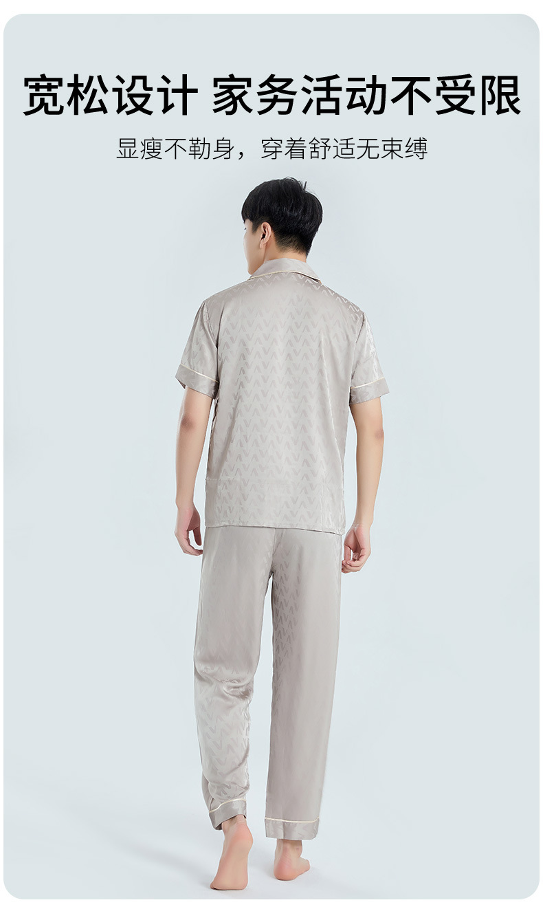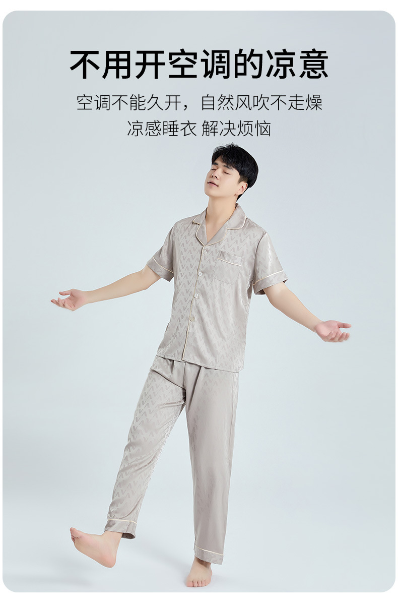 다빈치 코드 남성 잠옷 자카드 디자인 외출복으로도 착용 가능 고급스러운 아이스 실크 대형 홈웨어 선물용 실크 느낌