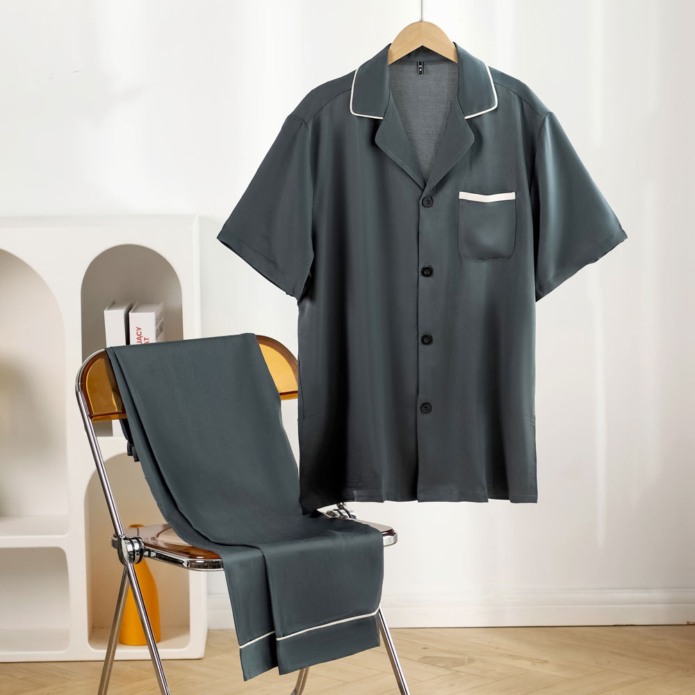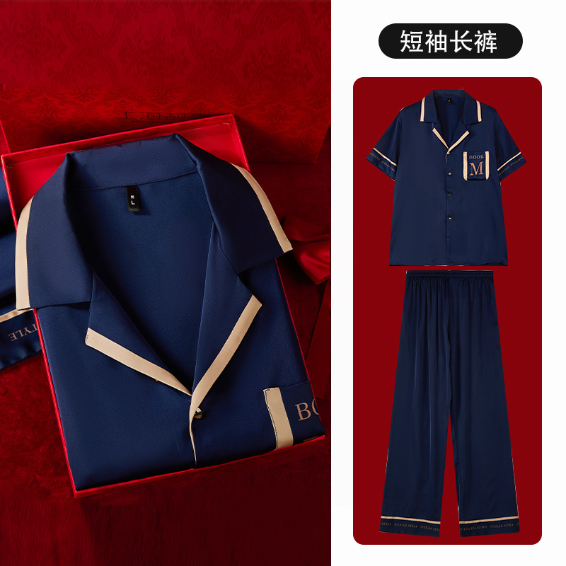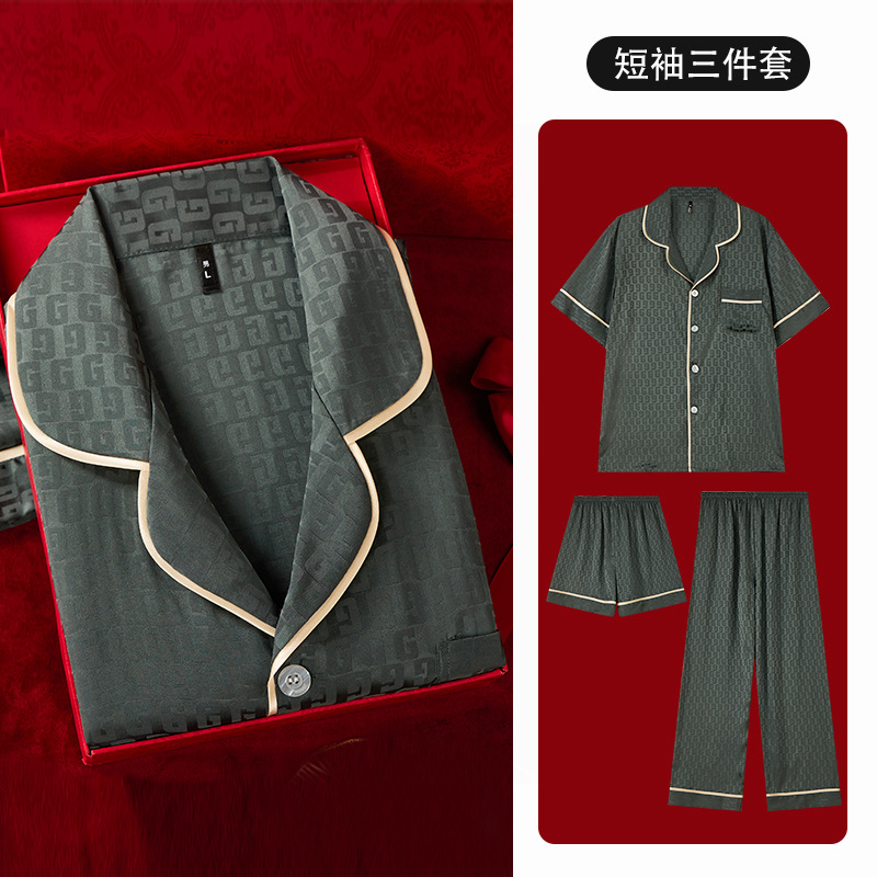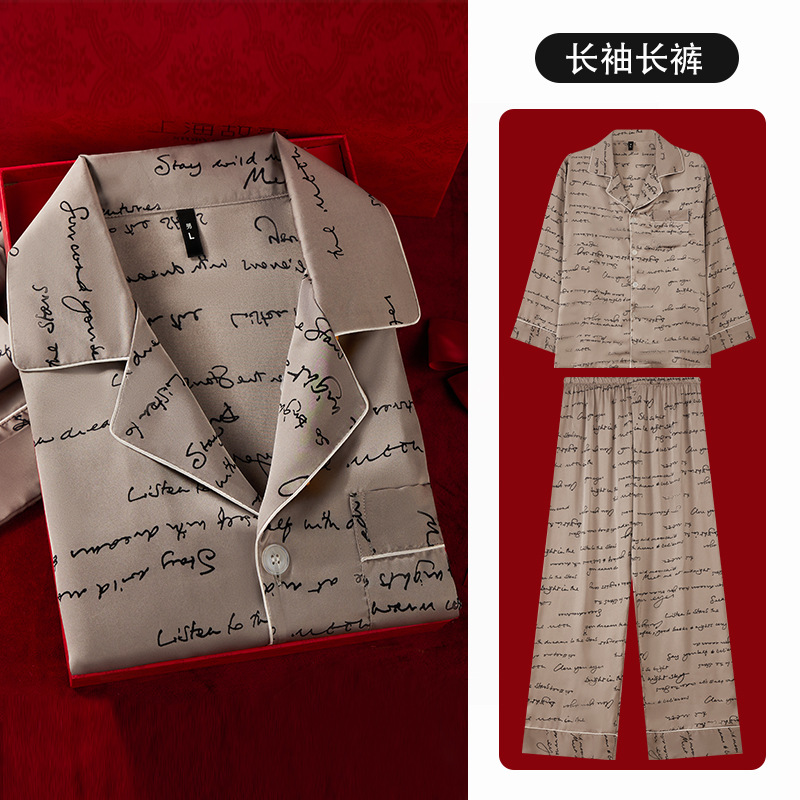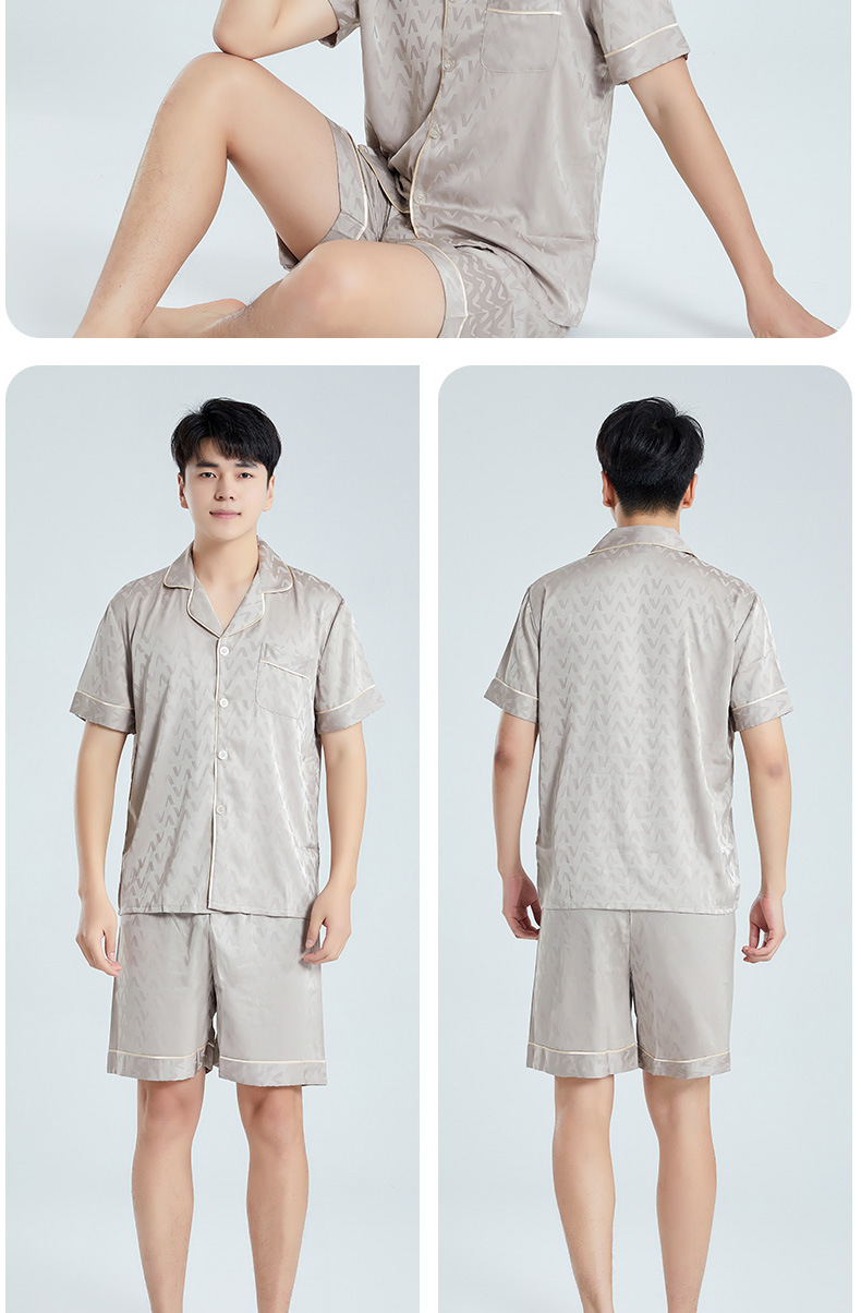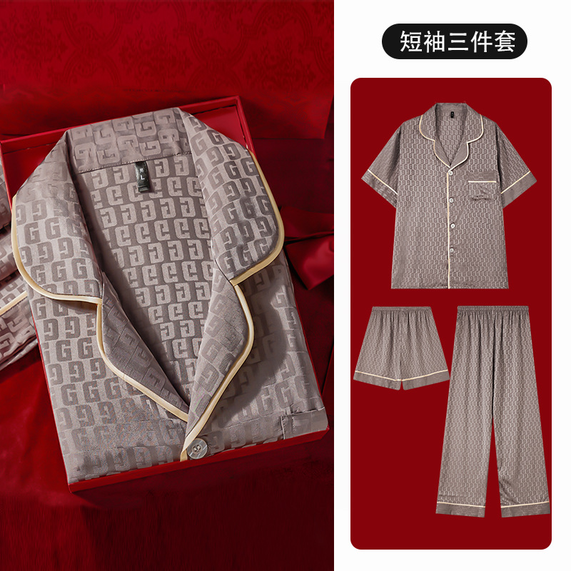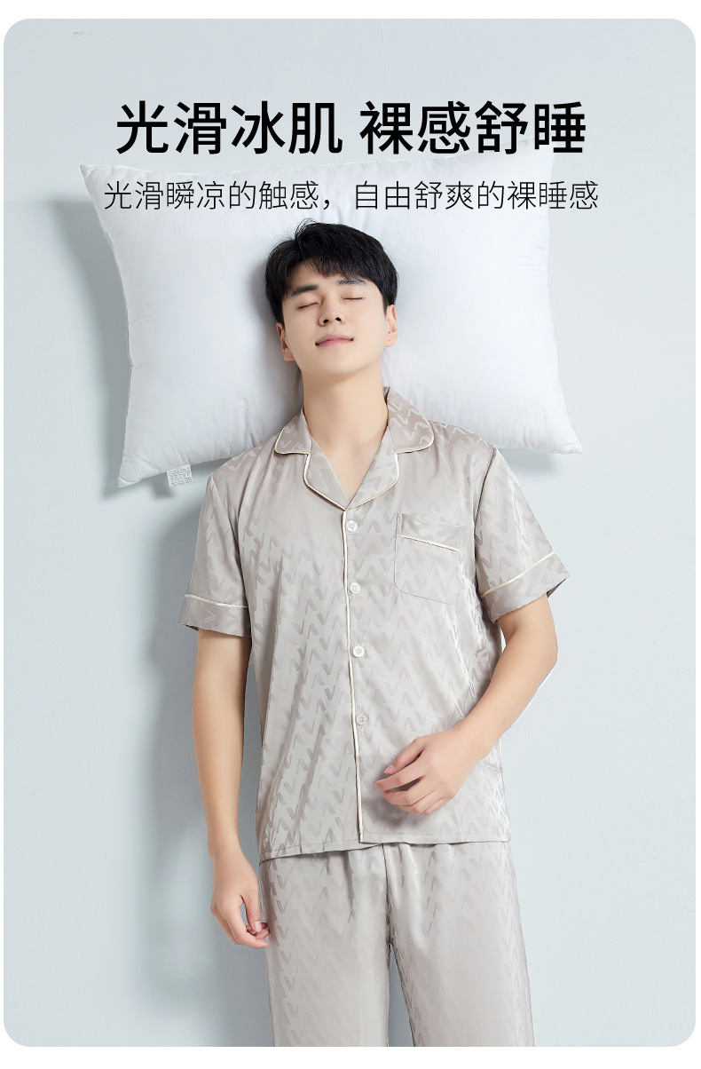 다빈치 코드 남성 잠옷 자카드 디자인 외출복으로도 착용 가능 고급스러운 아이스 실크 대형 홈웨어 선물용 실크 느낌