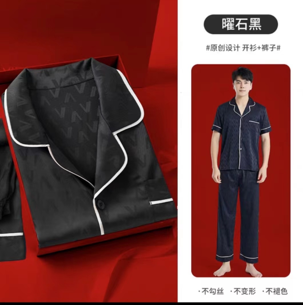 다빈치 코드 남성 잠옷 자카드 디자인 외출복으로도 착용 가능 고급스러운 아이스 실크 대형 홈웨어 선물용 실크 느낌스토어 가기