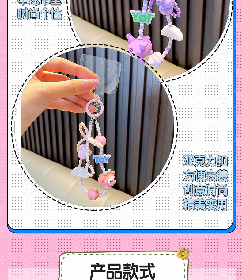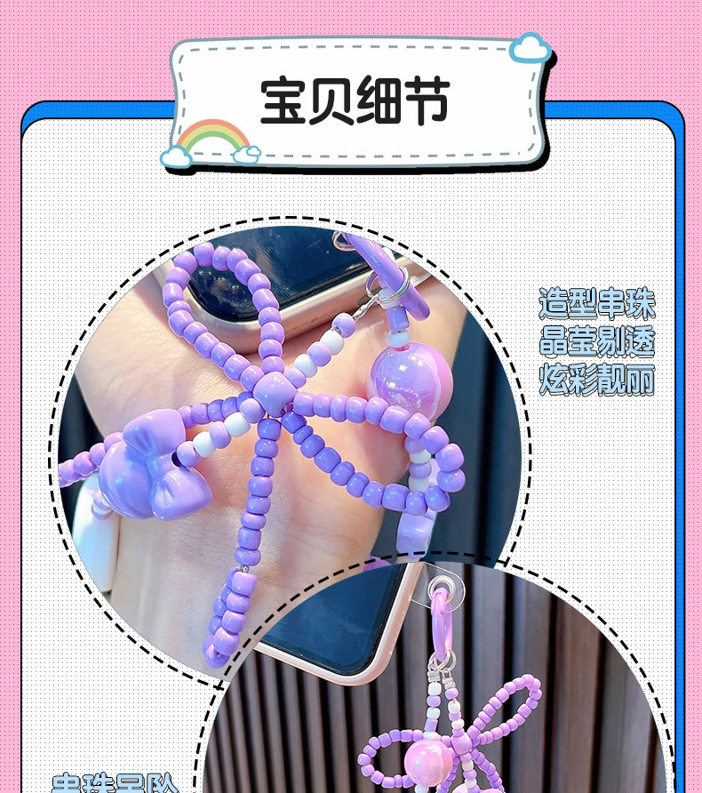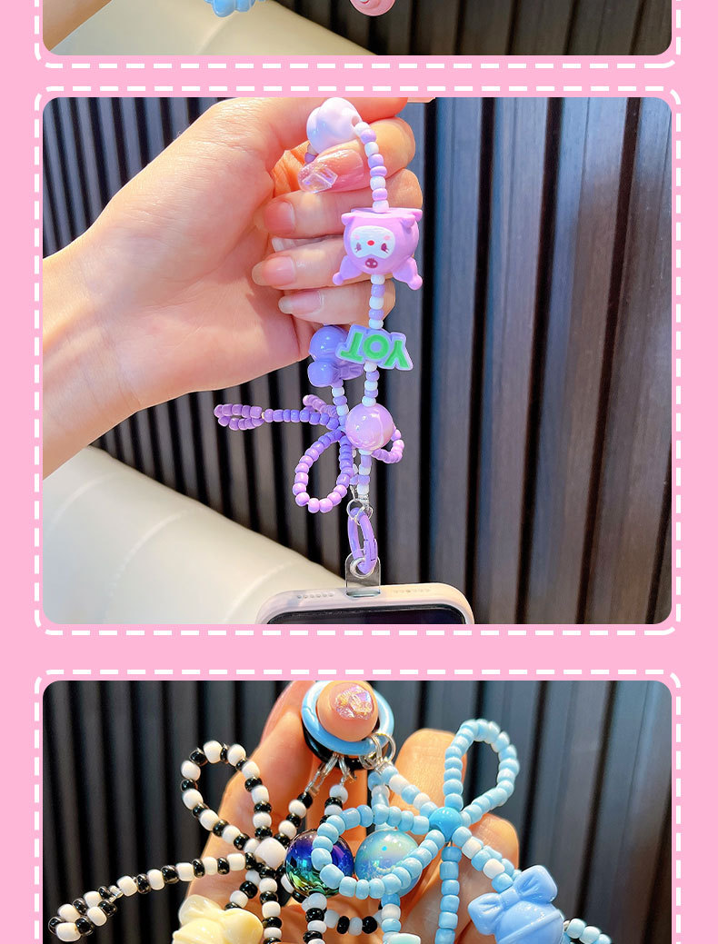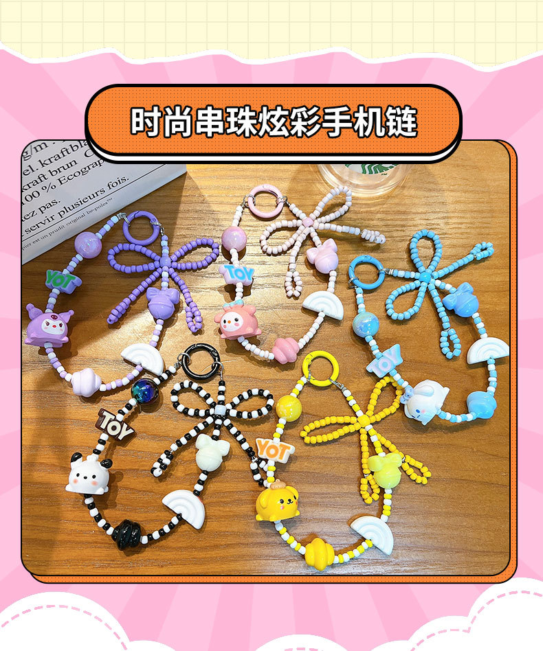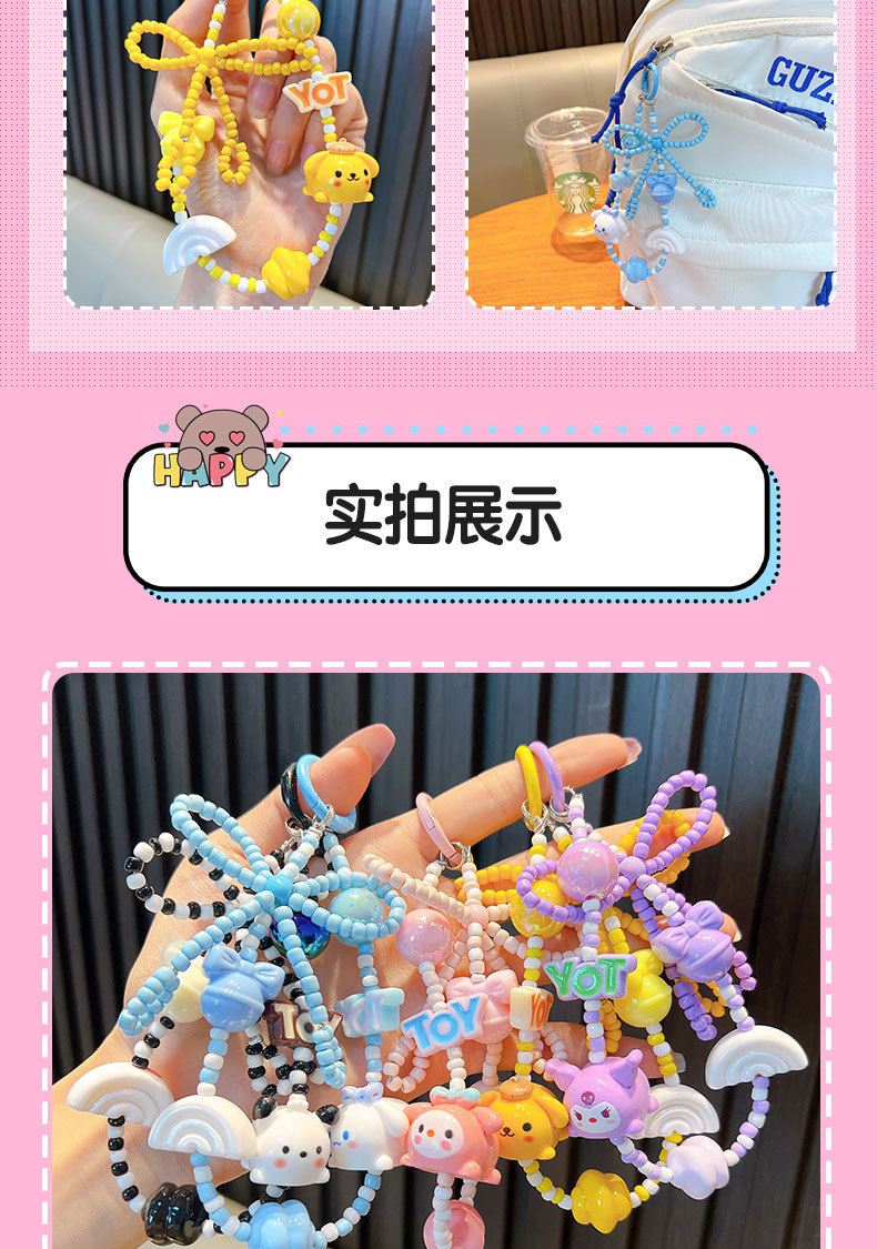 산리오 인형 구슬 휴대 전화 교수형 체인 키 체인 여성 휴대 전화 케이스 액세서리 교수형 장식품 Kulomi 키 체인 펜던트스토어 가기