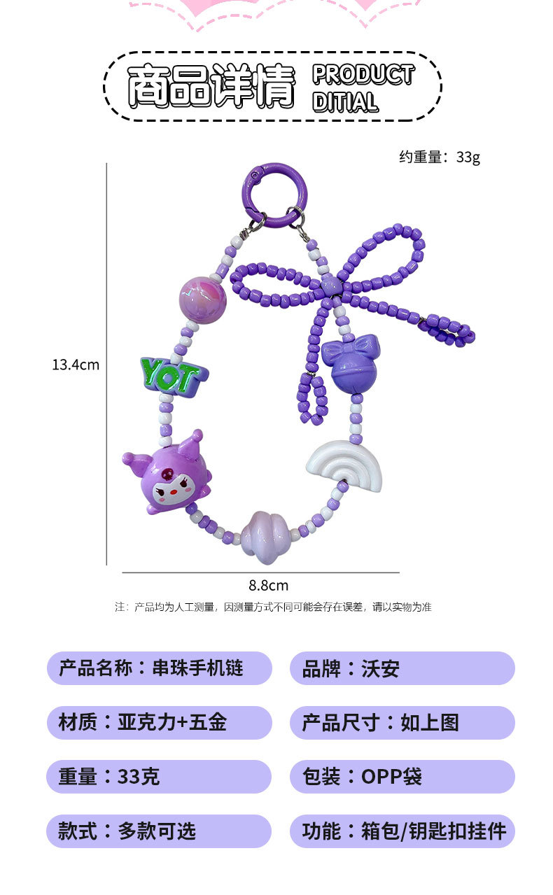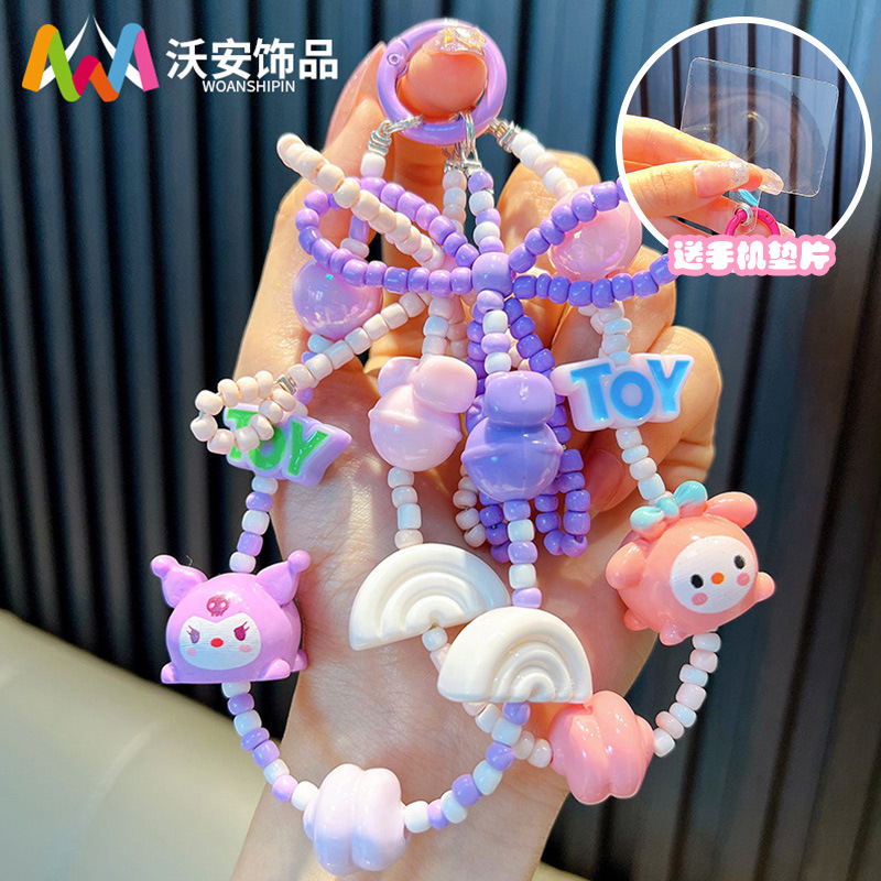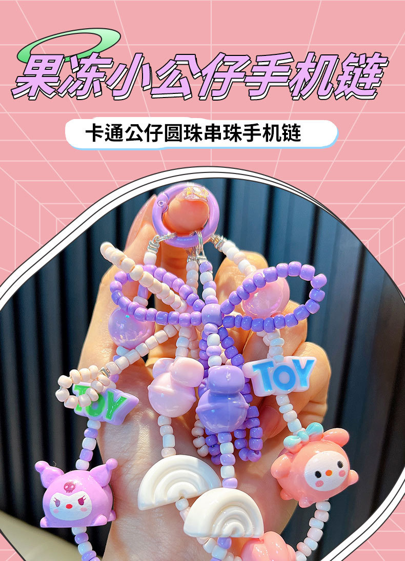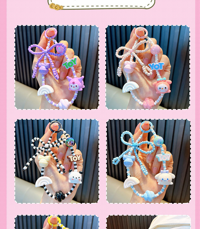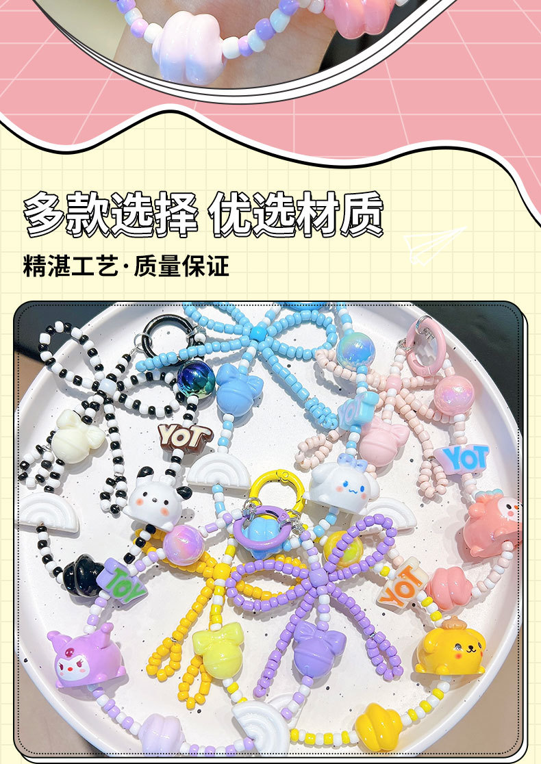 산리오 인형 구슬 휴대 전화 교수형 체인 키 체인 여성 휴대 전화 케이스 액세서리 교수형 장식품 Kulomi 키 체인 펜던트