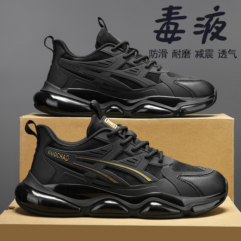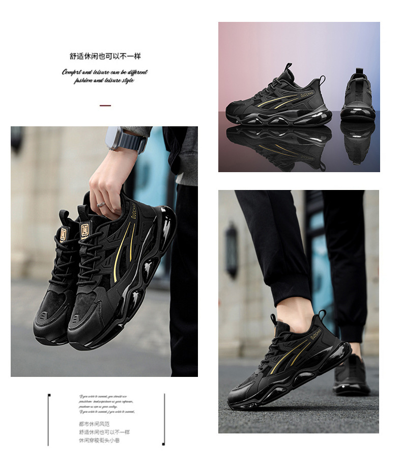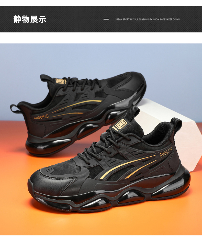 男鞋夏季透气休闲网面莆田运动鞋男气垫减震增高防滑黑色老爹潮鞋