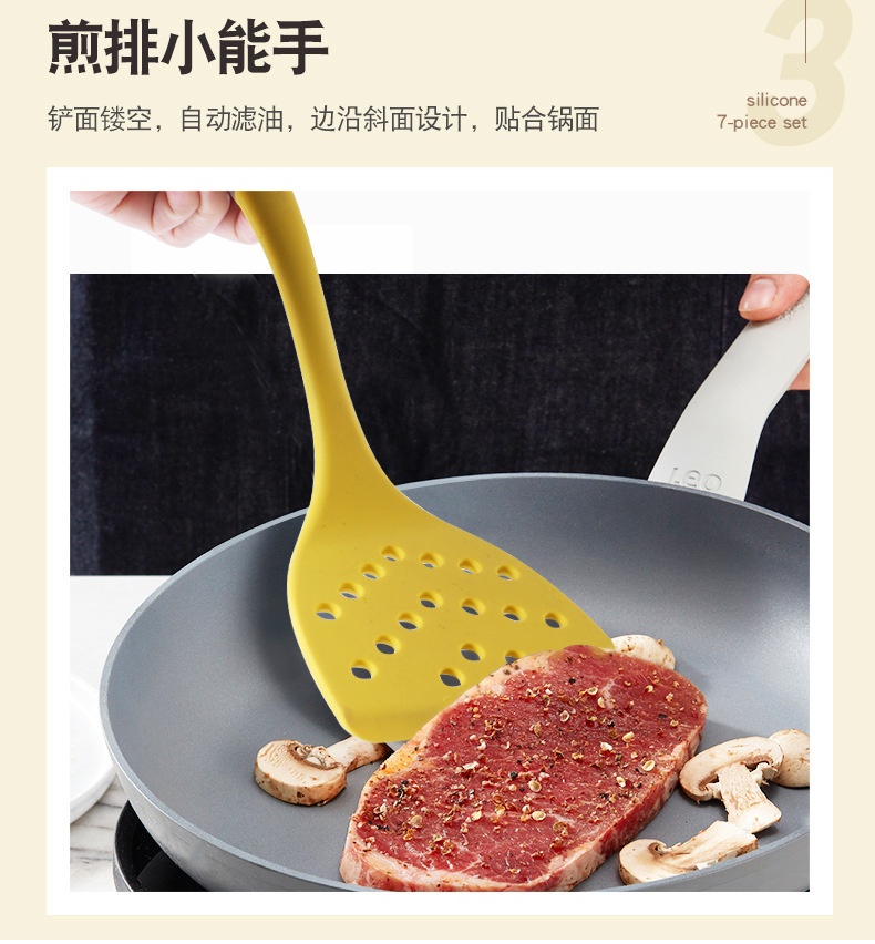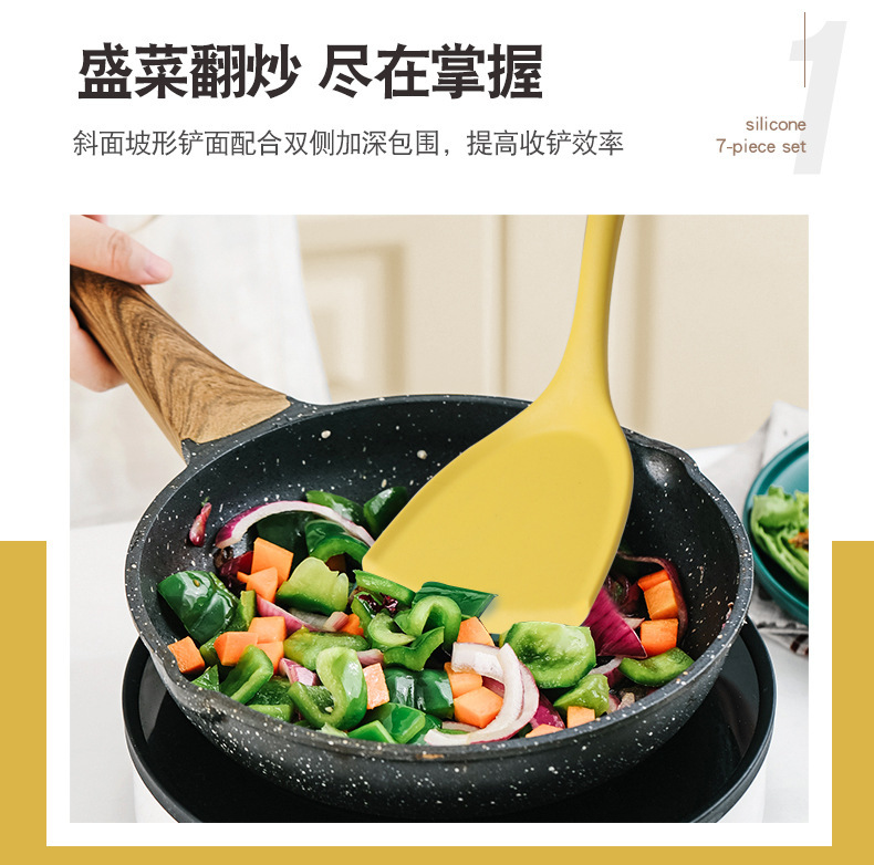 높은 색상 값 높은 온도 저항하는 실리콘 7 조각 세트 2 색 주걱 가정용 비 스틱 팬 특별 요리 삽 주방용품 세트스토어 가기
