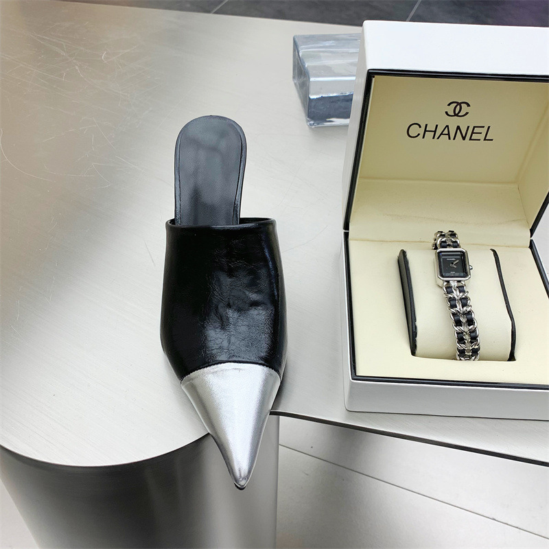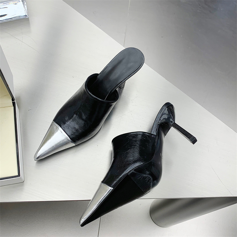 Baotou 슬리퍼 외부 얇은 발 뒤꿈치 2024 새로운 유럽과 미국의 패션 여성 하이힐 올 매치 포인팅 하이힐 슬리퍼