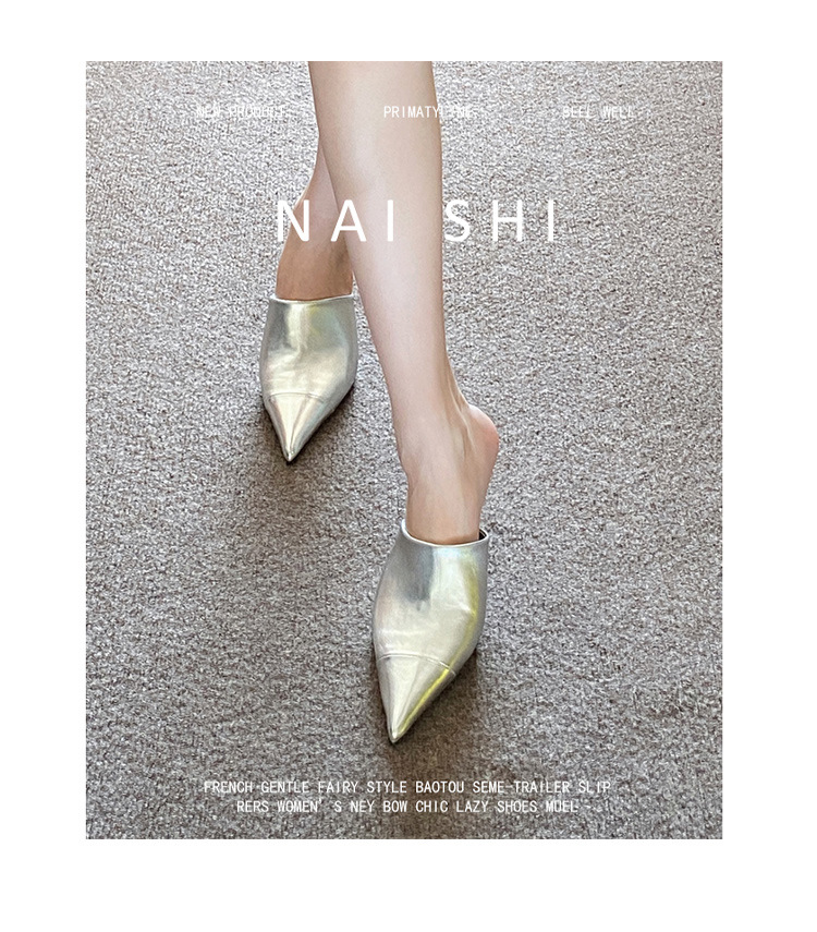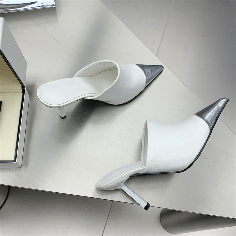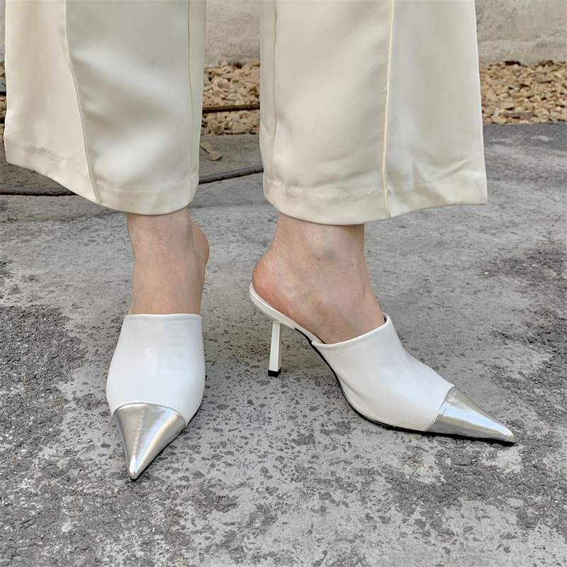 Baotou 슬리퍼 외부 얇은 발 뒤꿈치 2024 새로운 유럽과 미국의 패션 여성 하이힐 올 매치 포인팅 하이힐 슬리퍼스토어 가기