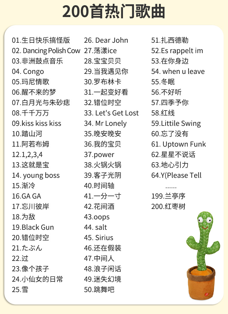 동요 톤 국경 스윙, 선인장 트위스트 재미 인터넷 유명 인사 노래 및 춤 전기 봉제 장난감