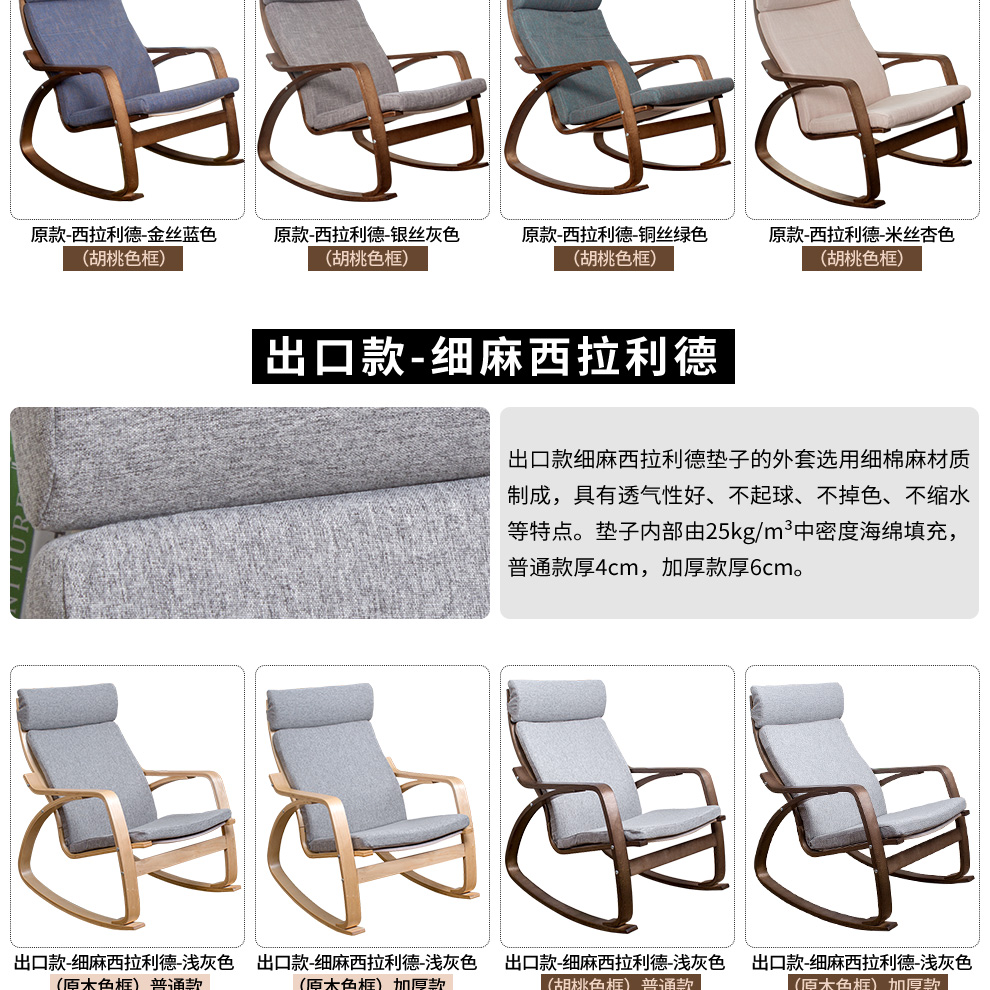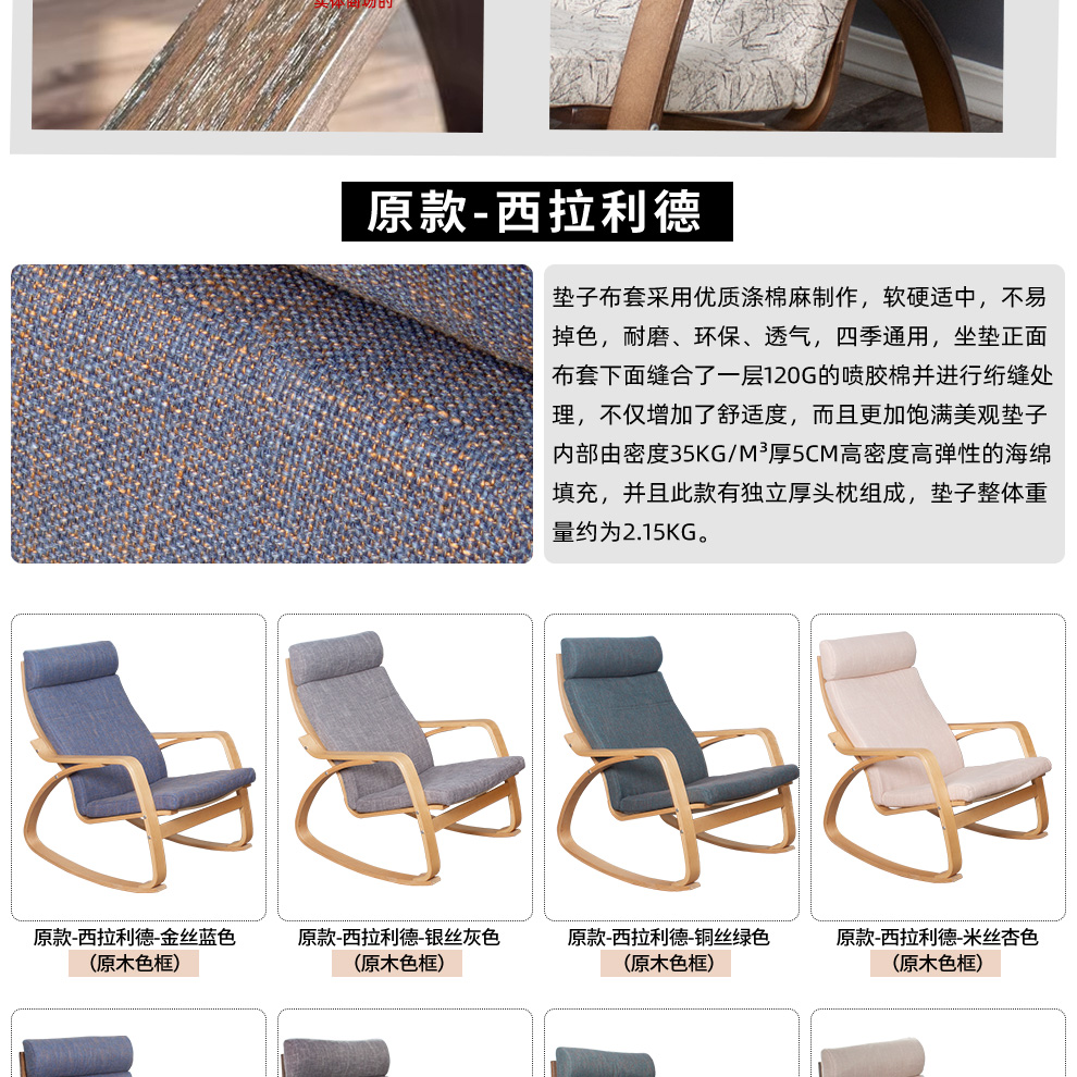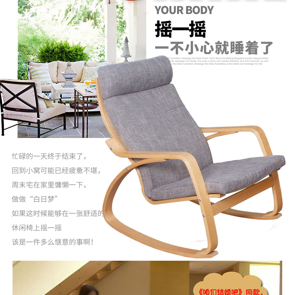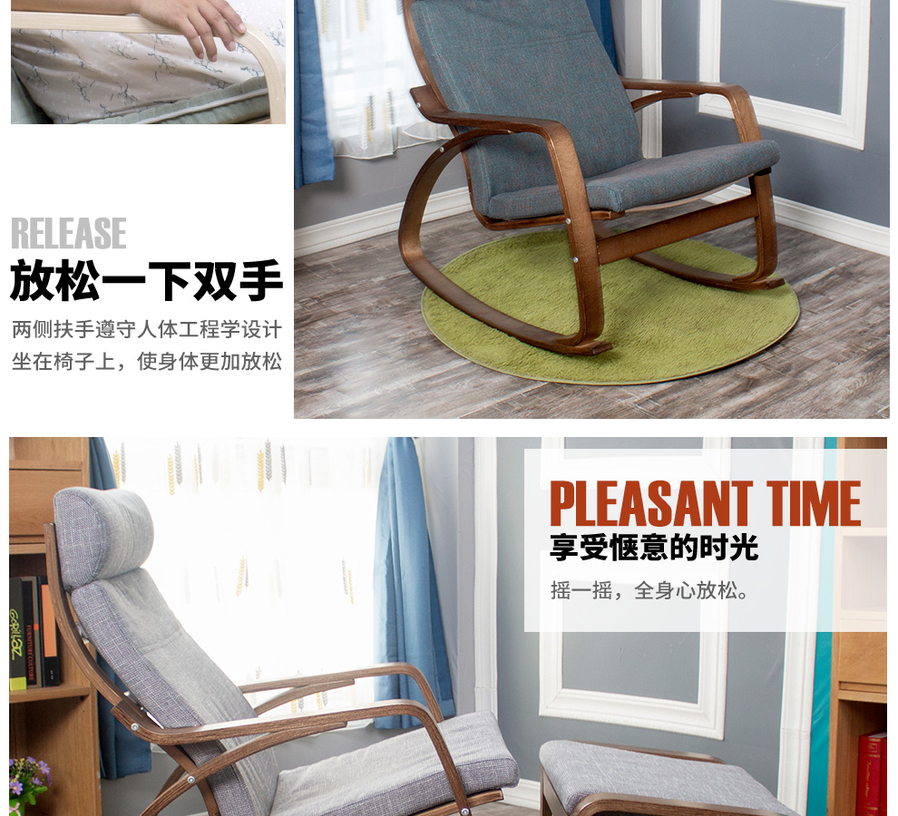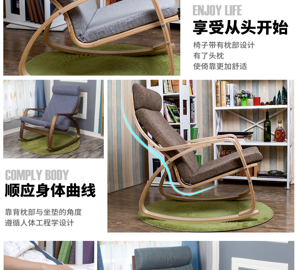 9C Bonn Recliner 흔들 의자 성인 홈 발코니 싱글 등받이 소파 솔리드 우드 낮잠 캐주얼 임페리얼 첩의 게으른 라운 저스토어 가기