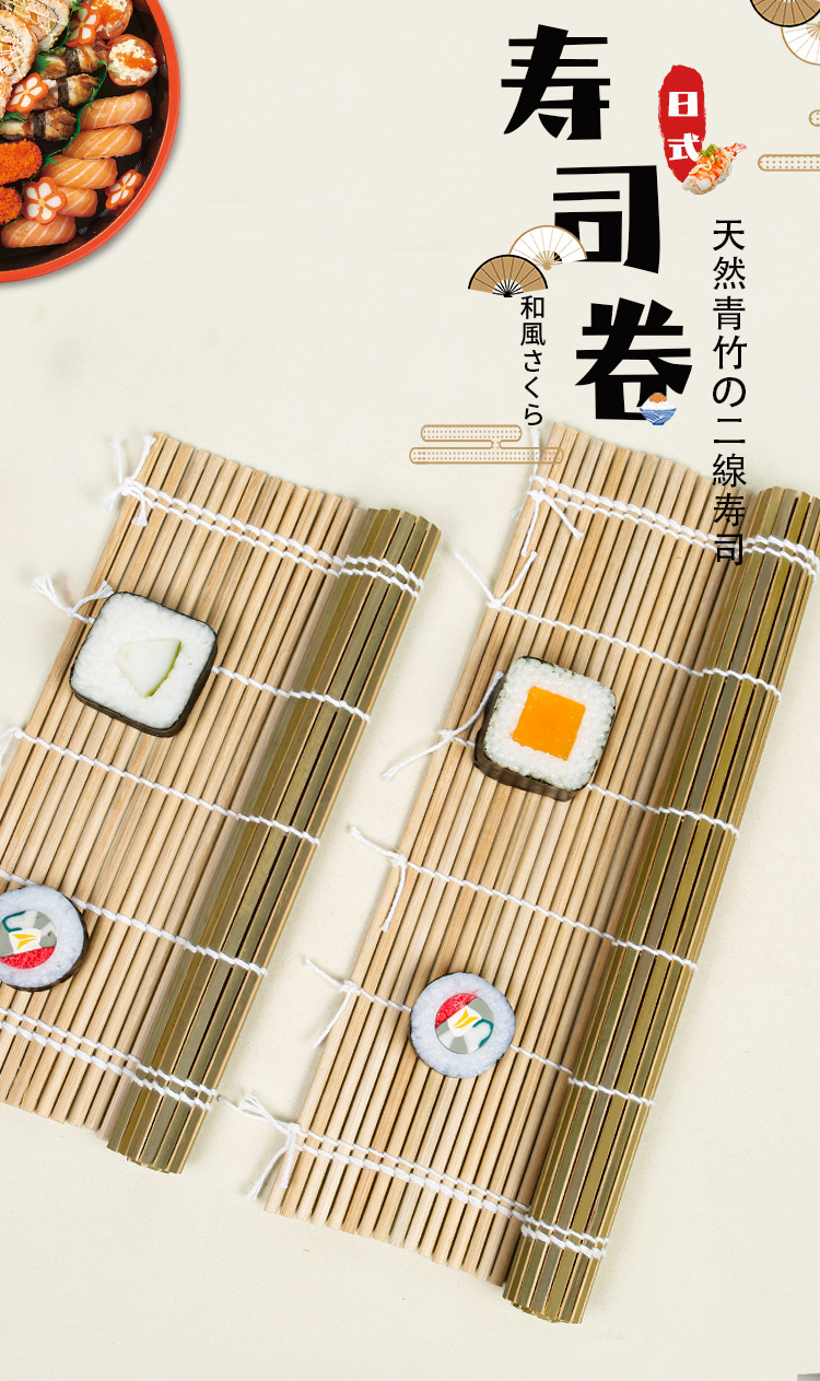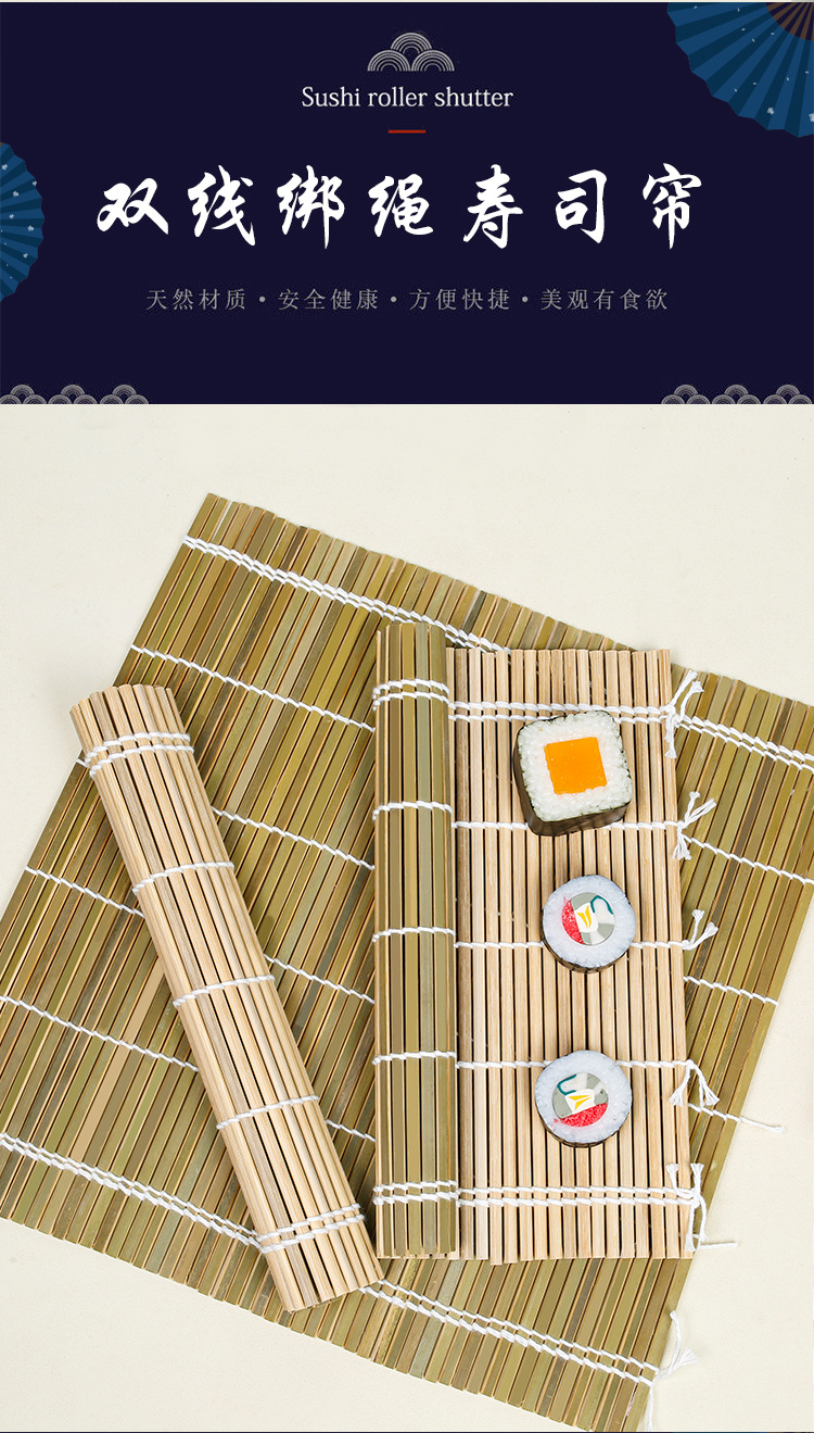 새로운 더블 라인 스시 롤러 셔터 스시 도구 세트 녹색 가죽 스시 매트 대나무 커튼 김 포장 쌀 금형 도매스토어 가기