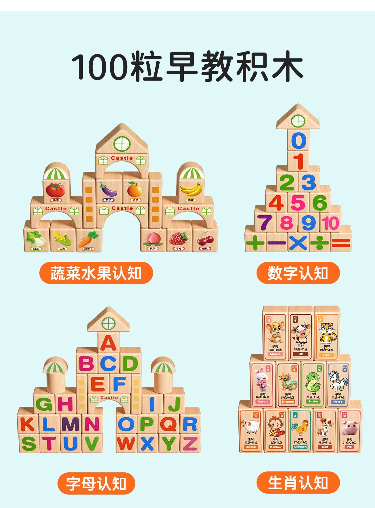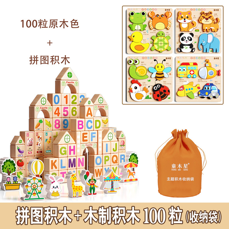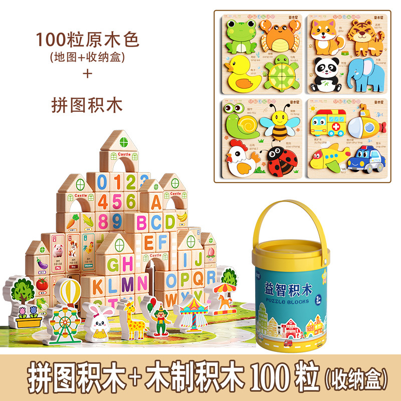 어린이 퍼즐 및 뇌 개발 지능 대형 입자 단단한 나무 빌딩 블록 소년 소녀 3 ~ 6 세 조립 장난감
