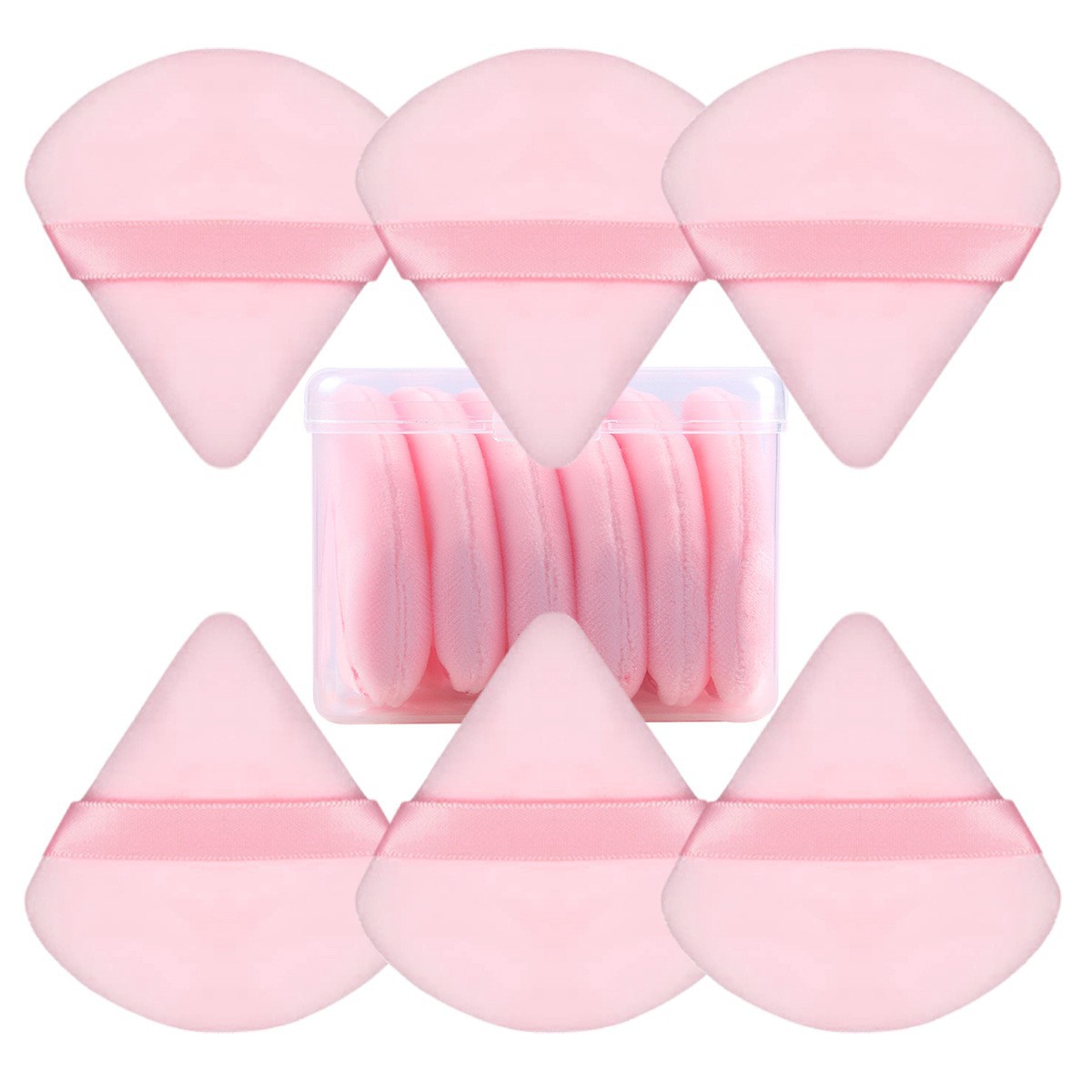 • 핑크 트라이앵글 플록 파우더 퍼프 [6개입]
