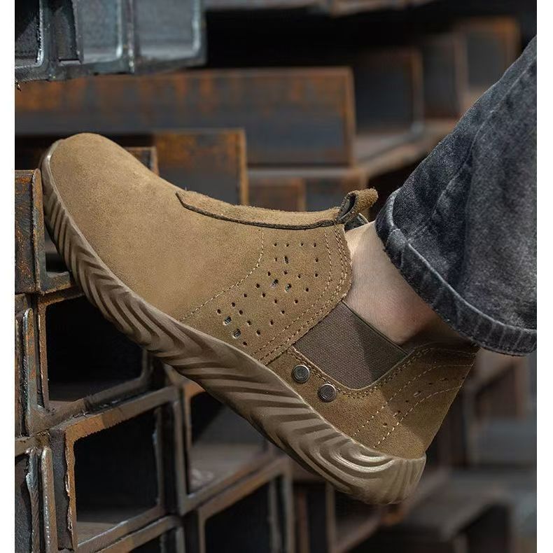 여름 로우 탑 통기성 원 페달 스웨이드 소가죽 고무 솔리드 작업 현장 노동 보호 신발