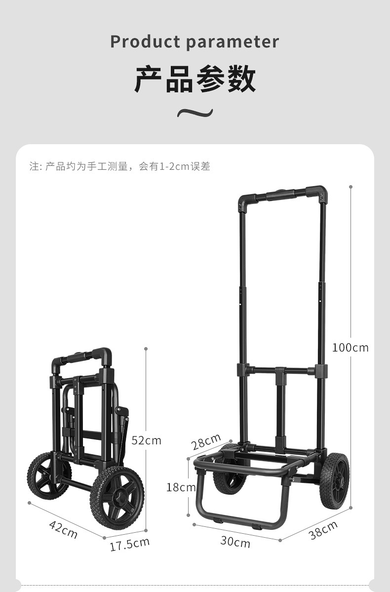 이동식 야외 캠핑 전원 공급 장치 휴대용 접이식 손수레 하중 증가 배터리 트레일러 오프로드 대형 바퀴차스토어 가기