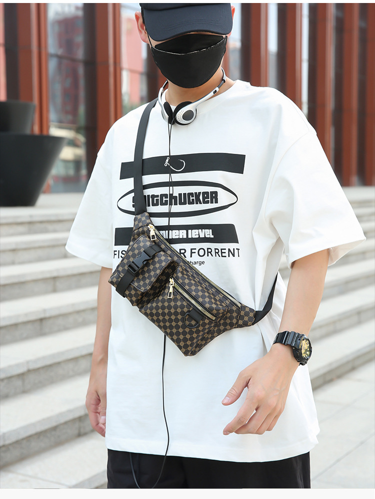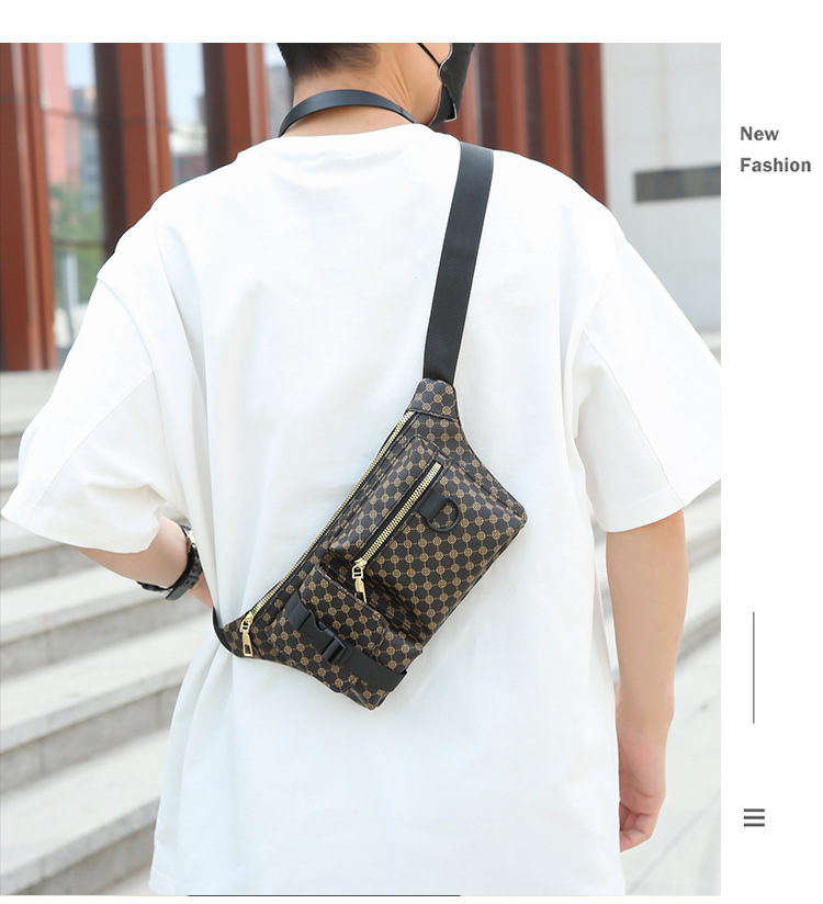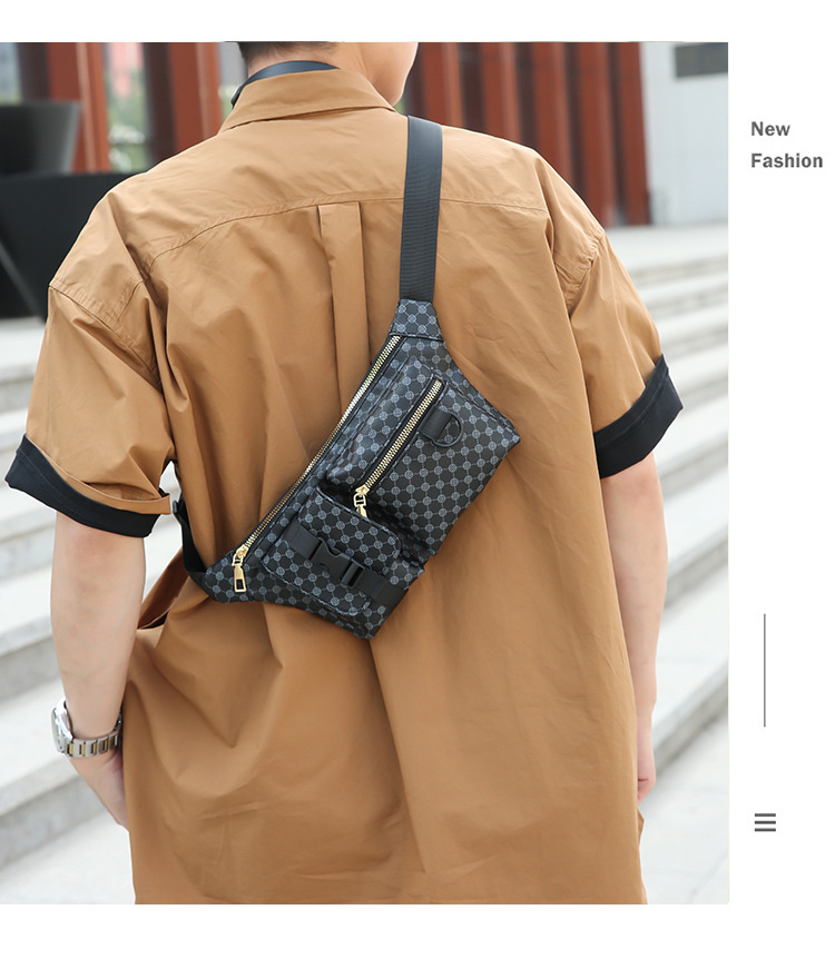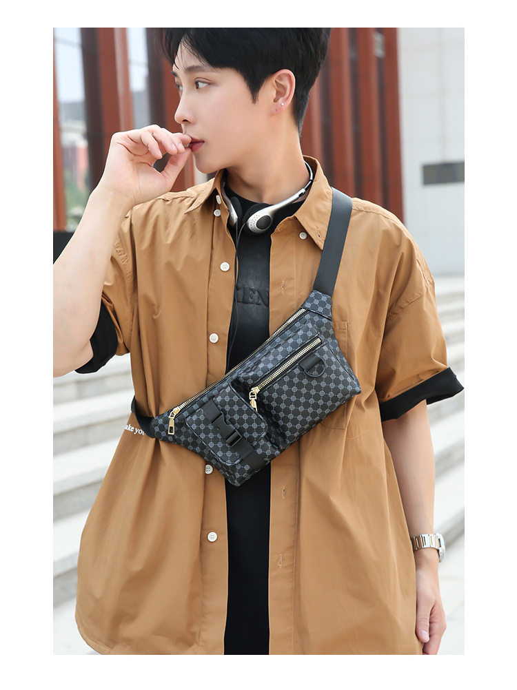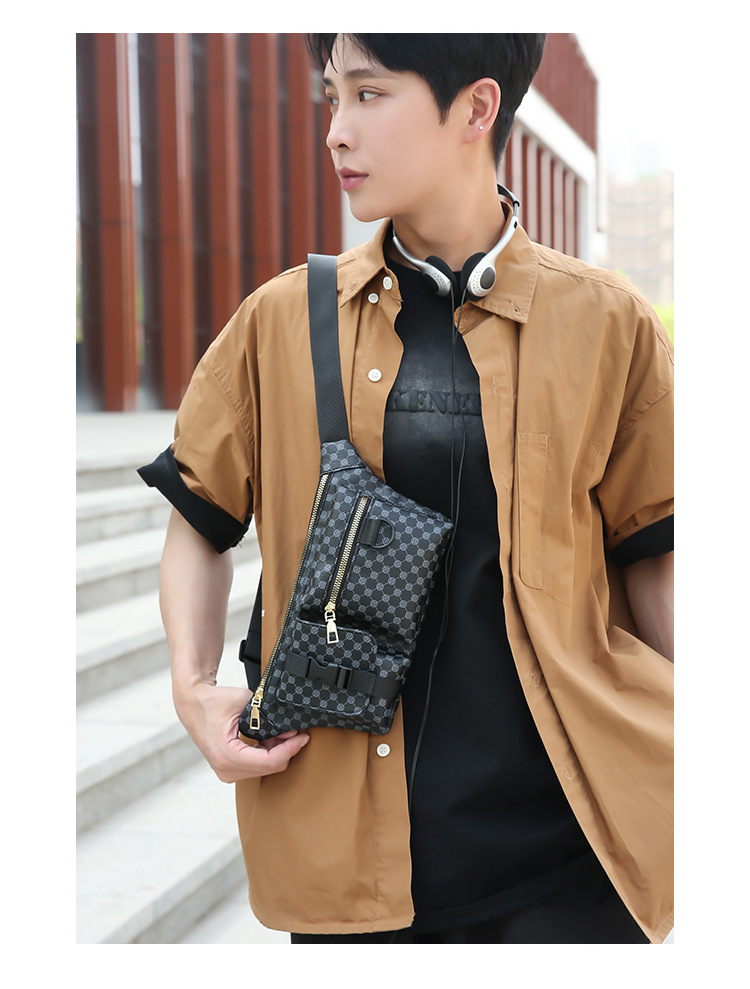 가슴 가방 남자의 간단한 캐주얼 가죽 남자의 어깨 가방 유행 격자 무늬 중국 스타일 아름다운 남성 가방 유행 남성 허리 가방 크로스 바디 가방