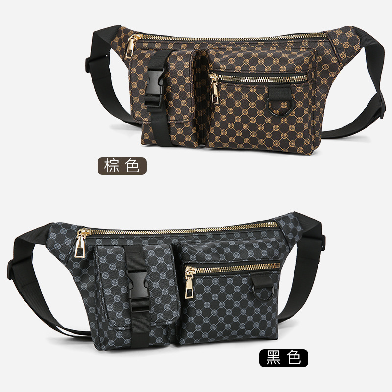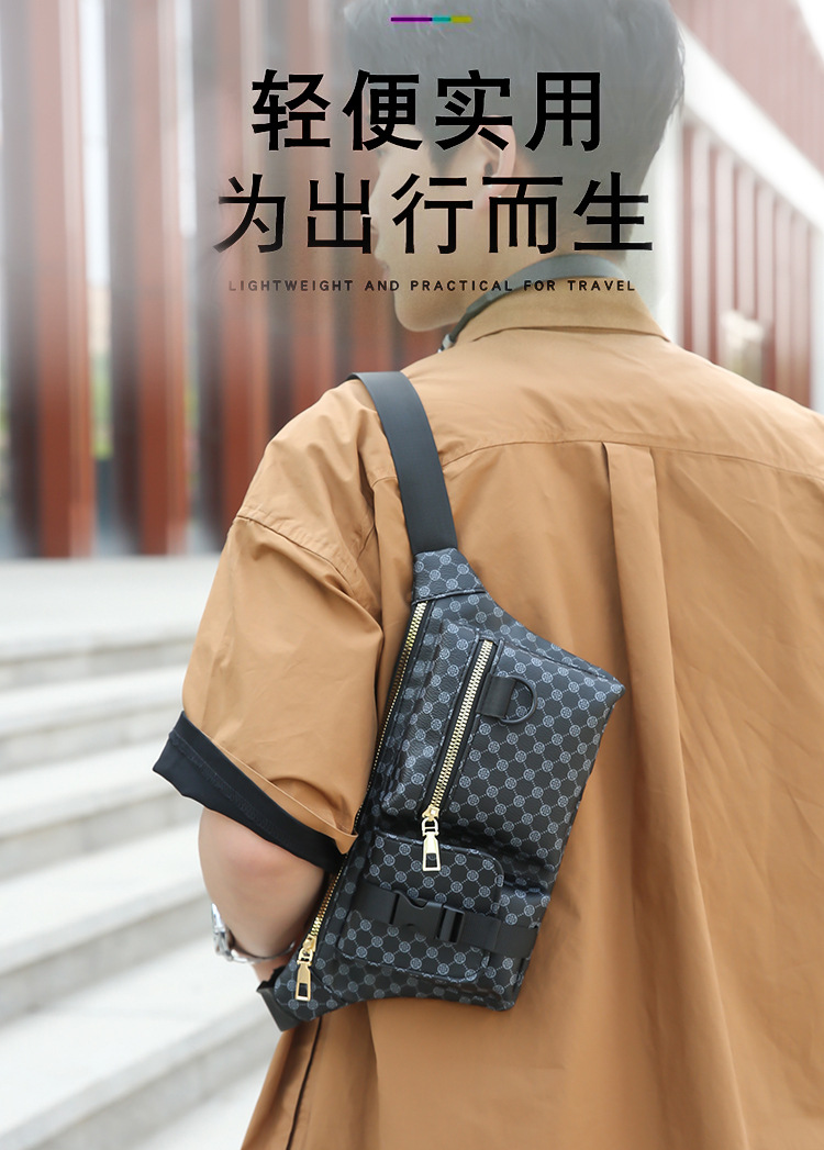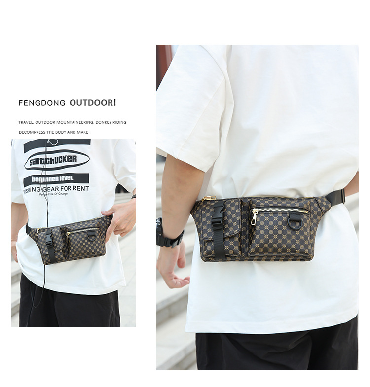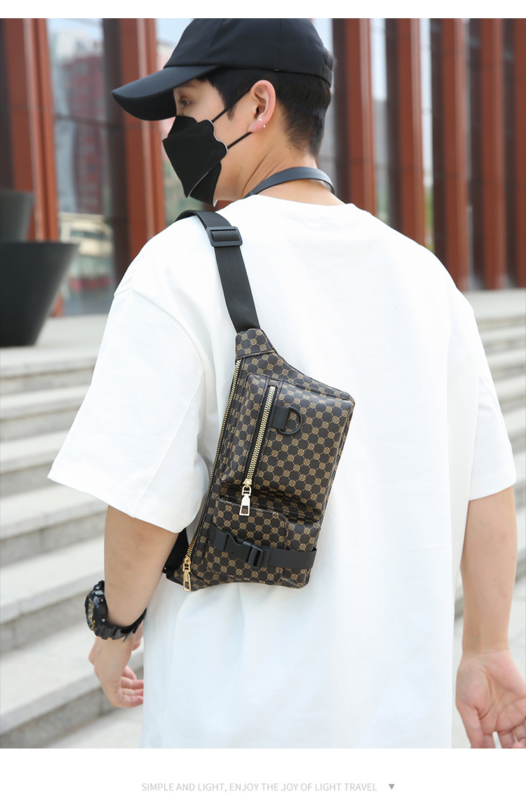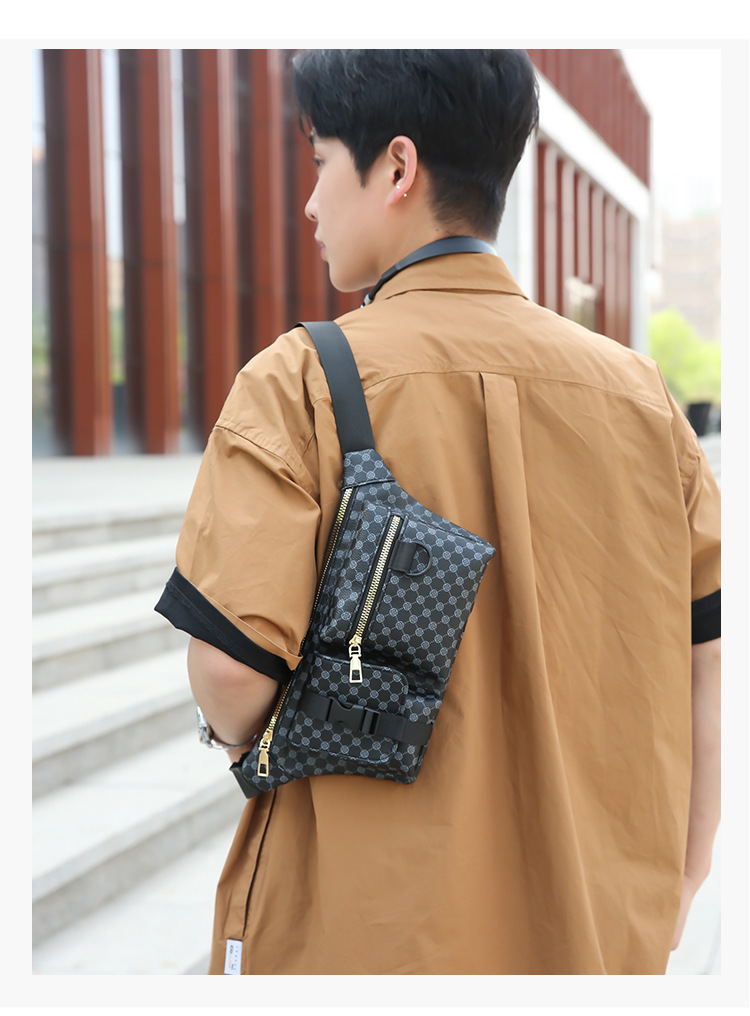 가슴 가방 남자의 간단한 캐주얼 가죽 남자의 어깨 가방 유행 격자 무늬 중국 스타일 아름다운 남성 가방 유행 남성 허리 가방 크로스 바디 가방