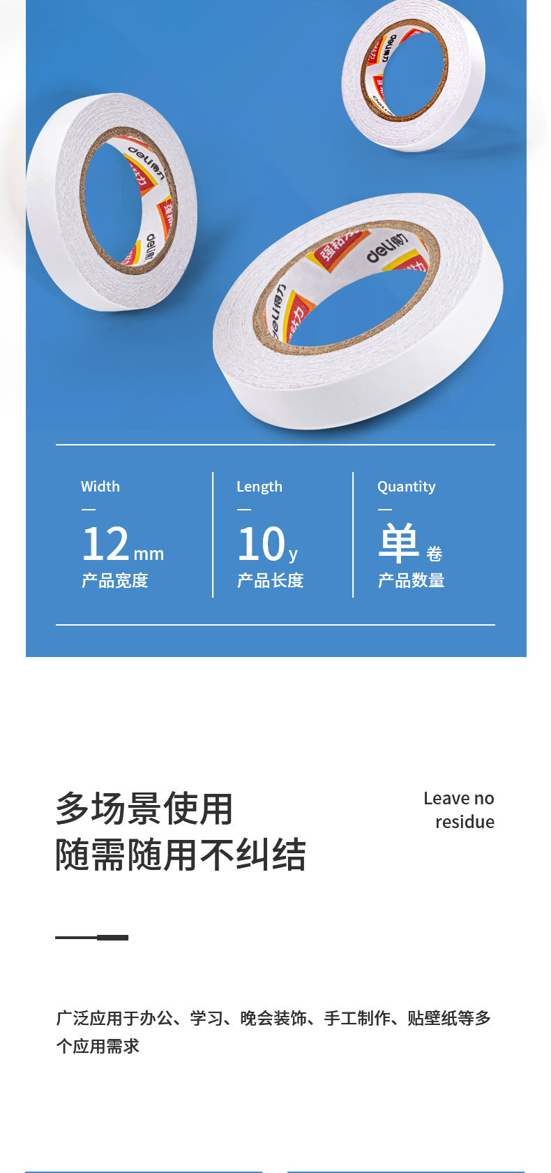 • 델리 30435 작은 롤 코어 면 종이 양면 테이프 12mm * 10y * 80um (흰색)(1 롤/가방)